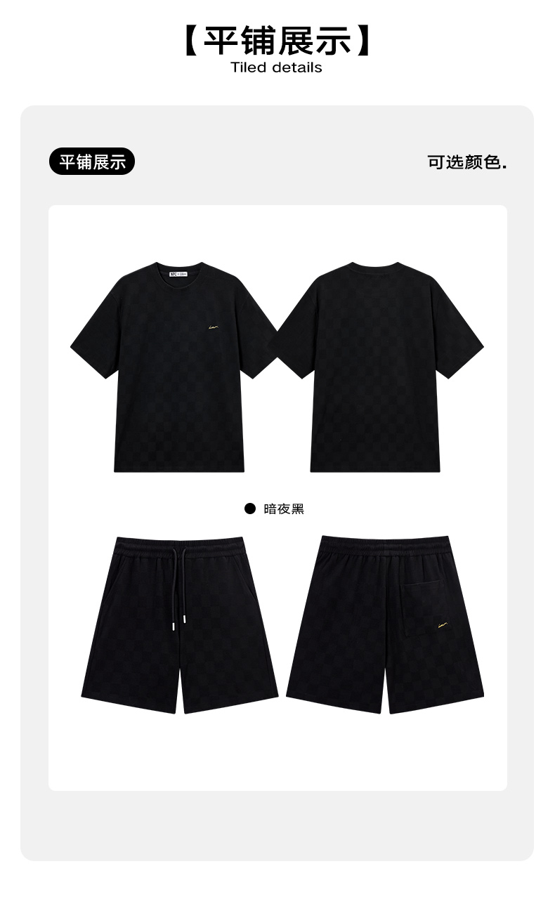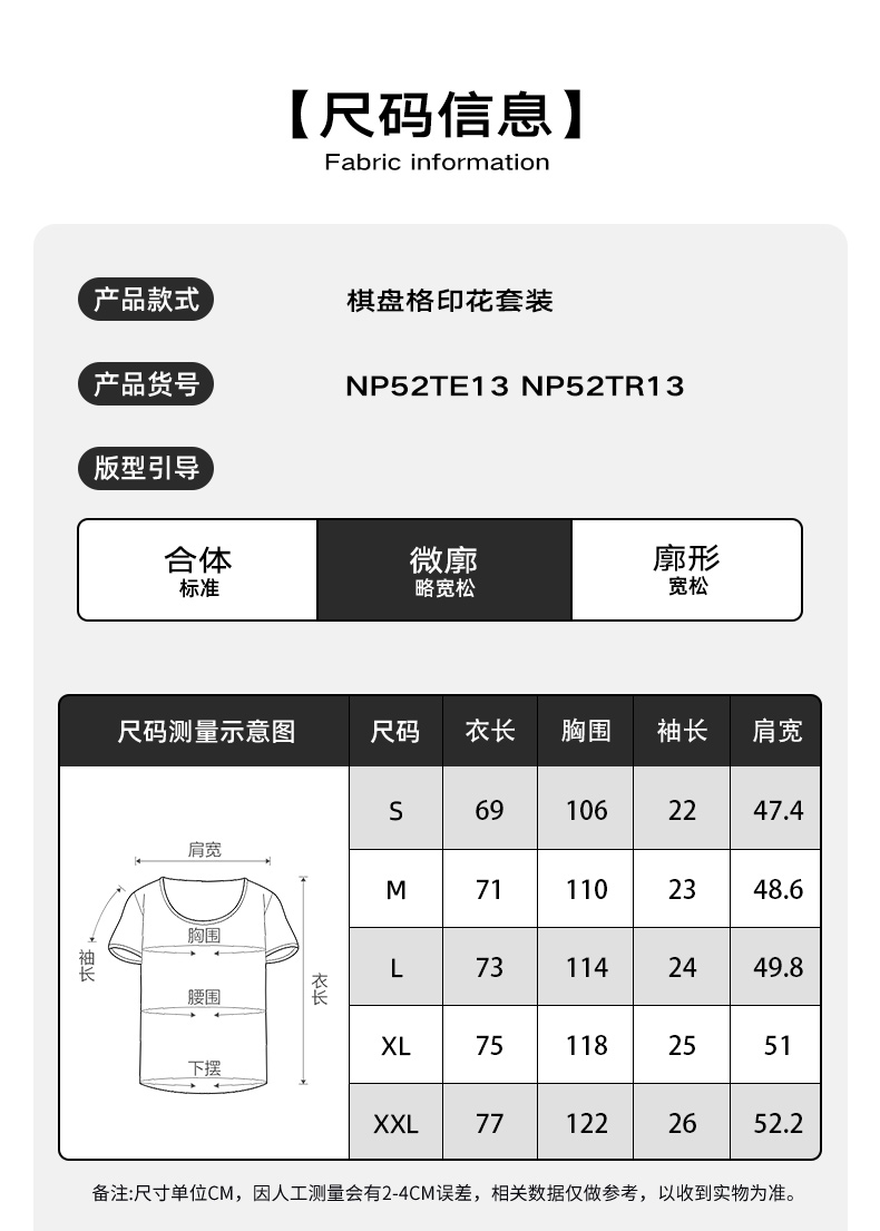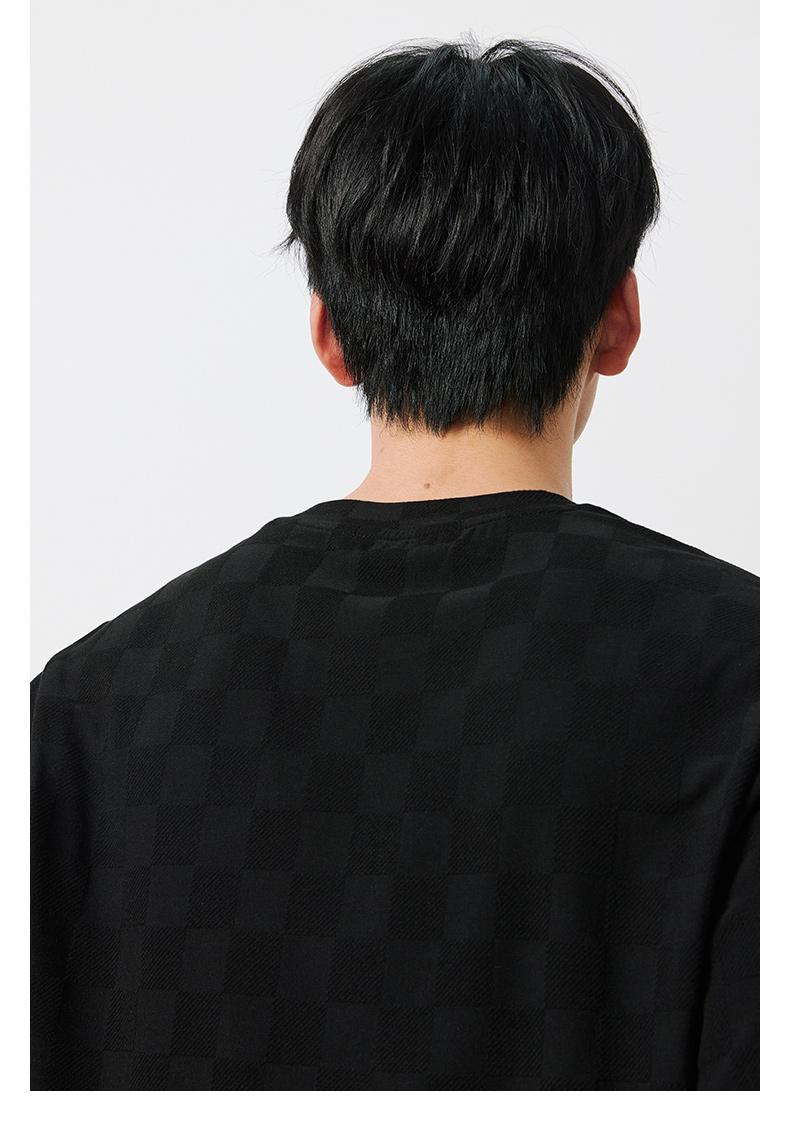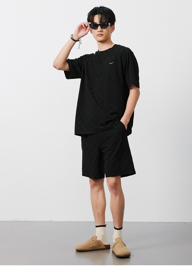 NPC潮牌金线刺绣棋盘格提花短袖百搭T恤短裤男肌理感透气NP52TE13