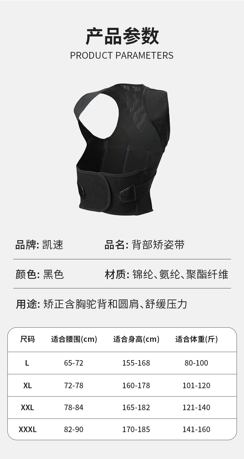 凯速矫姿带纠正姿势防驼背矫正器第三代黑色L、XL、XXL、XXXL