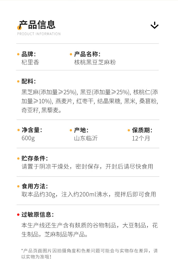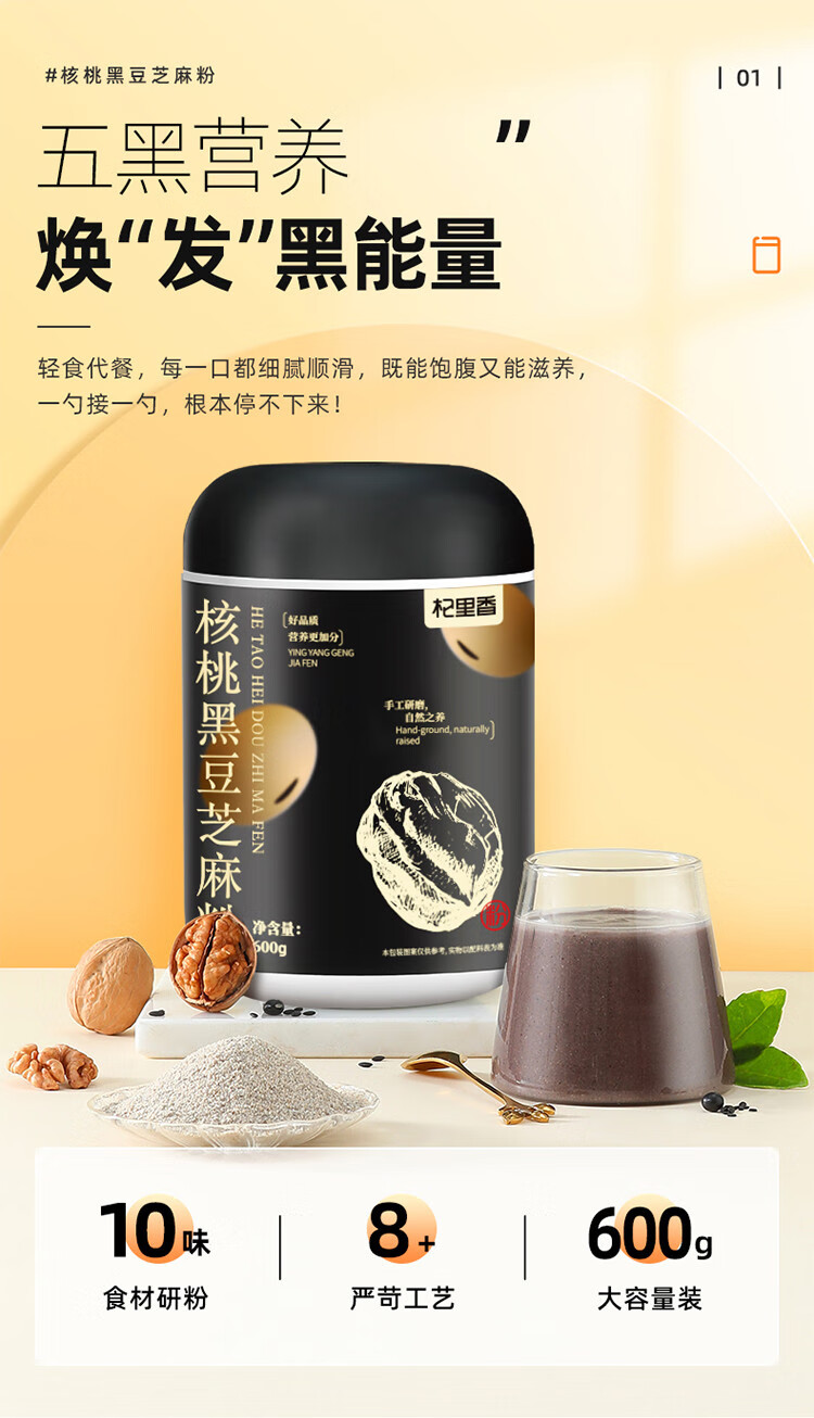 杞里香 核桃芝麻黑豆粉600g/罐