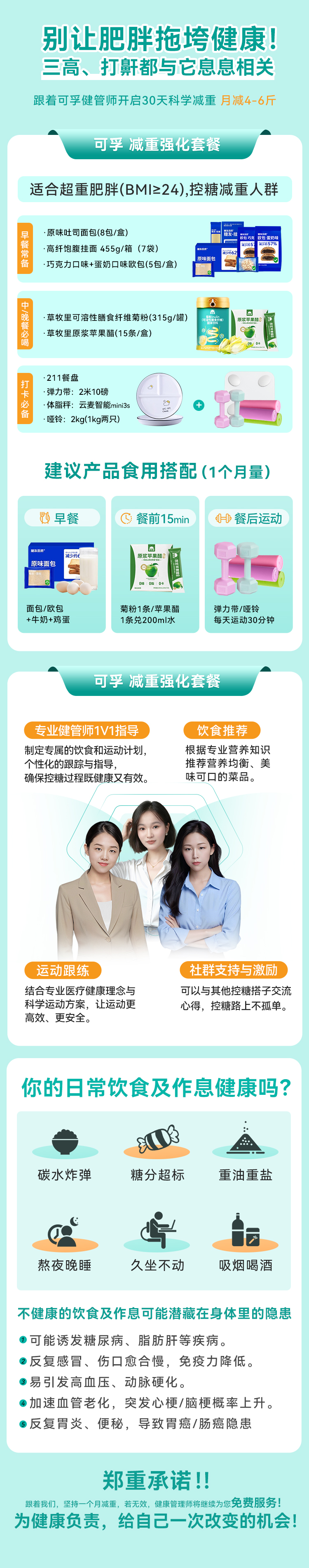 可孚控糖减重强化套餐一(原味吐司面包2箱+欧包2袋+高纤饱腹挂面445g/箱+菊粉1罐+健康管理师指导服务)