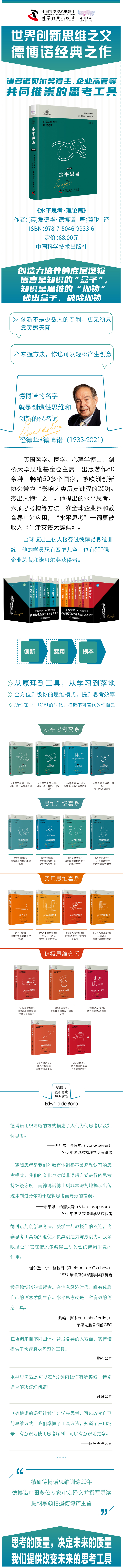 1.创新思维之父德博诺经典作品全面、系统上市,德博诺中国多位专家审定译文并撰写导读,提纲挈领把握德博诺主旨