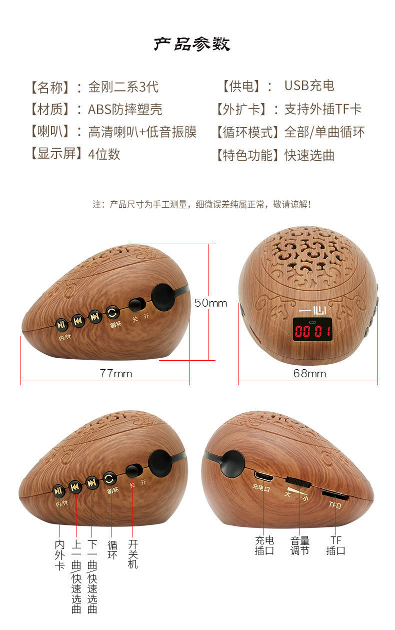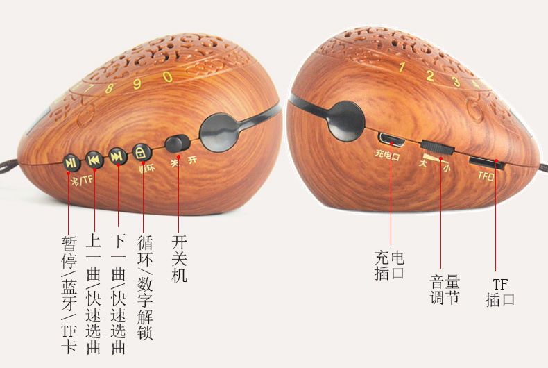古朴木鱼插卡音箱便携式小型复古小音响随身听车载音乐播放器送礼长辈