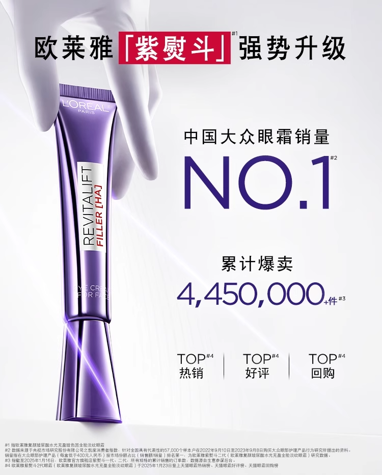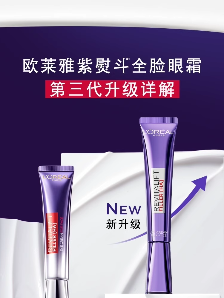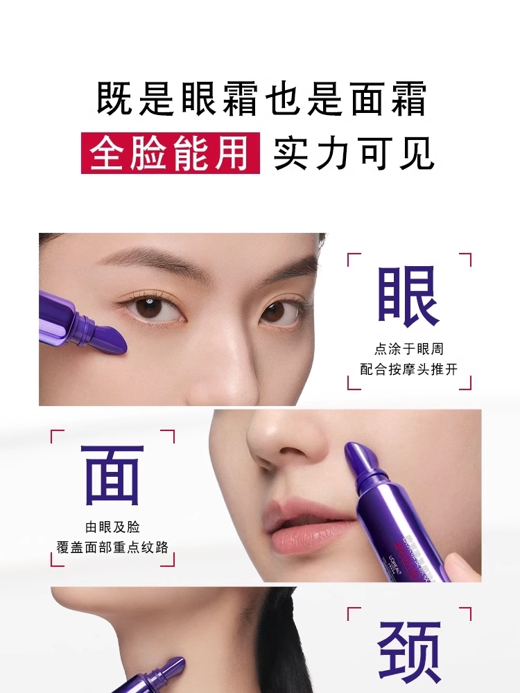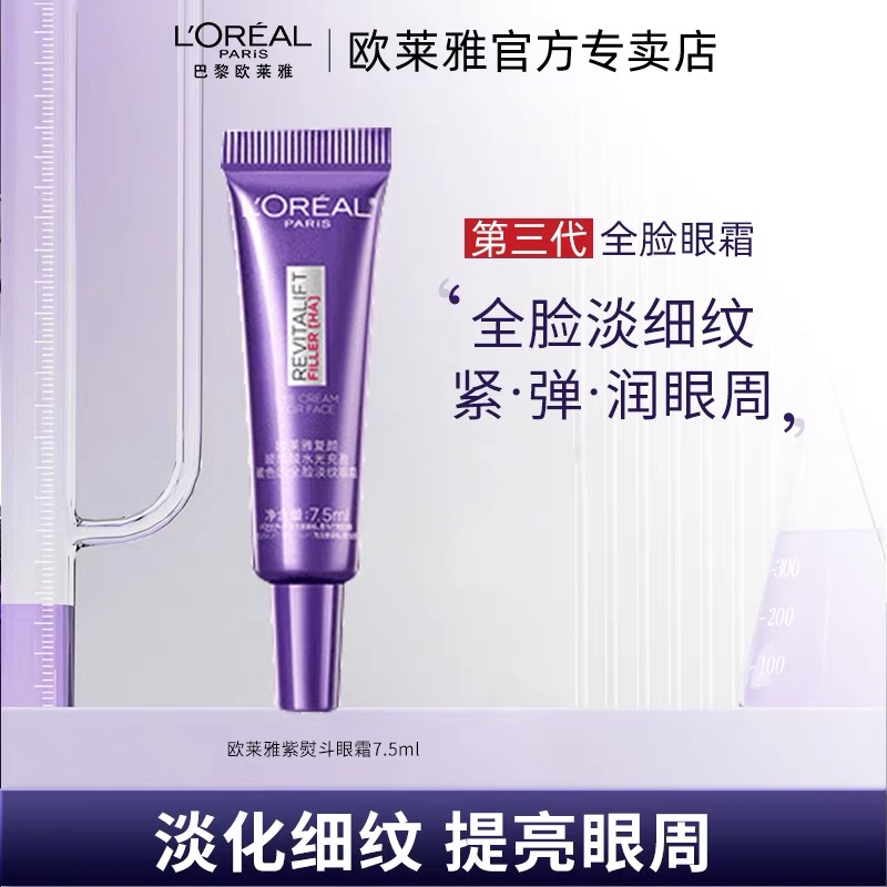 欧莱雅第三代全新升级紫熨斗眼霜7.5ml 保湿抗皱提拉紧致淡黑眼圈