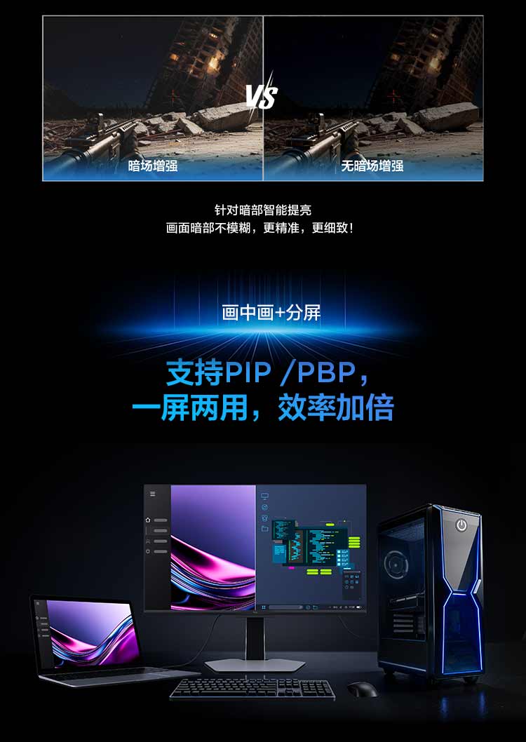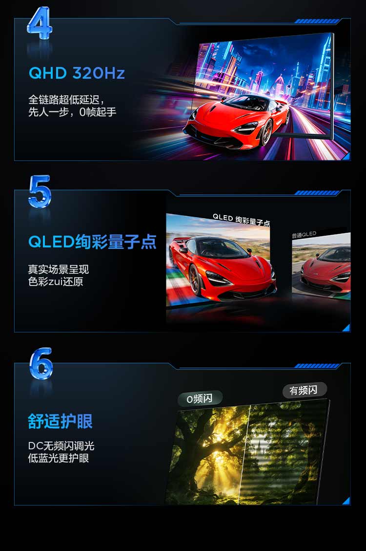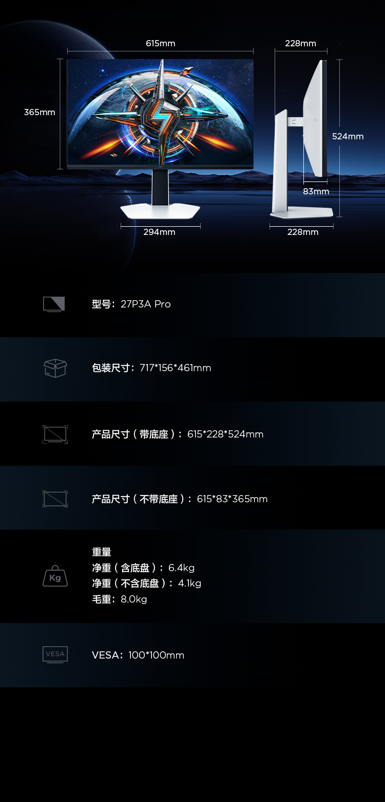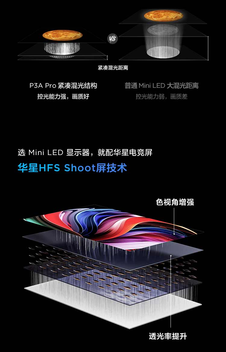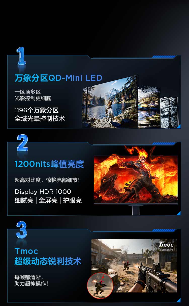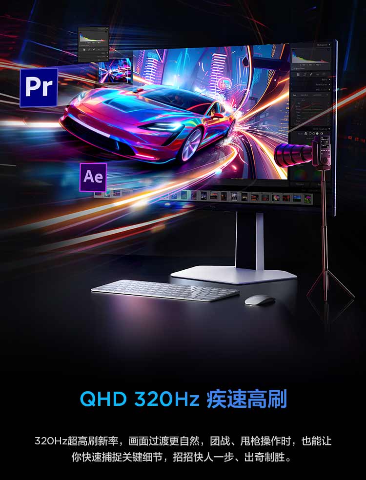 TCL 27英寸 P3A Pro QHD 320Hz QD-Mini LED 1196万象分区 HDR 1200nits 电竞显示器27P3A Pro