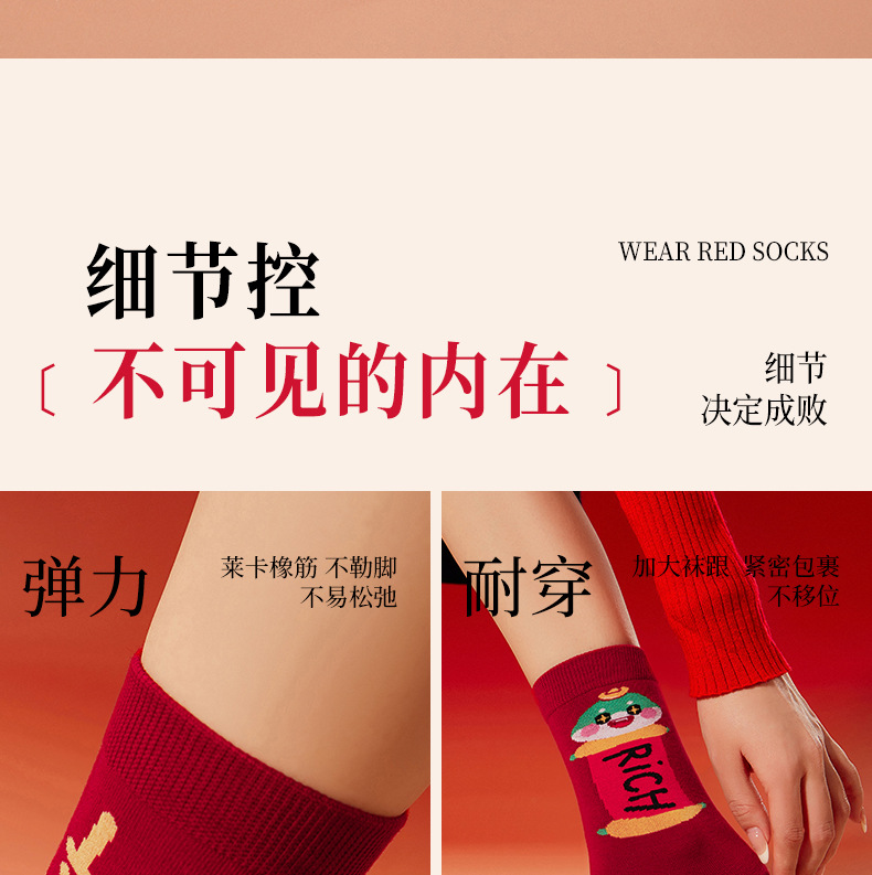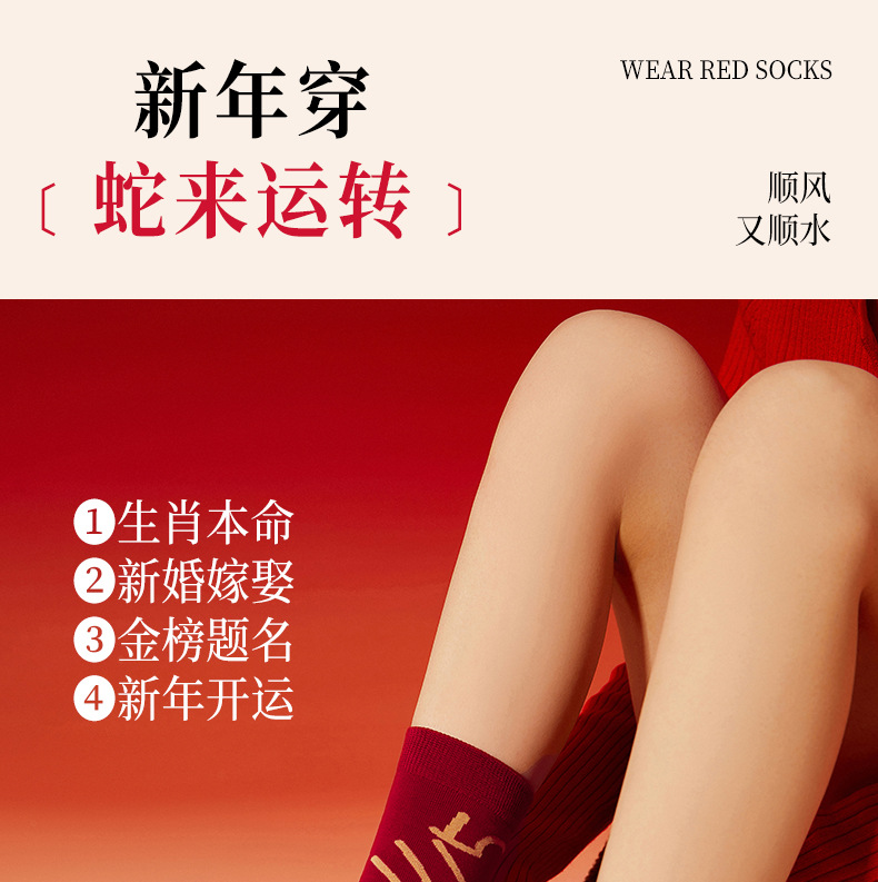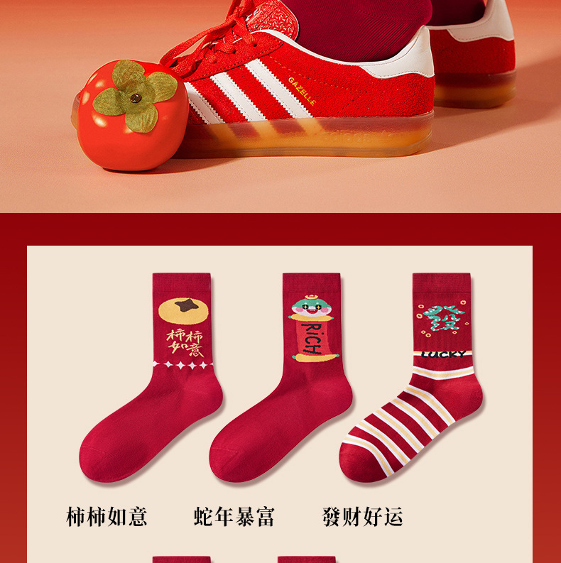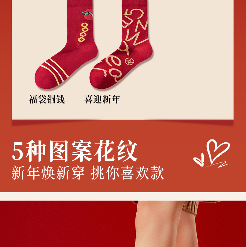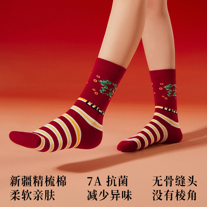 【蛇年限定盒袜】金蛇纳福五双装中筒袜,好运一整年~新疆精梳棉舒适透气高密编织,5级抗起球,7A级防臭抑菌,莱卡高弹橡筋本命年/转运红/送礼