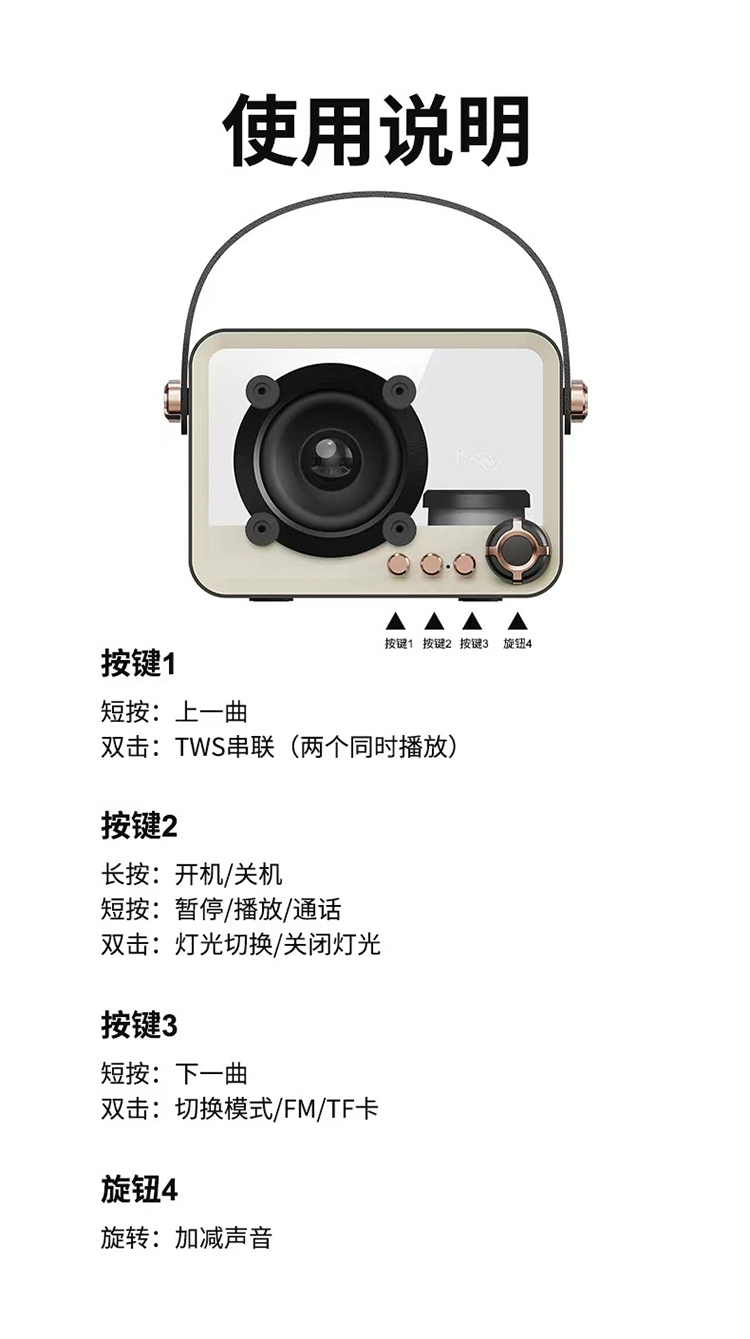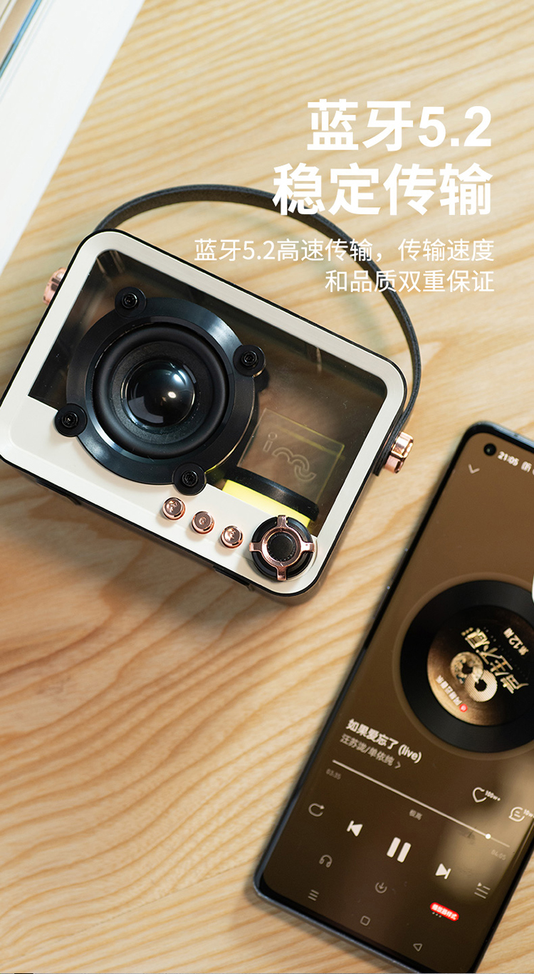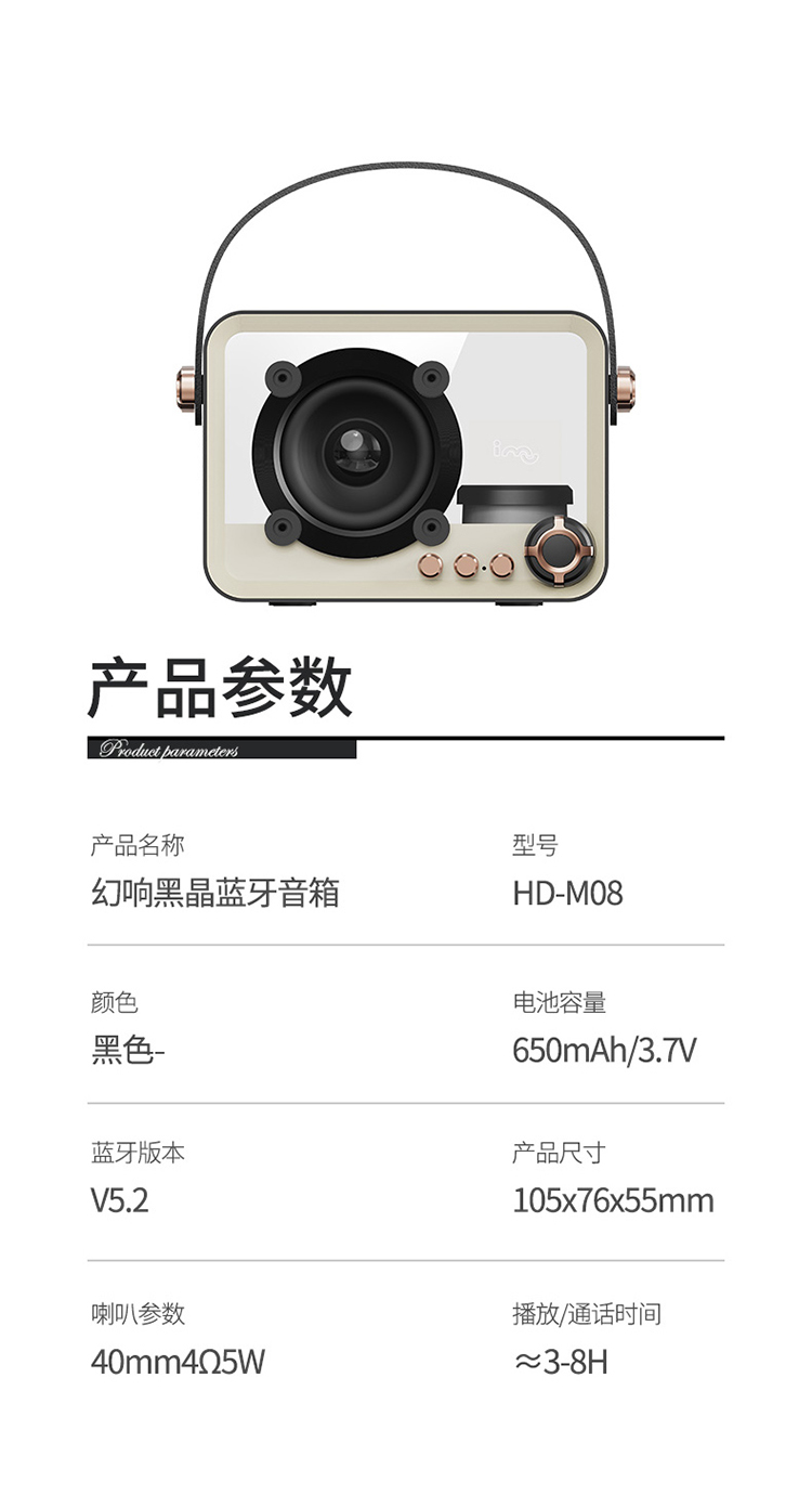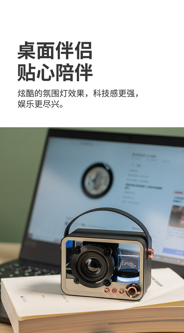 imu幻响黑晶复古蓝牙音箱收音机家用生日礼物女生插卡便携小音响