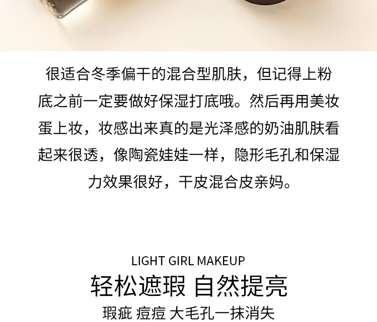 呈现匀净细腻肤色,让粉底液里的护肤成分真正发挥作用。