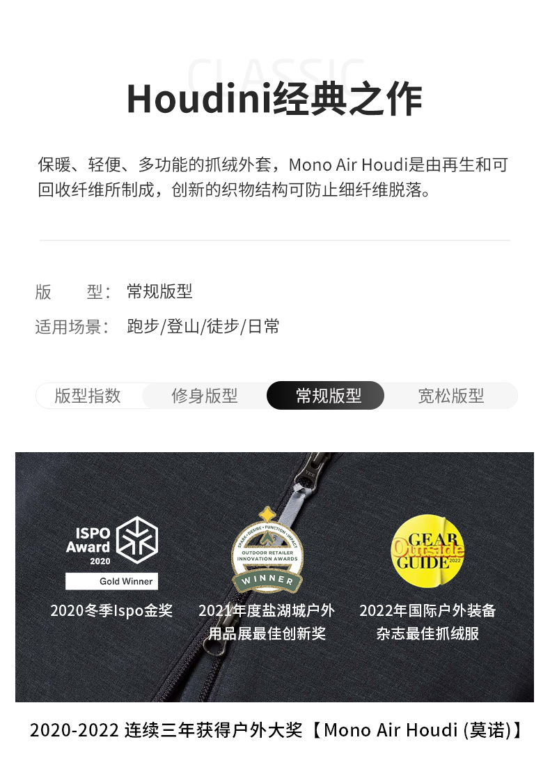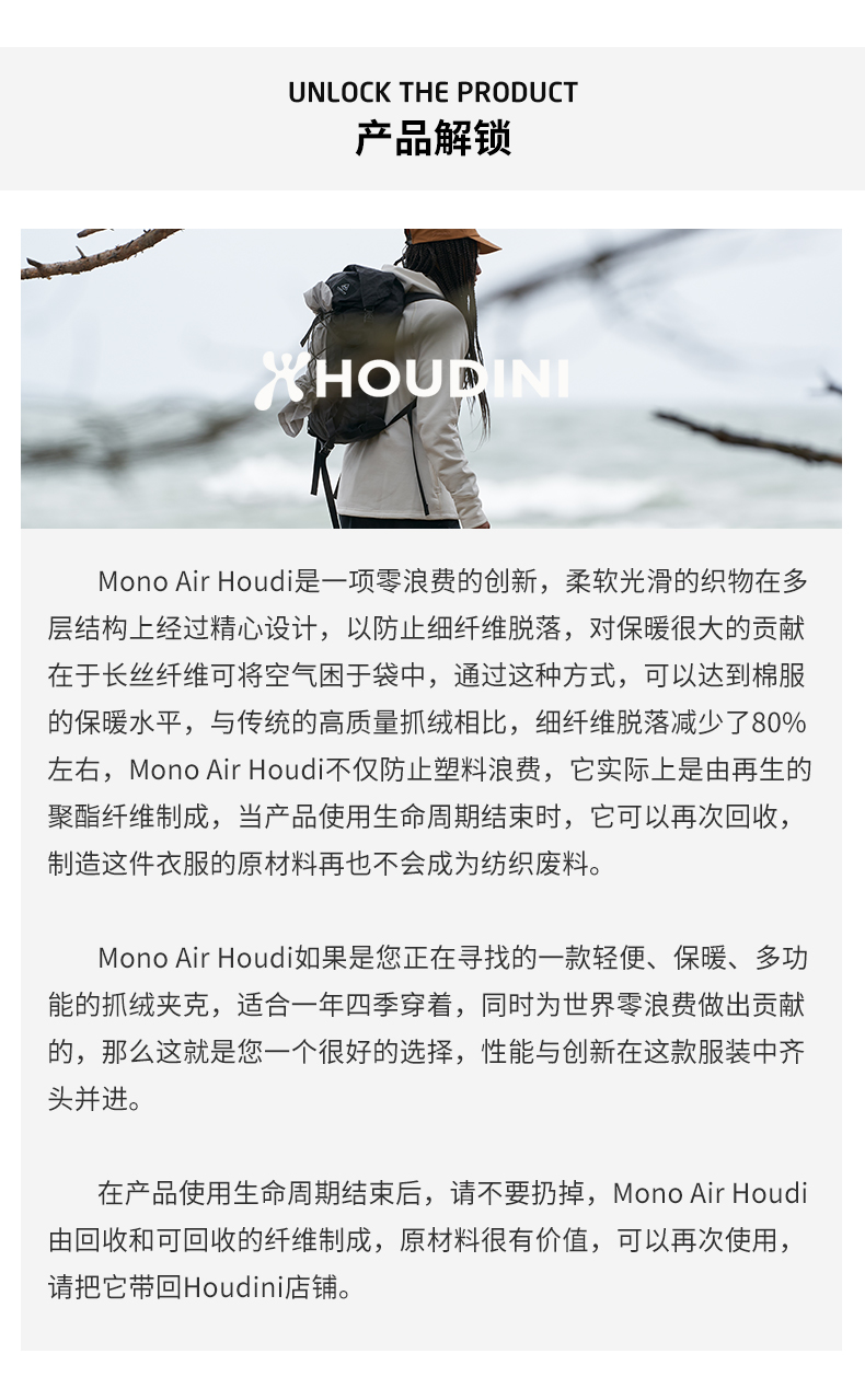 HOUDINI胡丁尼 Mono Air Houdi莫诺户外春季女连帽保暖抓绒衣外套 120714