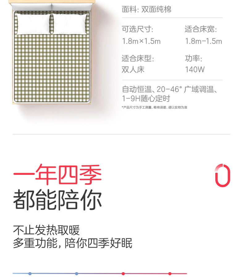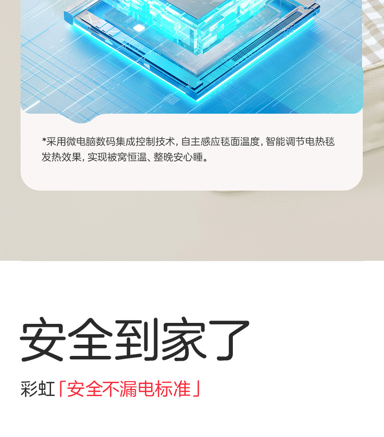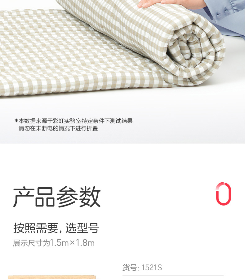 彩虹全线路(长1.8*宽1.5米)数码自动控温双面纯棉电热毯1521S. 【花色随机】