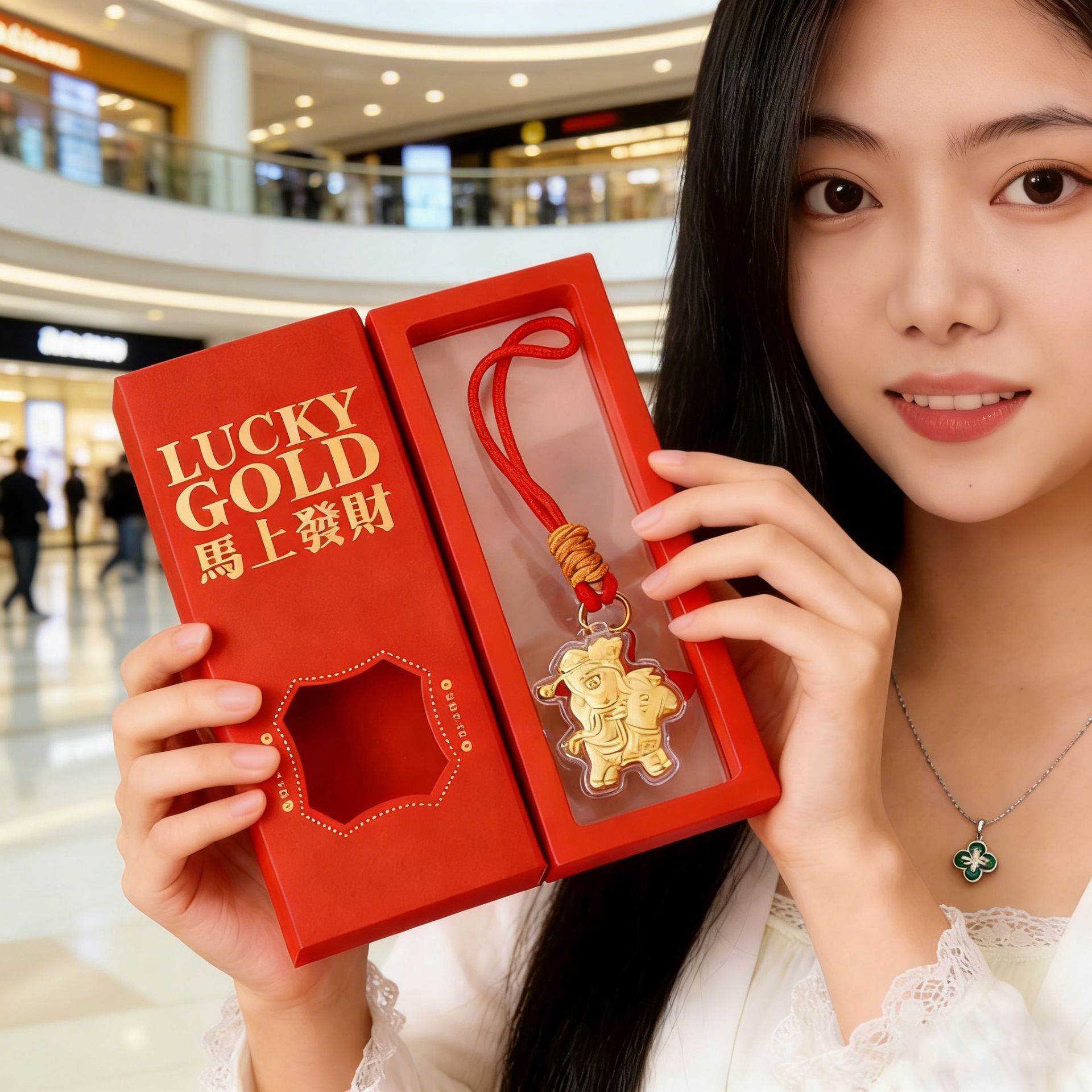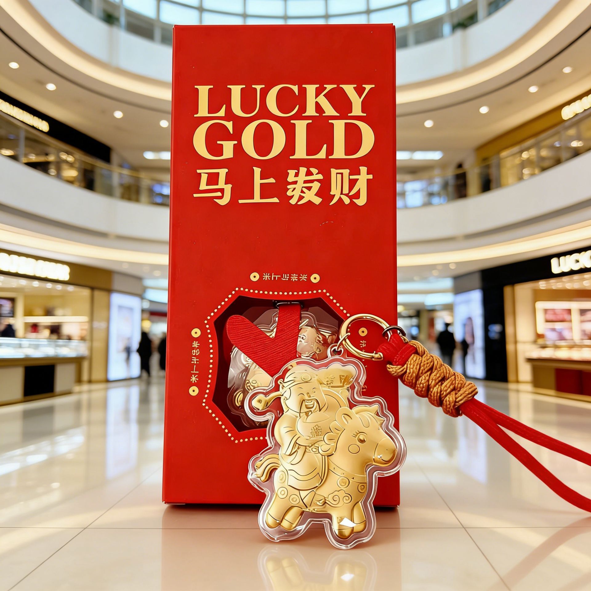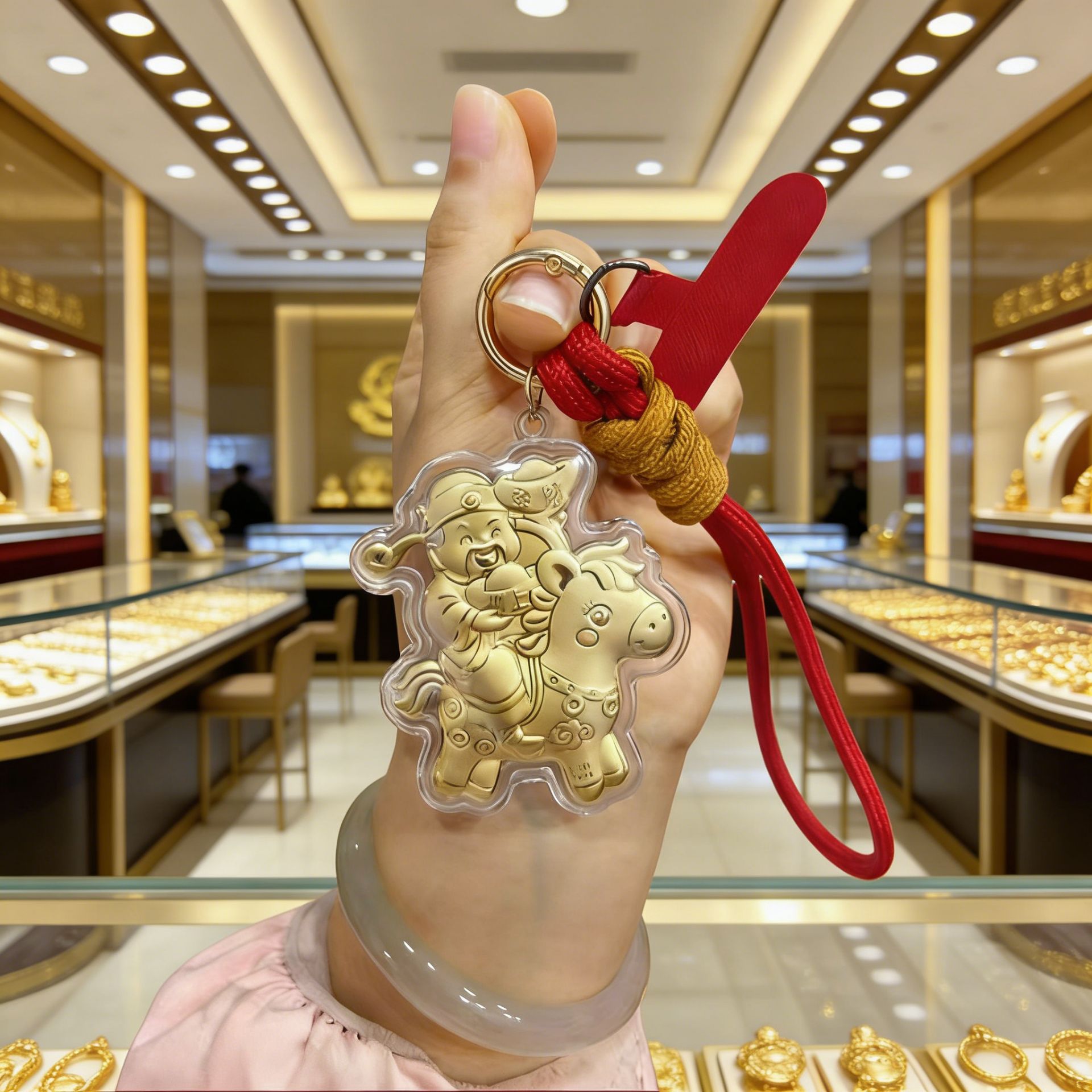 六鑫珠宝 足金999马有钱财神钥匙扣包包挂饰 礼盒装