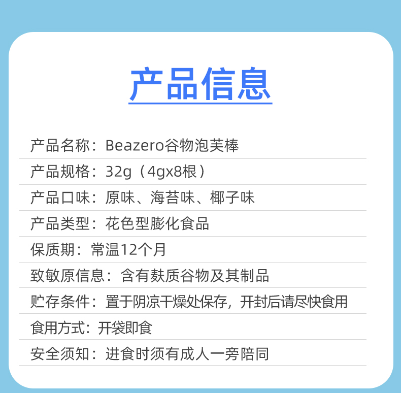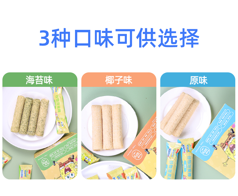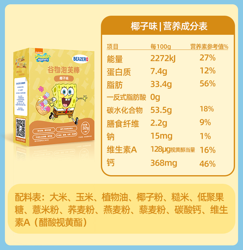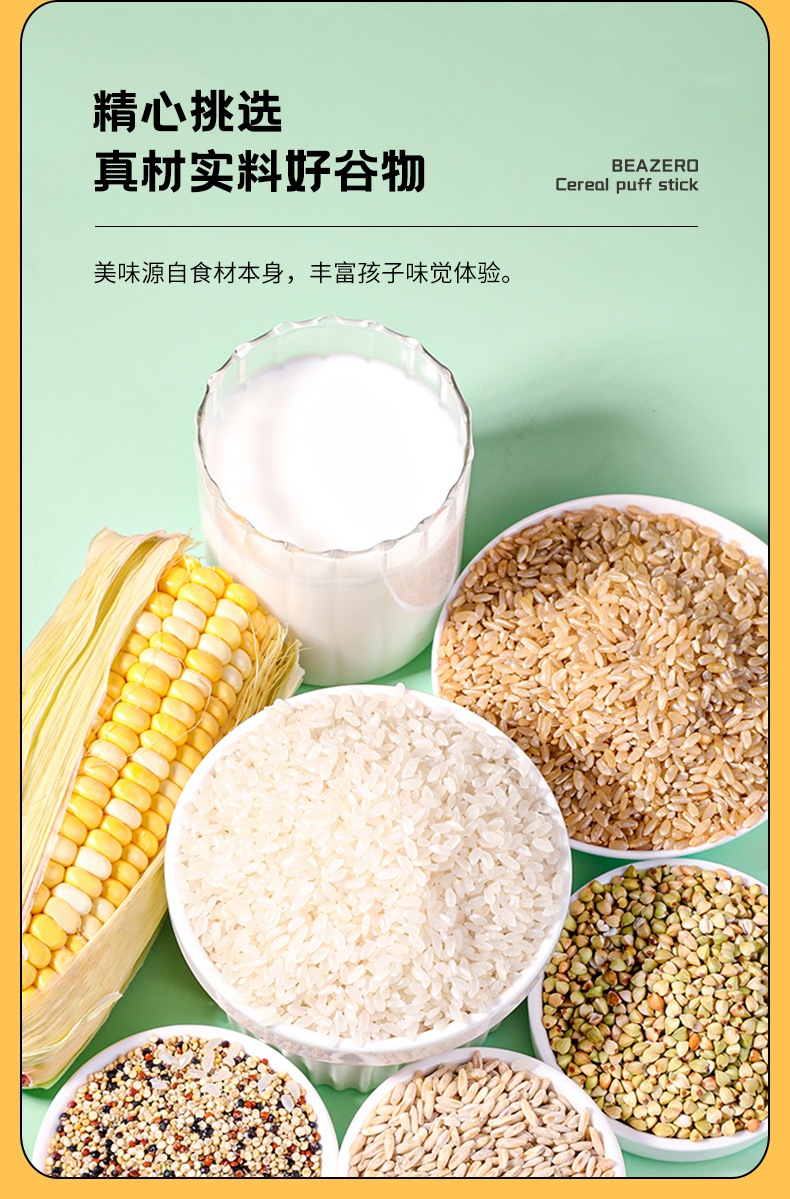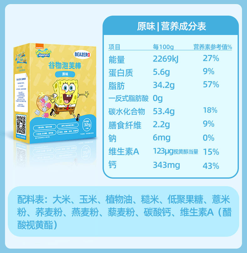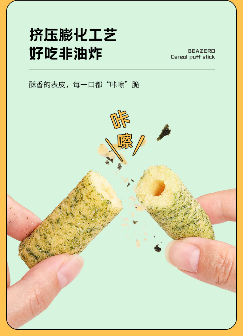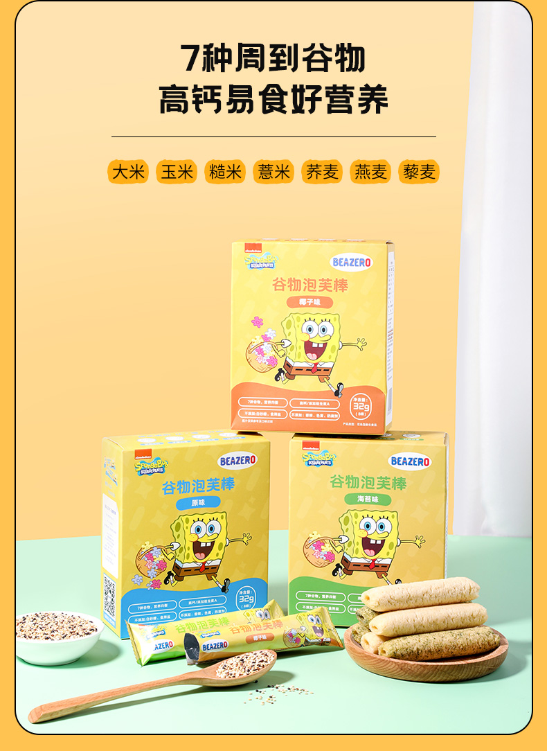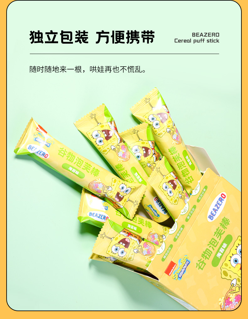 beazero海绵宝宝手指谷物泡芙棒儿童零食磨牙饼干高钙泡芙条不添加白砂糖