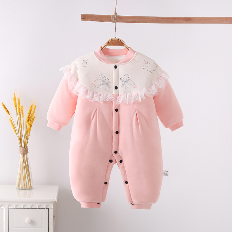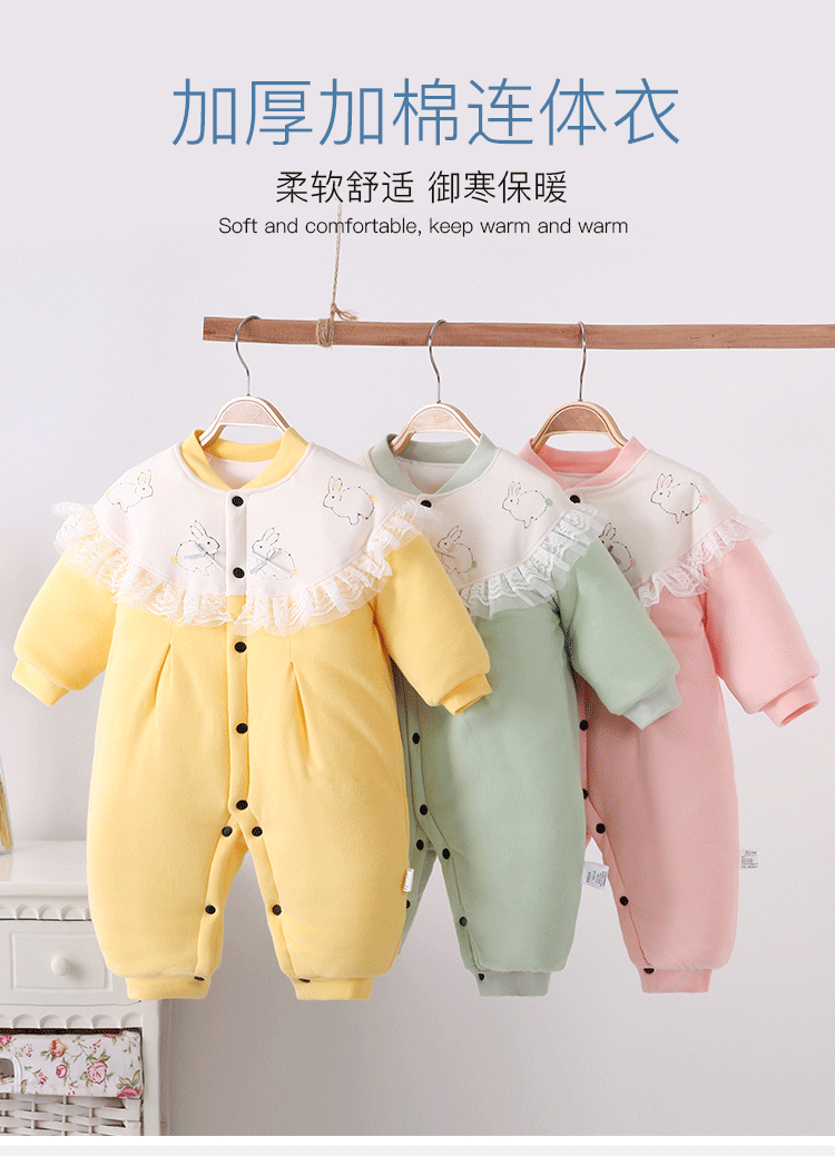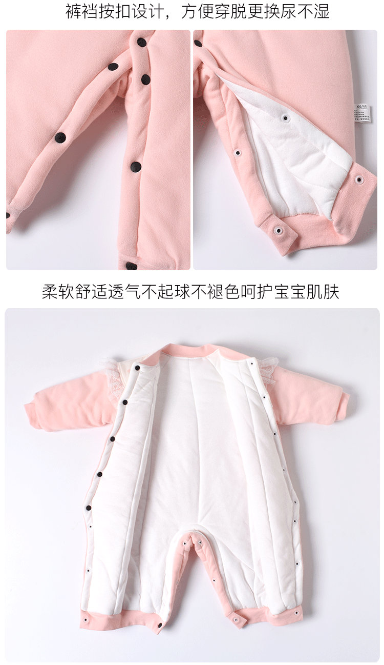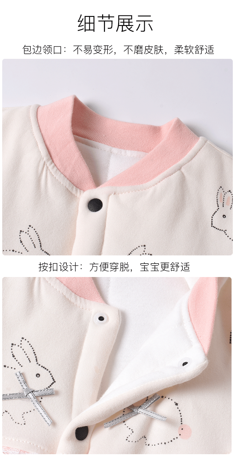 【防风保暖 表里纯棉 柔软舒适】婴儿棉服夹棉连体衣可爱卡通新生儿衣服加厚宝宝爬服单排扣和尚服