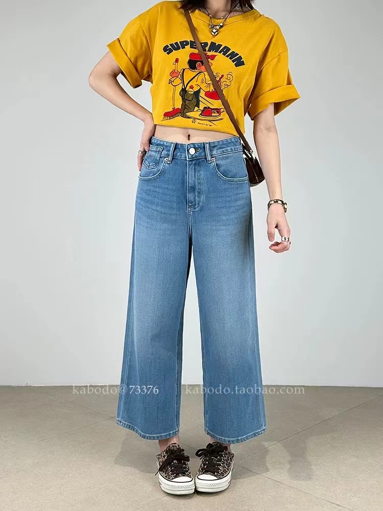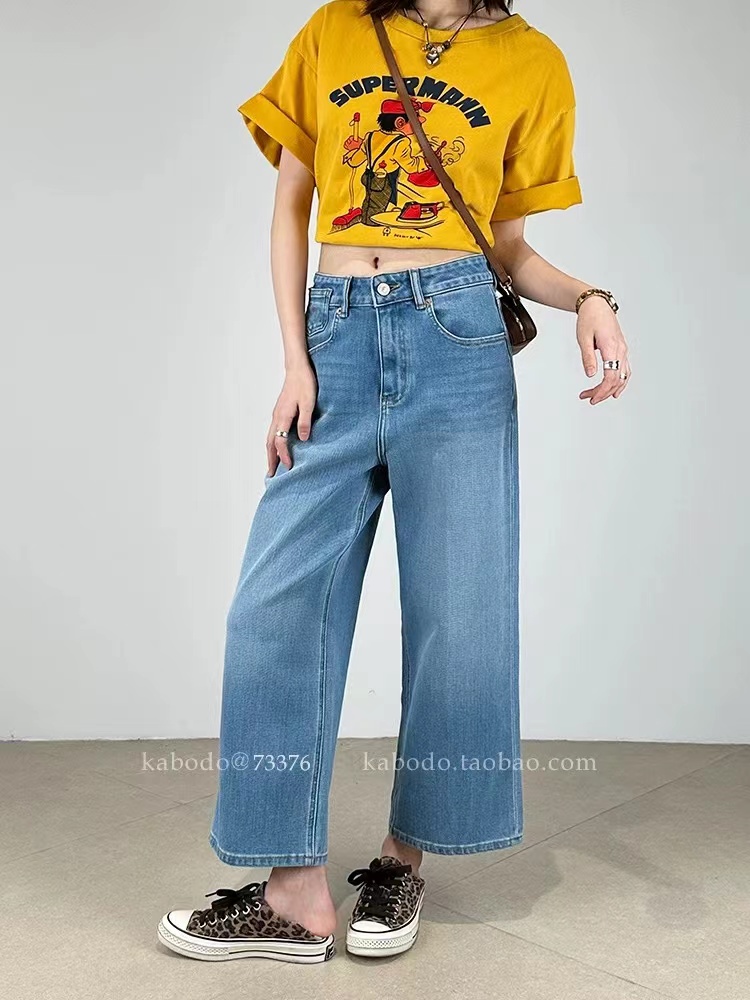 轻复古九分牛仔阔腿直筒牛仔裤26春夏新款 一个色