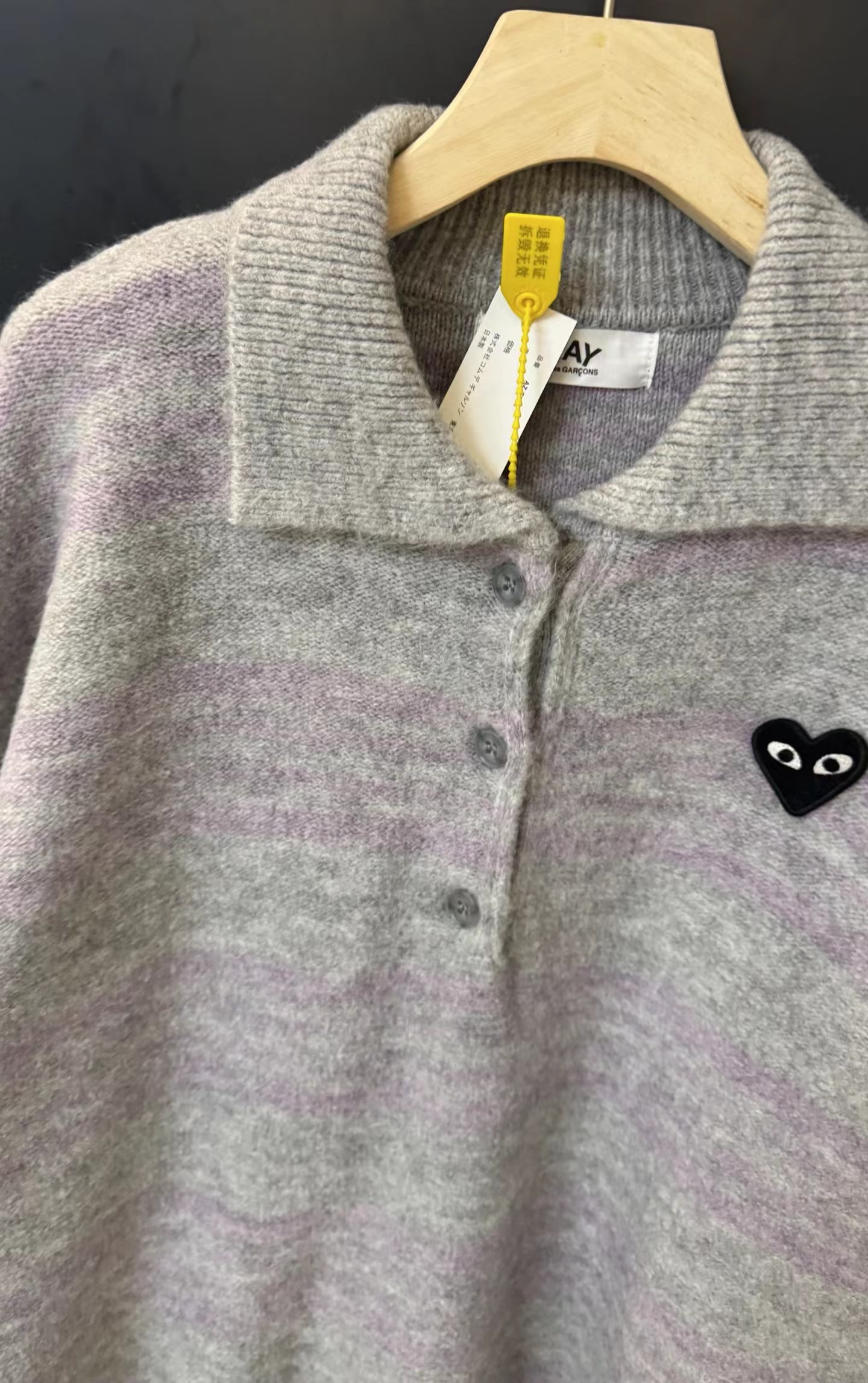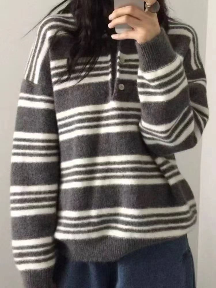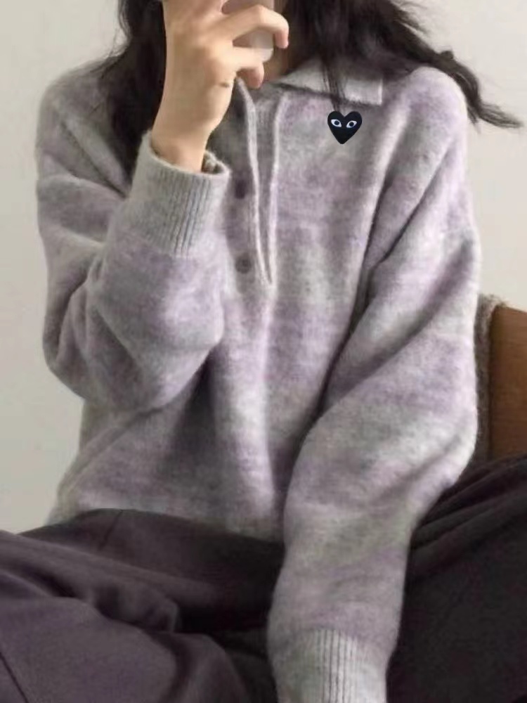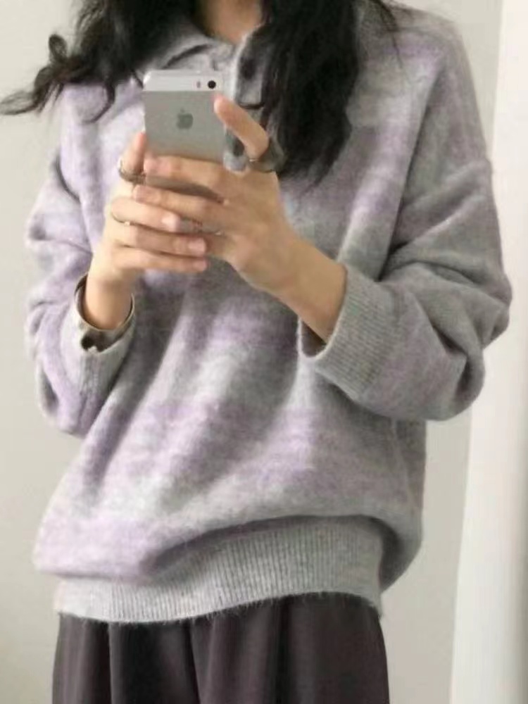 polo领针织毛衣,整体风格温柔松弛,非常适合秋冬日常穿搭。宽松落肩版型,对各种身材都很友好,自带慵懒随性的氛围感。半开领的小纽扣设计,既保留了保暖性,又能通过解开纽扣打造V领效果,增加穿搭层次感采用细腻的针织面料,触感柔软亲肤,带有轻微的绒感,视觉上柔和显糕级,保暖性也很在线。低饱和的香芋紫自带温柔滤镜,不挑肤色,黄皮也能轻松驾驭,给人一种清冷又温柔的感觉。下装可以搭配深灰色西装裤、黑色百褶裙或浅蓝色牛仔裤,通勤、休闲都很适配;也可以叠穿大衣或羽绒服,是秋冬氛围感穿搭的核 心单品。