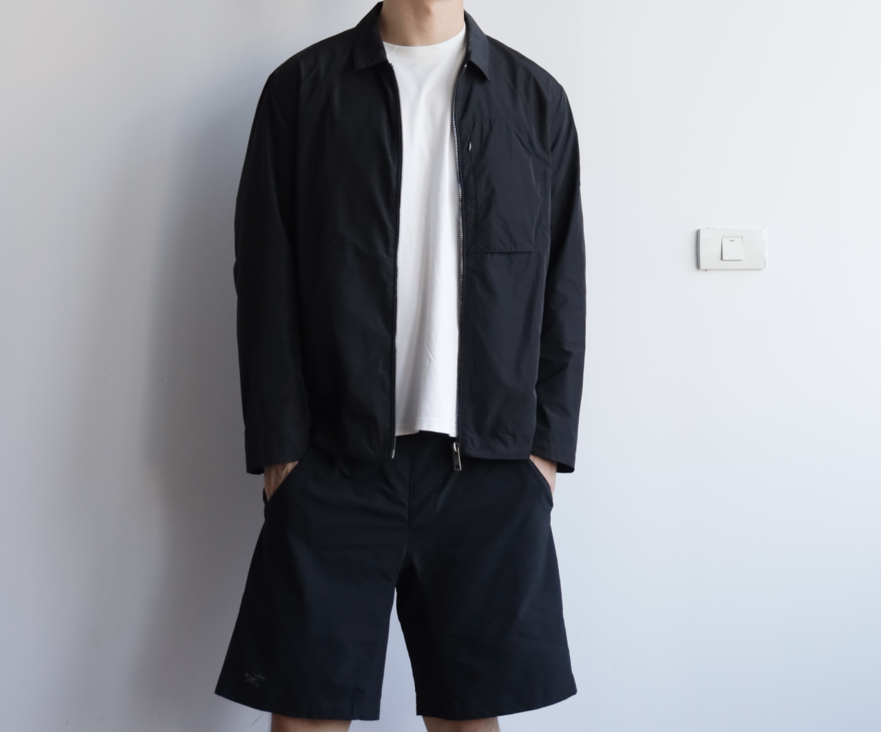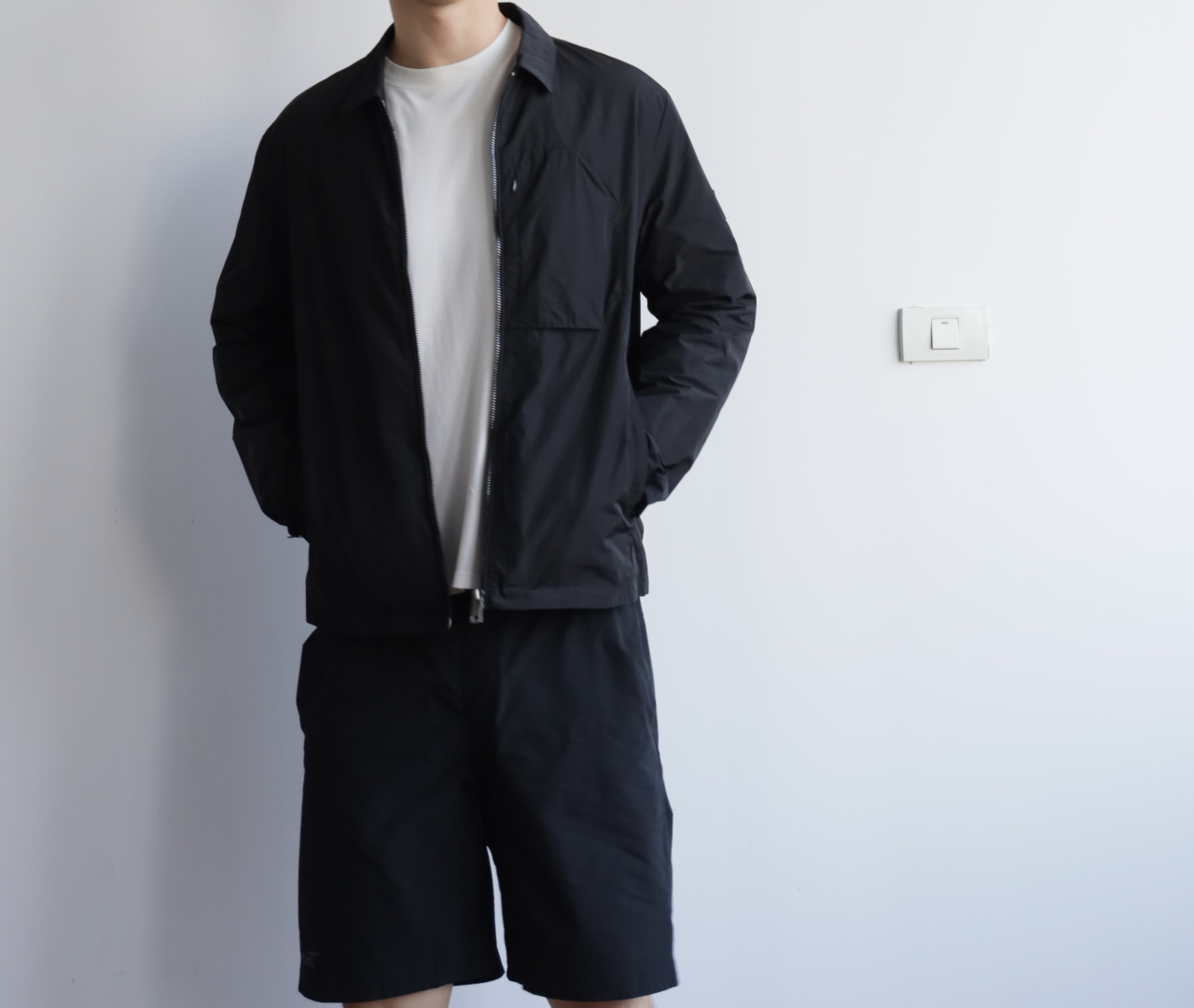 商务休闲,纯色几简,双层面料,两侧插袋拉链门襟
