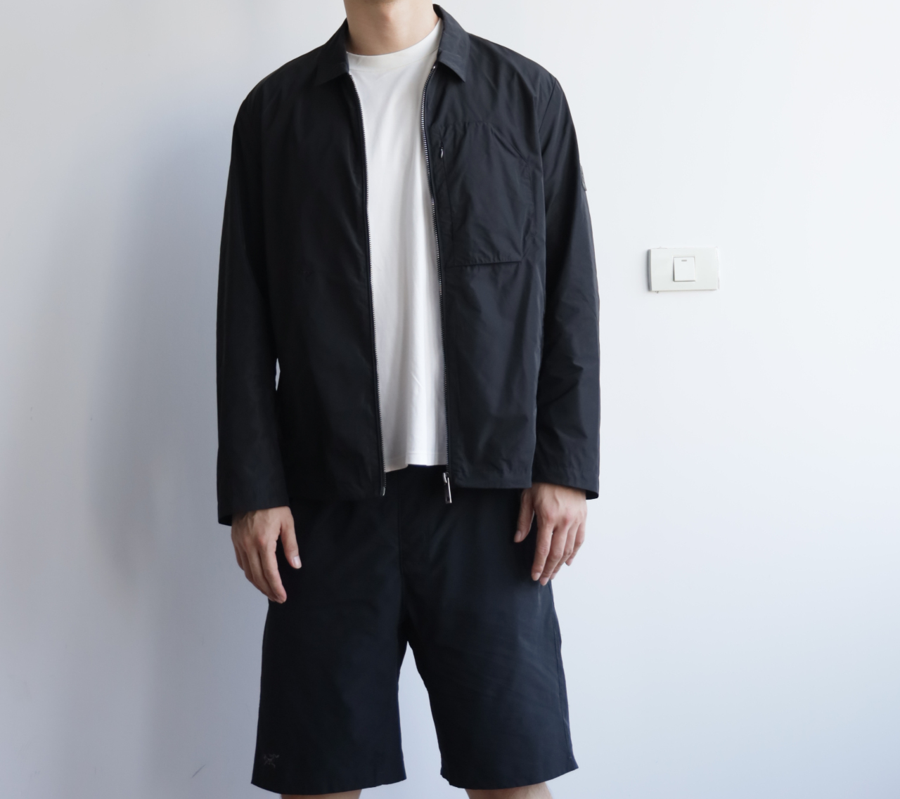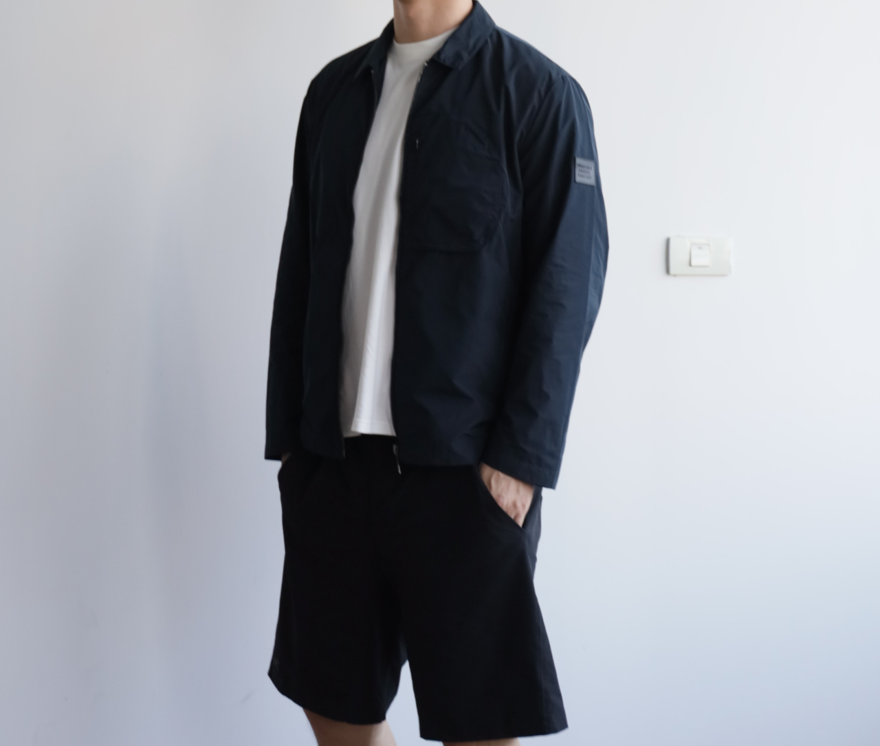 左袖硅胶徽标装饰,腰身同色小标刺绣,整体风格简约大气
