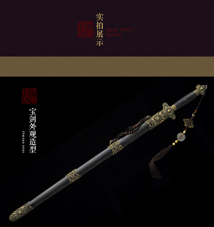 福剑 贺寿剑花纹钢 龙泉沈广隆宝剑 手工传统宝剑 收藏剑 工艺品 未开刃