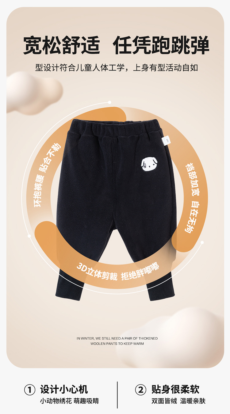 贝贝怡童装儿童保暖束脚运动裤男童长裤冬季冬装加厚加绒休闲裤子234K2558
