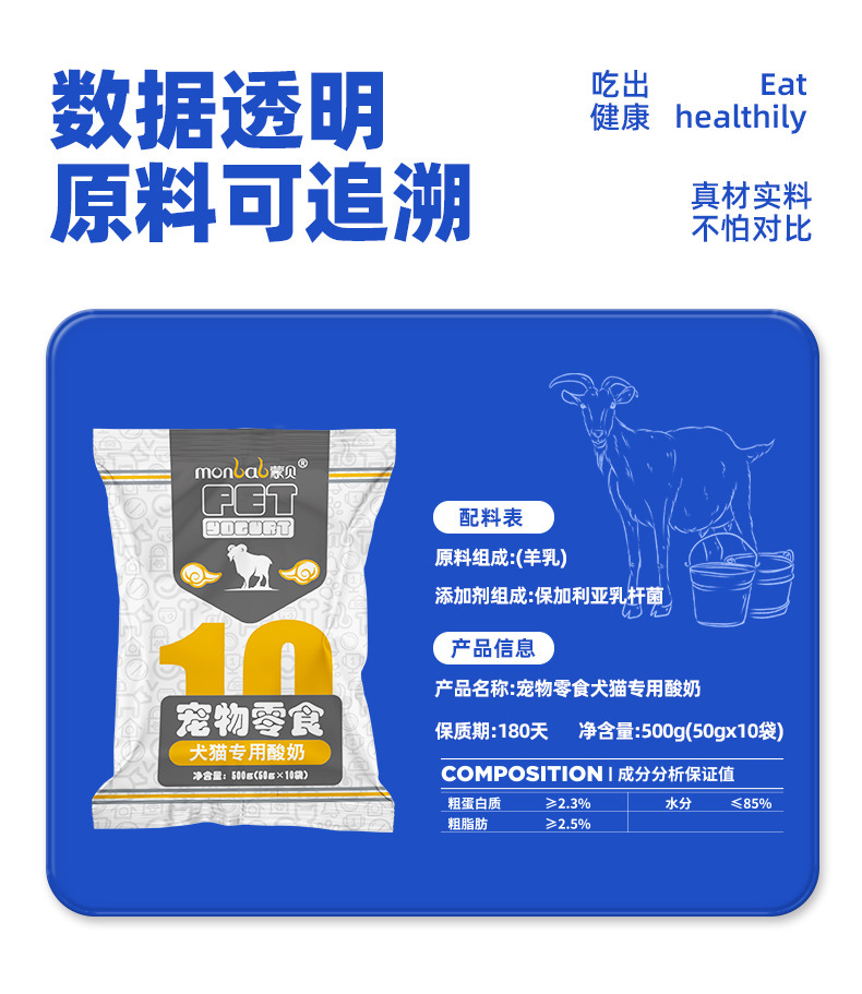 蒙贝【宠物高钙酸奶】狗零食奶酪羊奶猫咪狗狗喝的营养助消化拌粮奶