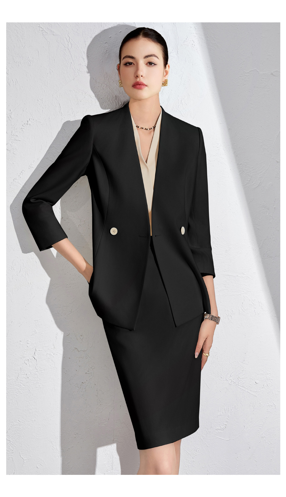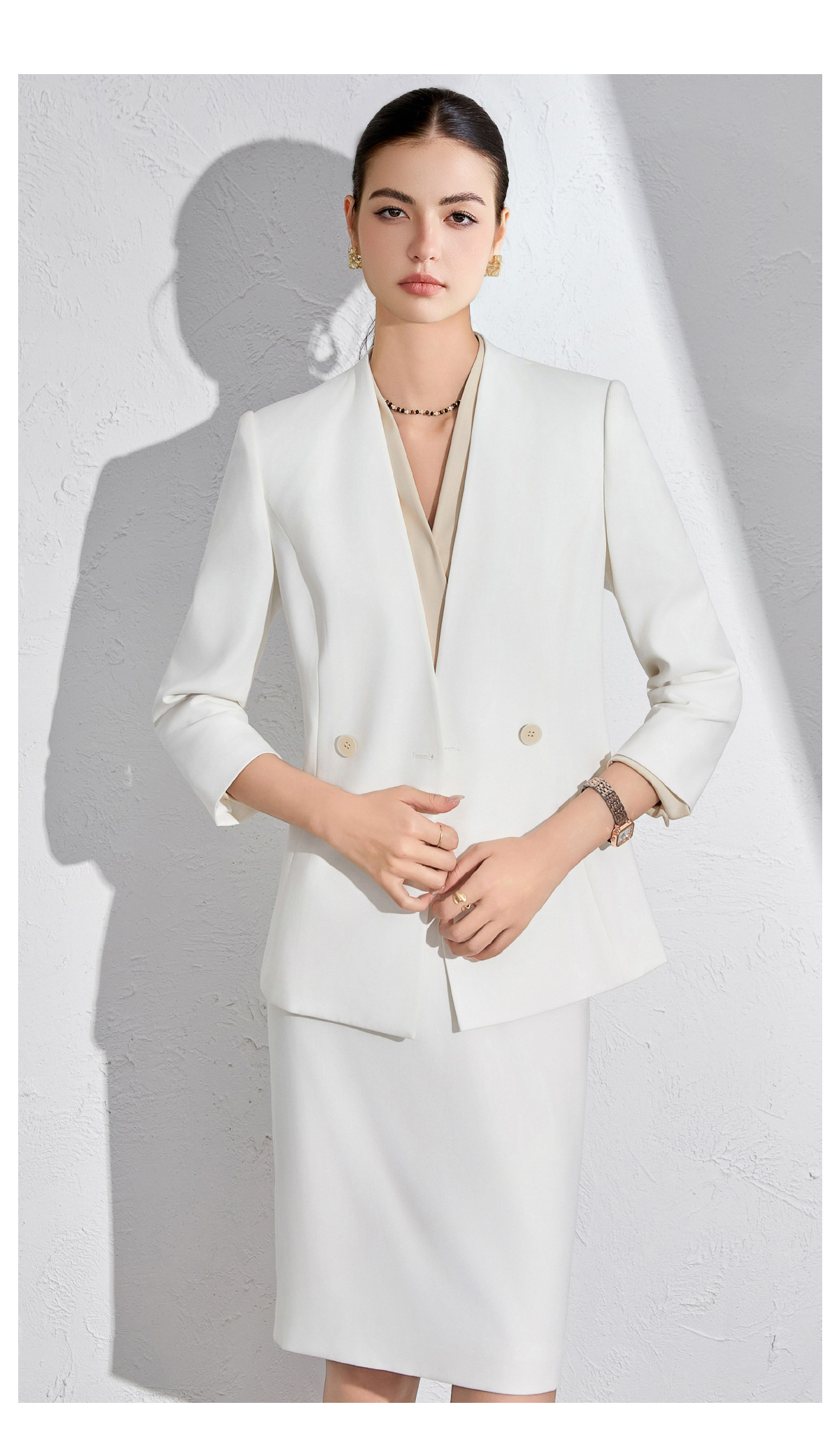 AD白色职业西装套装女夏季时尚轻奢高级感会务接待职业装气质通勤