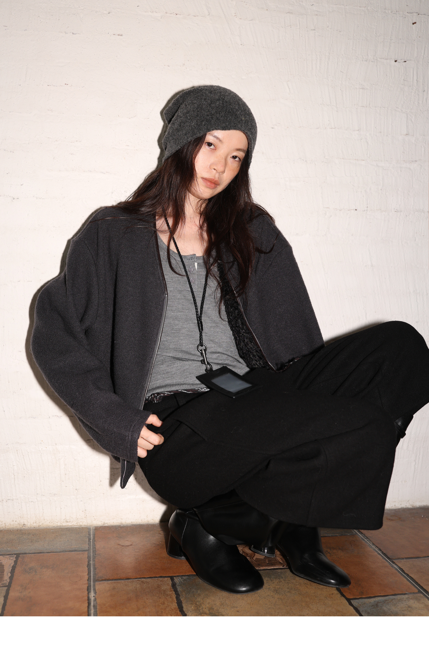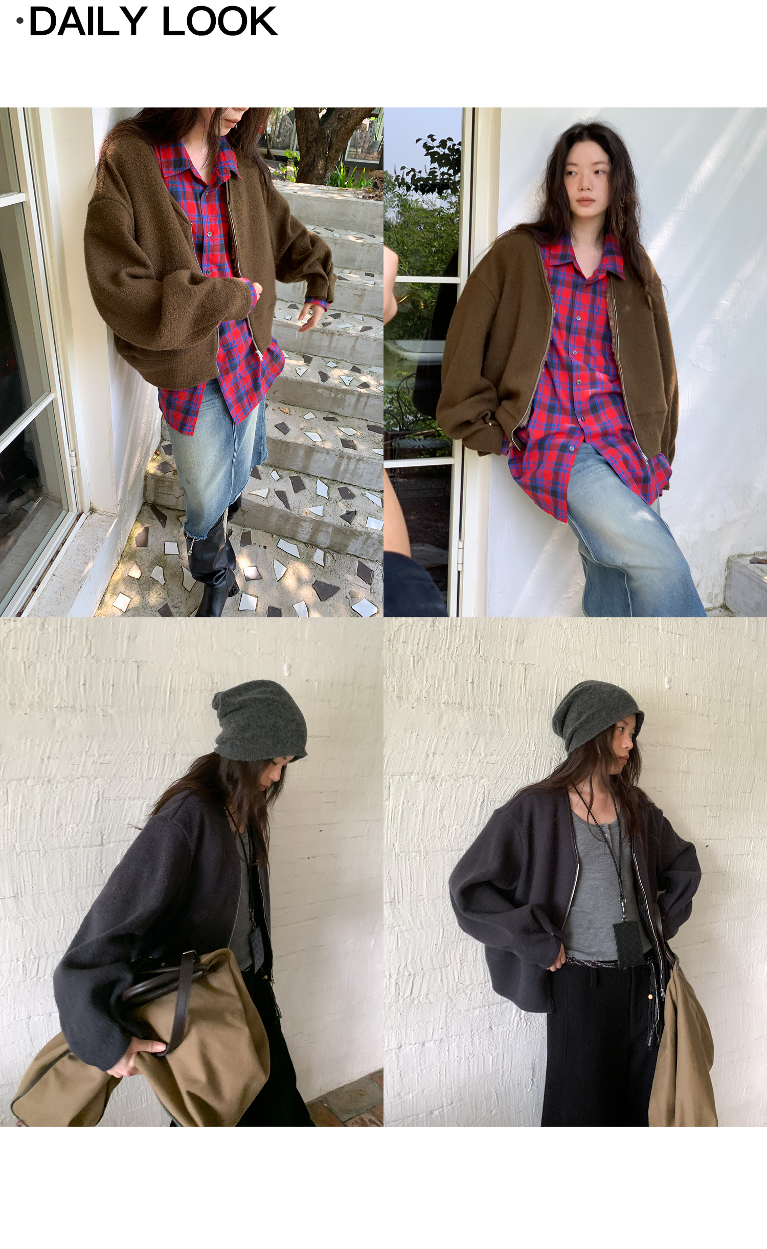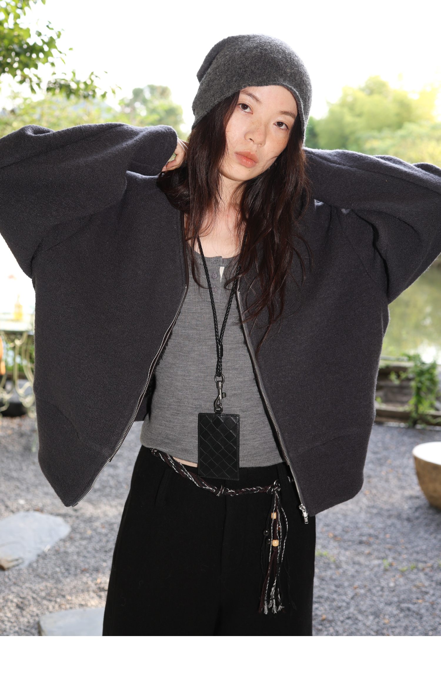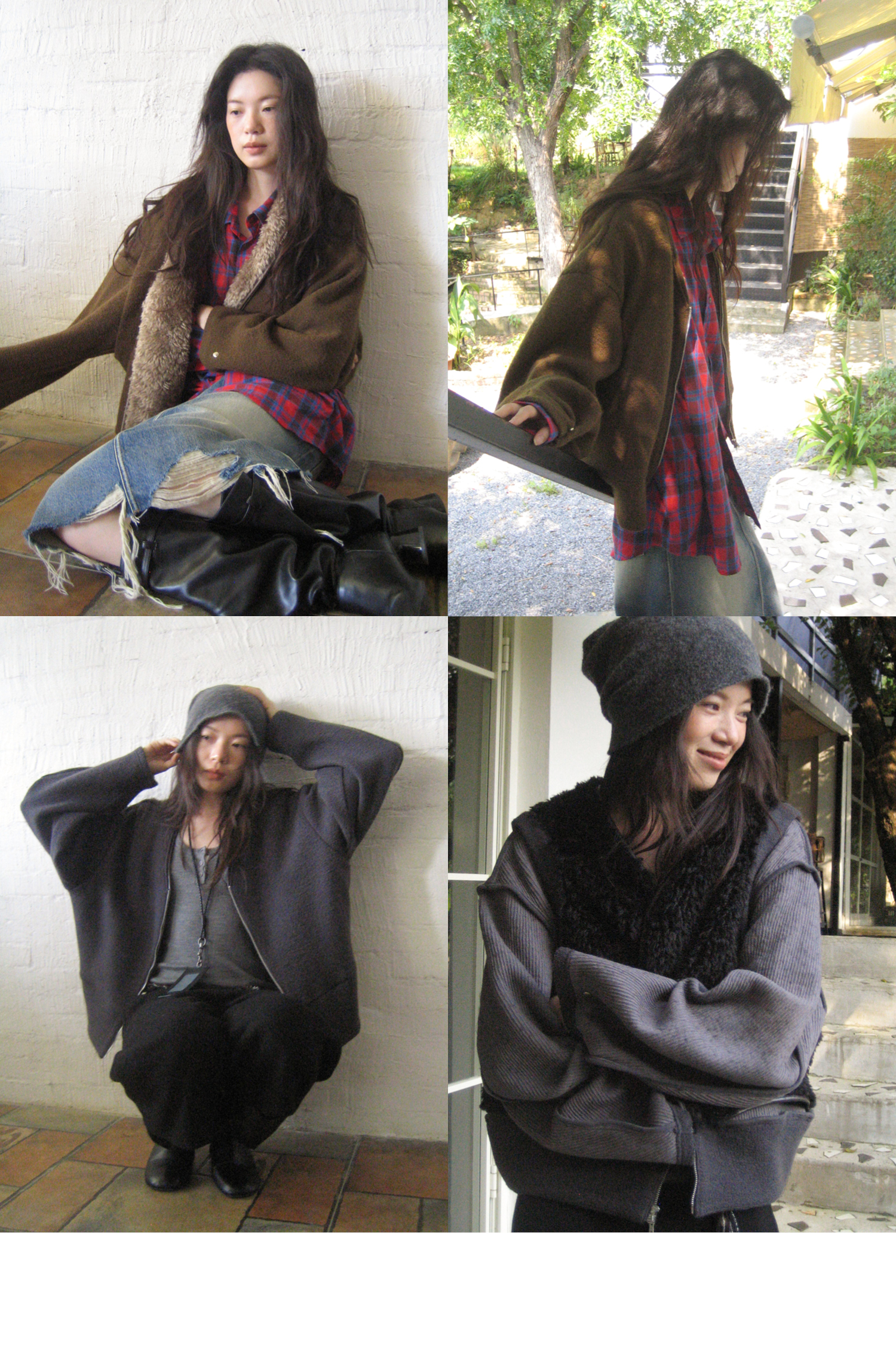素舶 绵羊毛坑条环保皮草内里马甲V领拉链百搭卫衣开衫短外套
