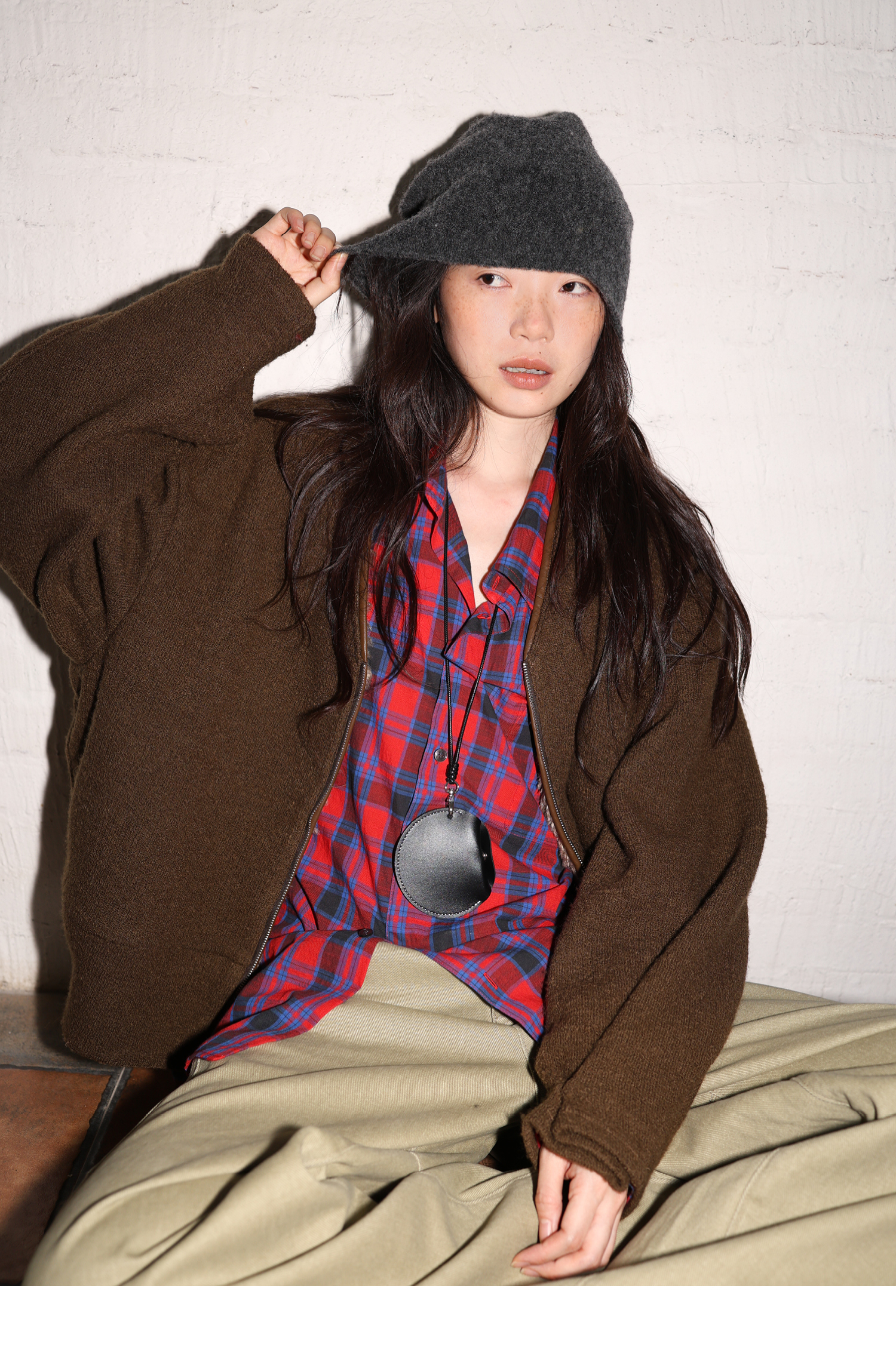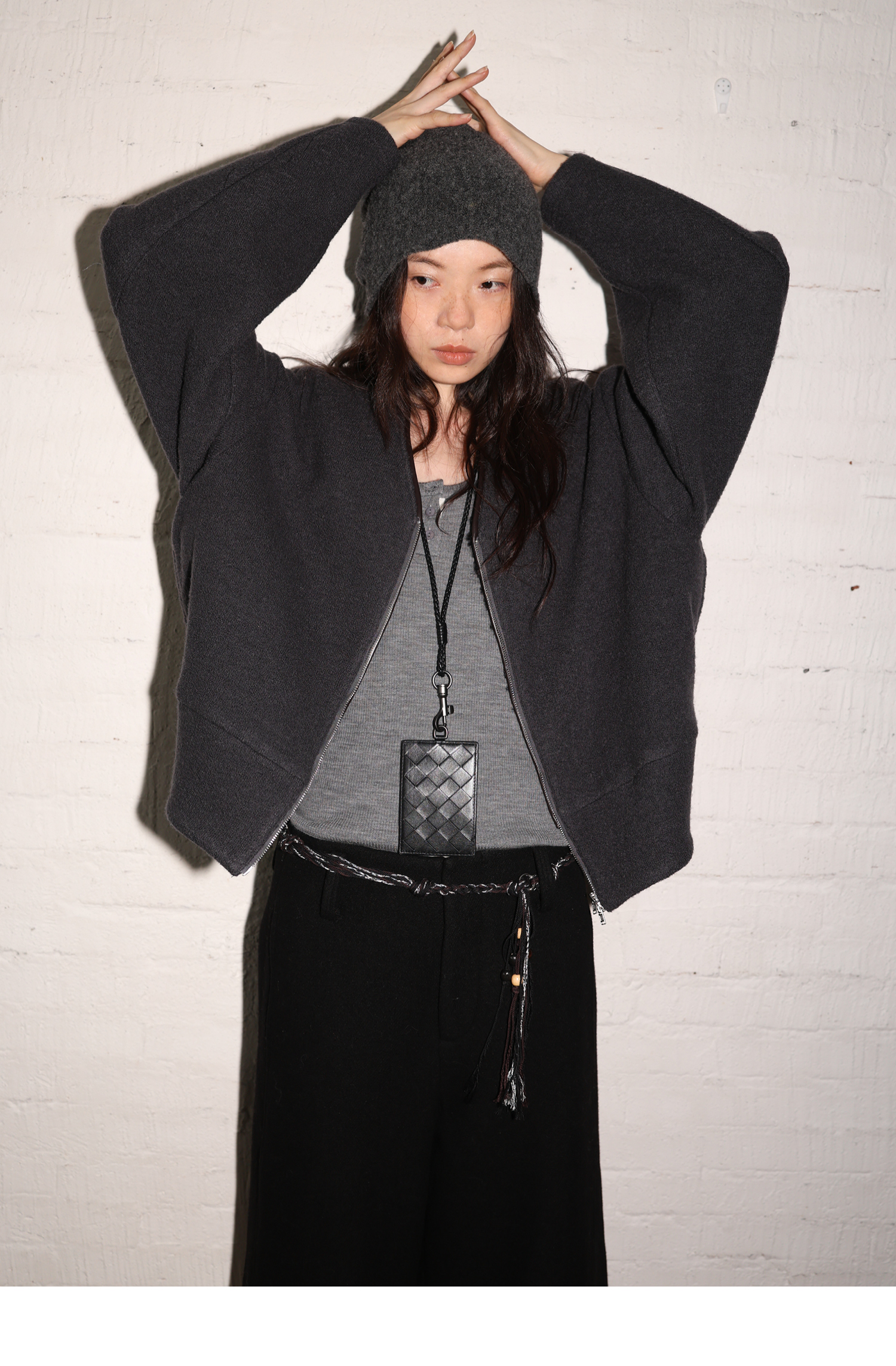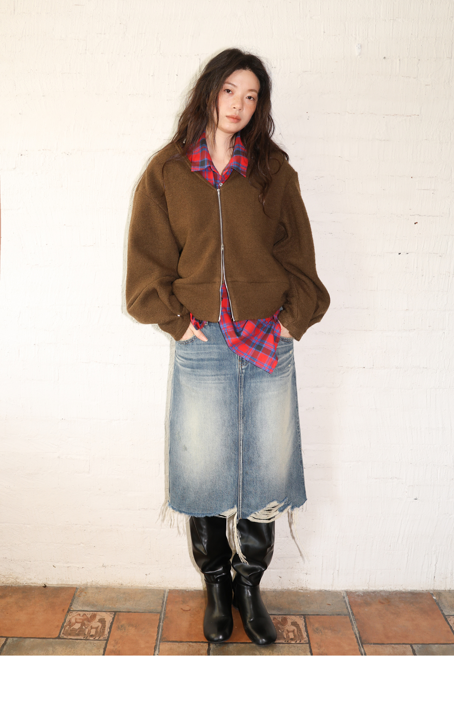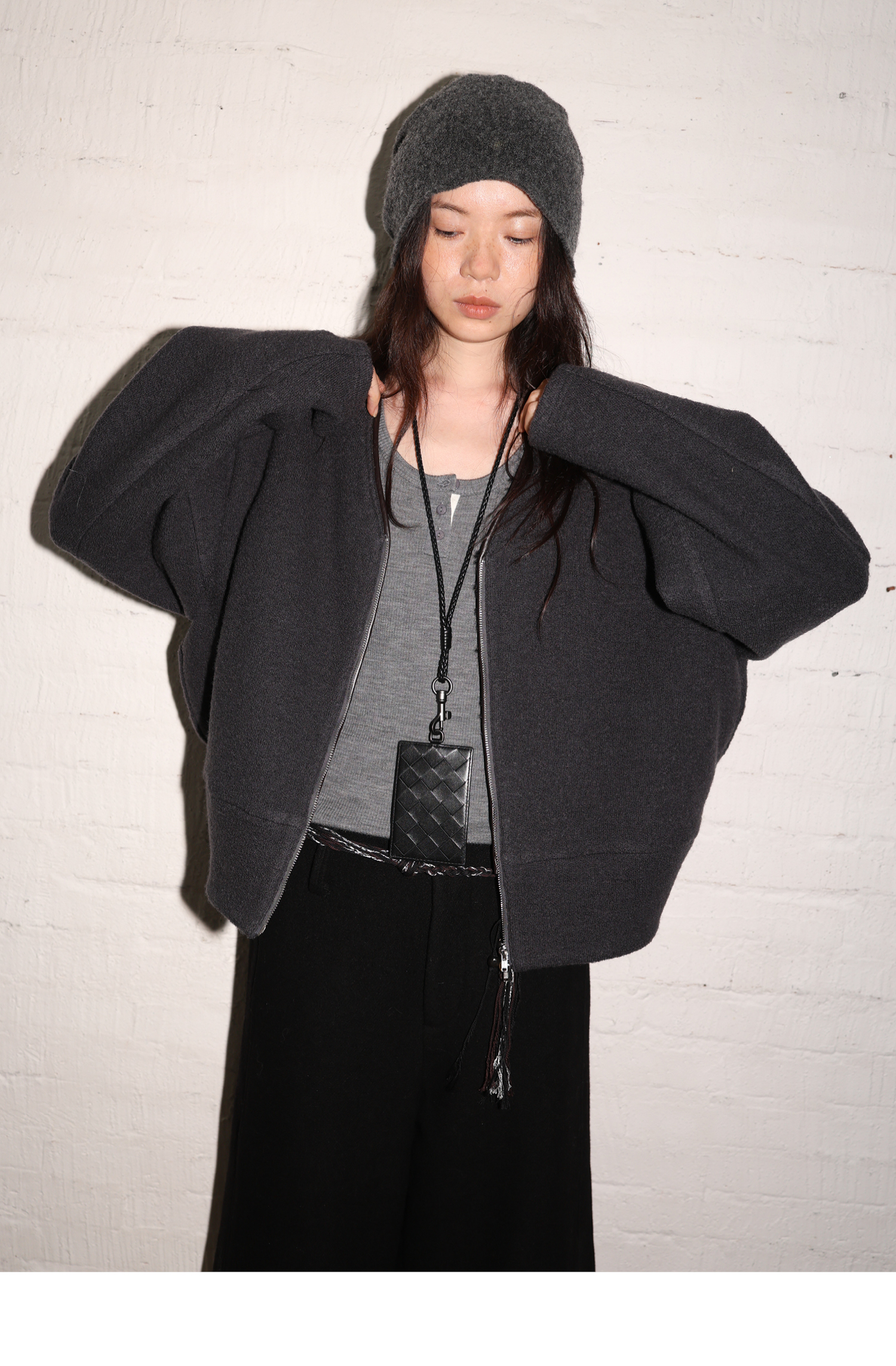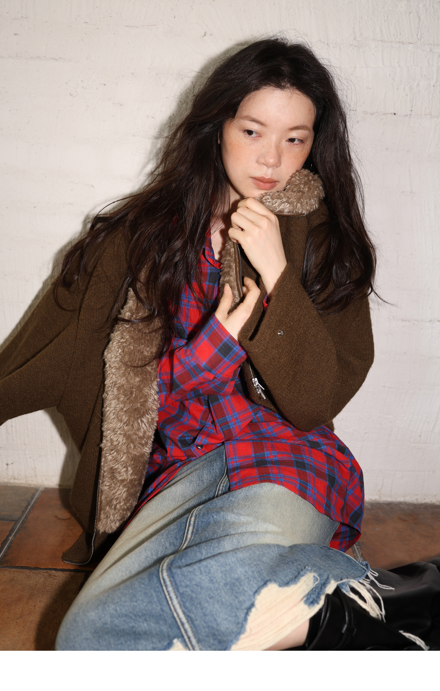 素舶 绵羊毛坑条环保皮草内里马甲V领拉链百搭卫衣开衫短外套