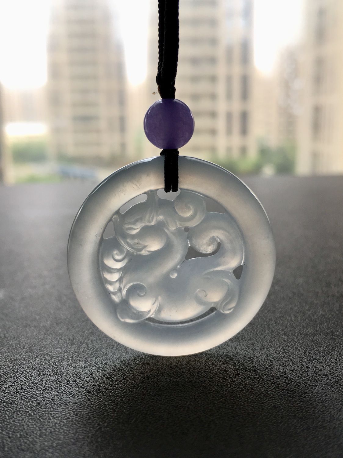 冰种翡翠大麒麟,个头大,35.6×35.6×6.5mm,特别厚实饱满,最喜欢它的种水,种气极老,果冻胶感强烈,种水特别细腻柔滑,这样的老料子可不容易,雕工古典大方,麒麟寓意事业家庭荣昌,送男士很不错哦,只要四位数,品质这么赞, 推荐