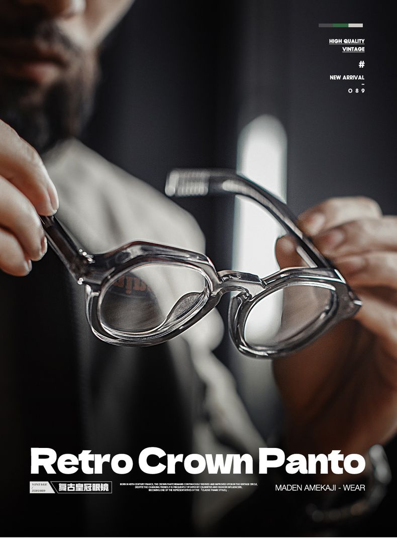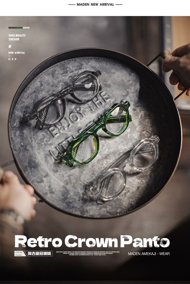 工装优选美式复古经典CrownPanto眼镜日式圆框粗框皇冠板材镜架男