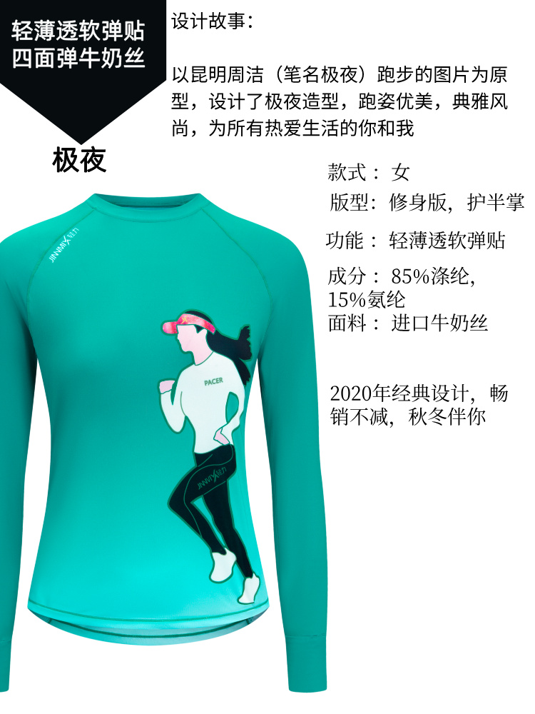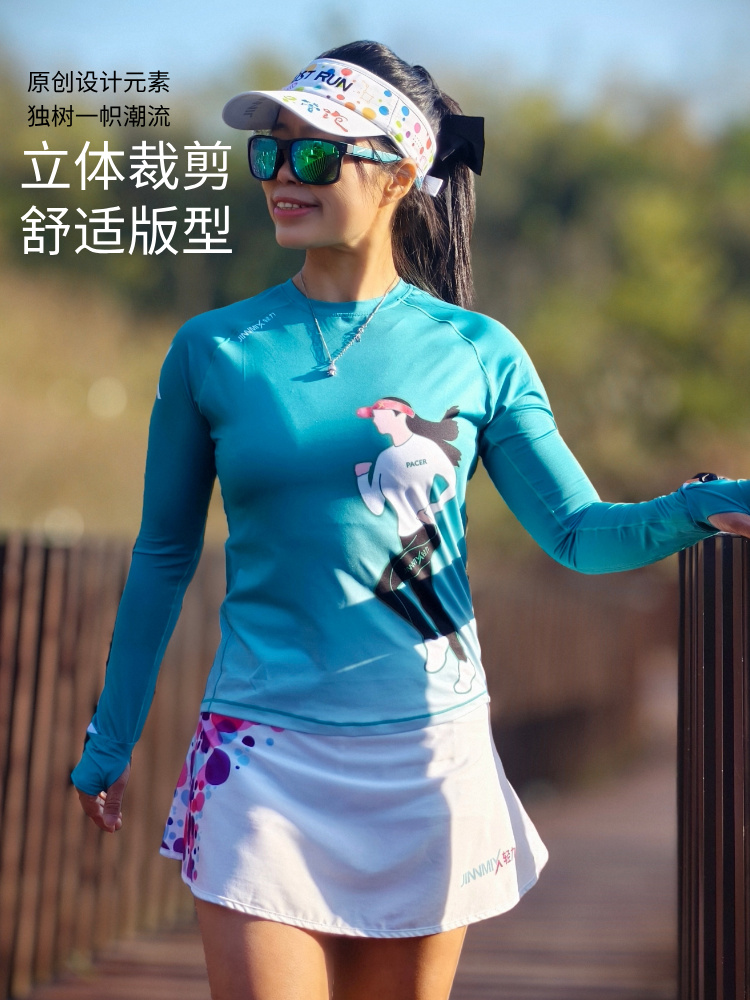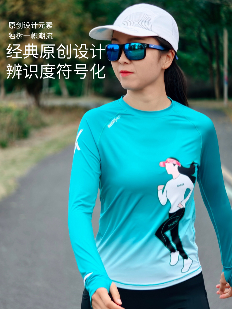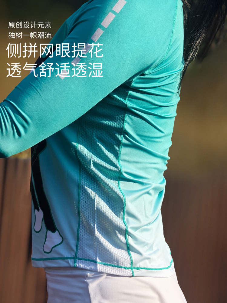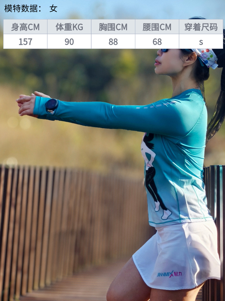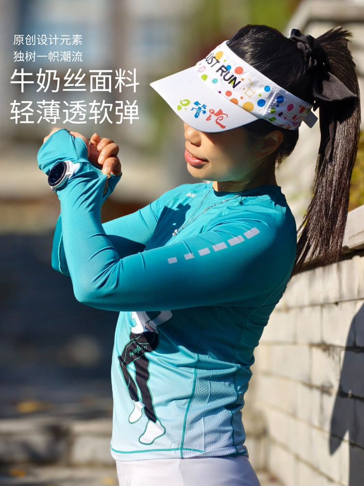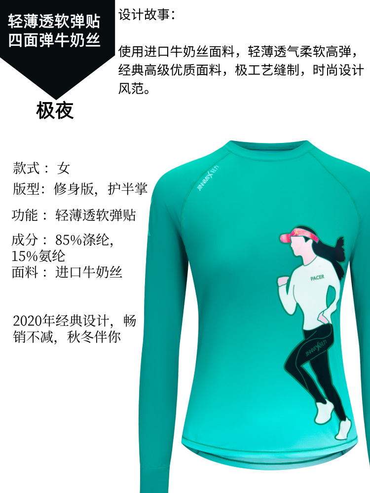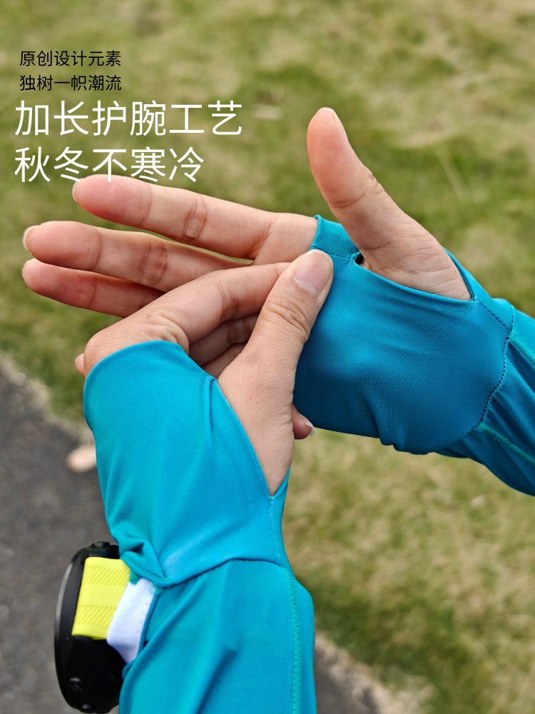 极夜超轻透气速干加长护腕手表孔修身跑步运动长袖女