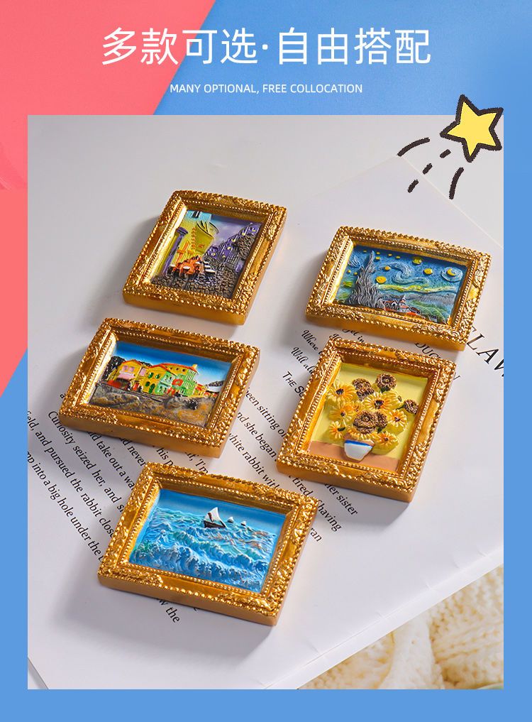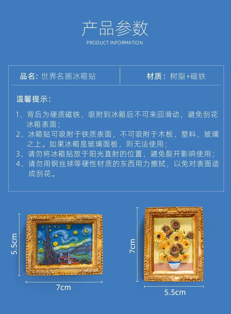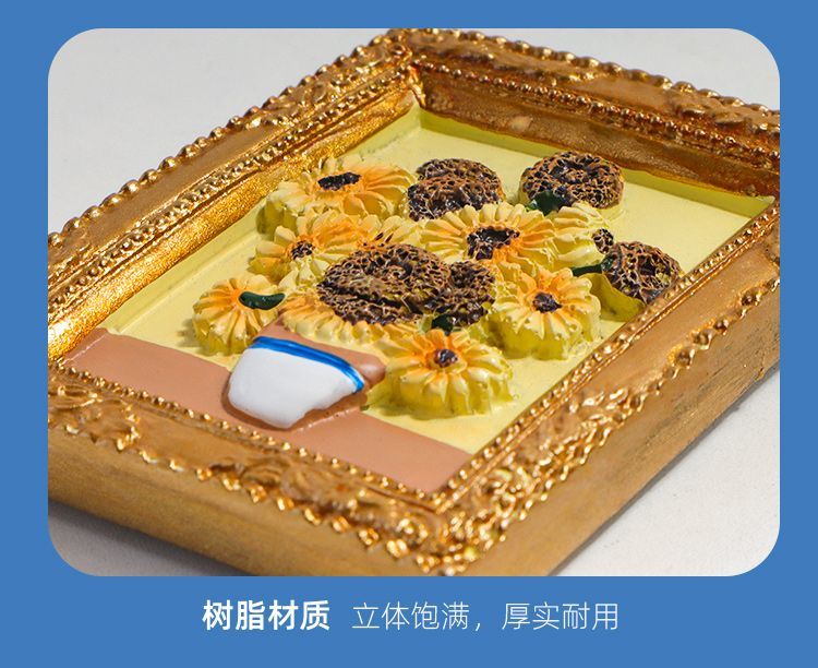 创意ins向日葵冰箱贴欧式北欧梵高世界名画系列3D立体网红磁性贴