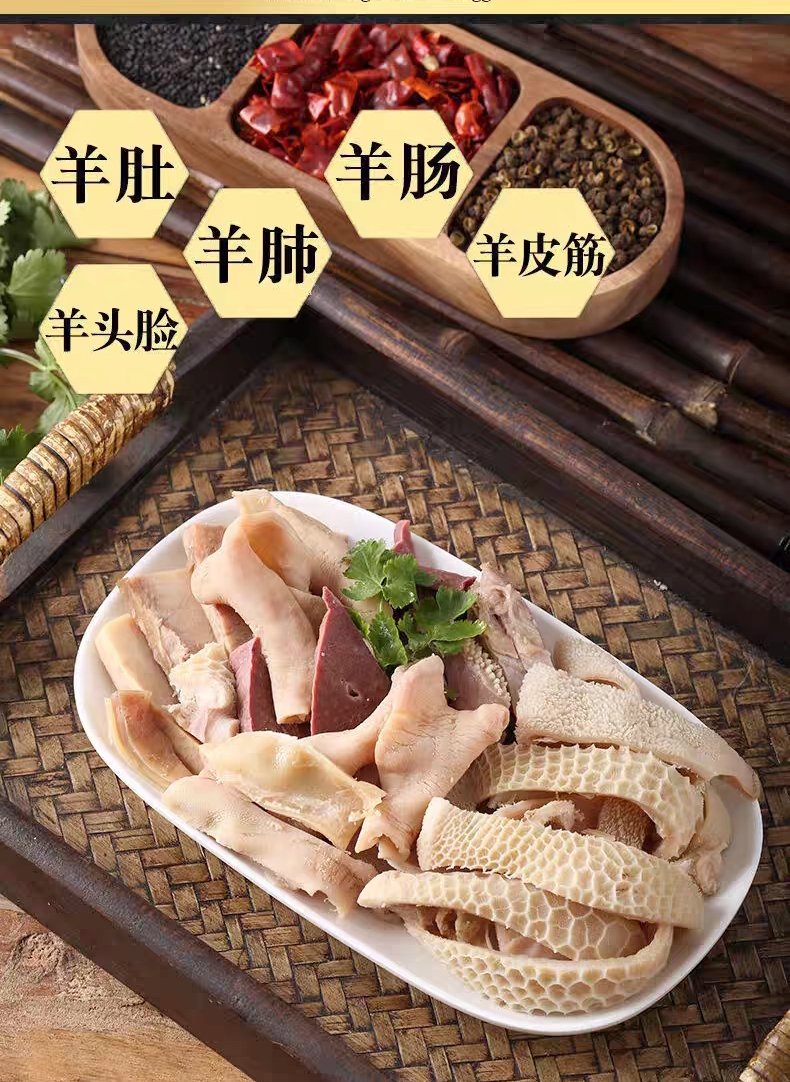 羊杂介绍:惠军生态羊杂,承袭品牌对极致品质的一贯追求,与招牌山羊肉同源同标。所有羊杂均精选自品牌生态牧场、自然放养的优质山羊,从源头确保食材的新鲜与纯净。