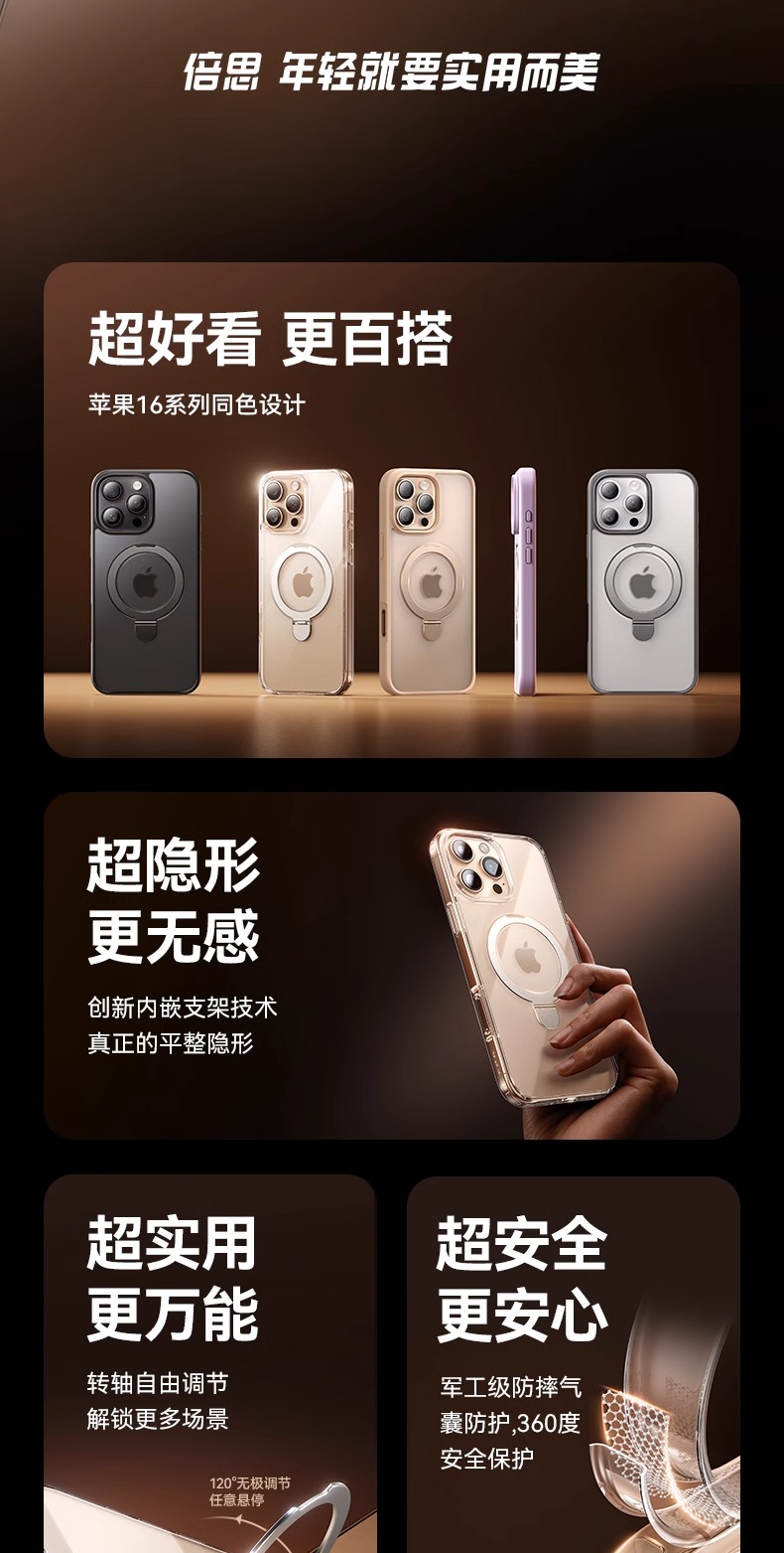 倍思 天环系列 磁吸支架保护壳支点壳手机保护套 适用iPhone13-16系列