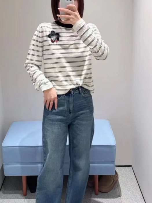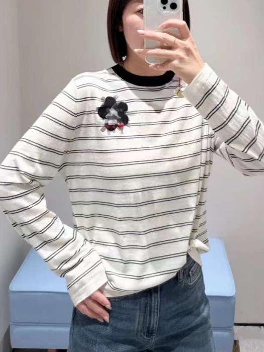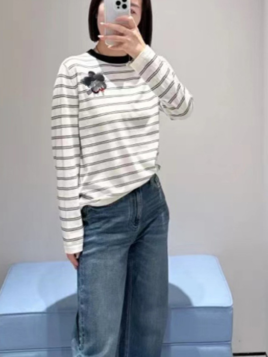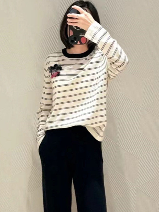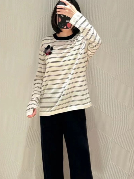 【来点不一样的】柜1900+!圆领夹条女套衫2025年秋冬新品装饰休闲条纹宽松T恤上衣
