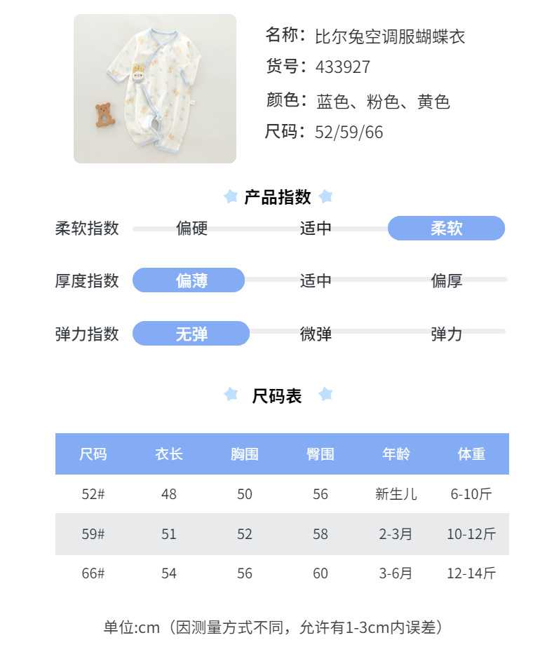 【比尔兔空调服蝴蝶衣】新生儿夏季衣服宝宝睡衣安阳婴童装和尚服纯棉婴儿包屁衣空调服