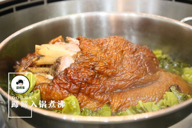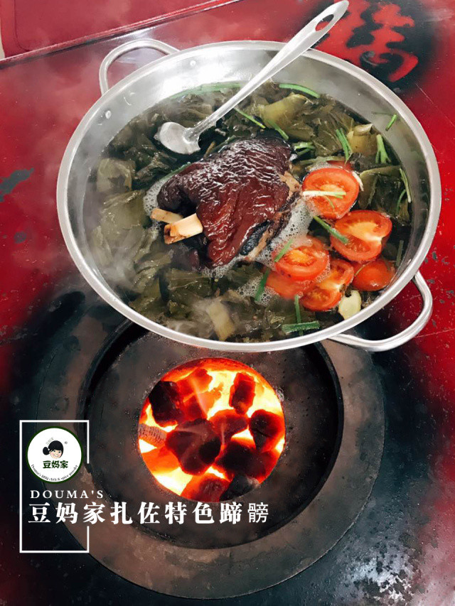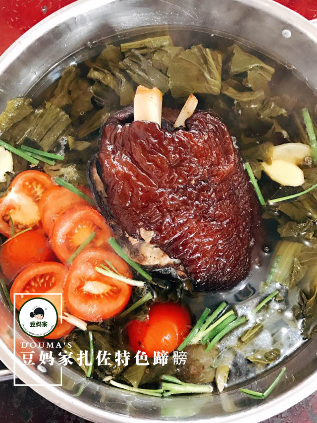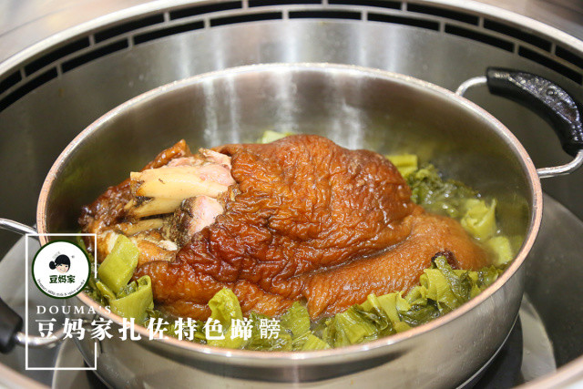 贵州“扎佐”是豆妈惦记的一个地方,原因有二,这里有贵州最大的野生动物园可以带豆豆来和小动物亲密接触,其二就是因为这里有一味美食,堪称“大餐”,每一条老街都有它的踪影,家家户户都会做——扎佐特色蹄髈!好事多磨,终于在这个多事的十一月,将与大家见面。“酒香不怕巷子深,味美还需吃货寻”,扎佐在贵阳北郊,距离市中心38公里外,一方土地总会孕育一方美味。扎佐的蹄髈皮酥肉嫩,入口即化,搭配美味的汤料和爽口的酸菜,普通的一种做法,却有着独特的味道。小编在编辑前,问豆妈:“你觉得这个蹄髈有什么不同?作法不同?材料不同?”豆妈说:“其实我也说不上什么不同,就是比别的地方好吃。”或许美味就是如此,没有定论,没有标准,“盐少许”“中火”“翻炒数次”……这些我们常见的非标准食谱,一百个厨师却有一百种味道。豆妈最爱的是一家几十年的老店,店主很任性,对美食近乎苛刻。豆妈等待制作,花了好几个星期,反复奔走在扎佐和去扎佐的路上,似乎也是在为美食的最后一现积蓄能量。有些东西,有些人,值得我们期待的,同样值得等待!在经历了制作过程之后,我们终于感受到了这其中的不同……沸水去毛反复来了两次,确保没有杂质。抹上甜酒酿炸了之后卤上几个小时。这个时候卤水的味道充斥着整个房子,可却不得不抑制住我们蠢蠢欲动的舌头,因为还不到时候。中国人讲究“时”,万物兼有“时”。日常的一道菜也有它自己的“时”,时候到了,就是美味,心急提早了,不入味,偷懒拖延了,又少了口感。几个小时后,将蹄髈取出再小火蒸上十几个小时,这个过程是十分需要耐心的,在以前没有电磁炉也没有煤气的时候,人们通常会因为这道菜,加火添柴,反复折腾。似乎折腾的不是美味,而是自己。美味在空气中弥散开来,生活因为折腾也更加有味。折腾了一天的美食,终于出锅了。曾有人说过“等待的时间越久,相逢的时候就越幸福”,长时间的等待,中途克服着种种诱惑,耐心烹饪,最终与美食相逢,似乎这一切都是为了这一刻。相逢,变得更加有味。豆妈家蹄髈,最终是以便携的方式呈现给大家,拒绝冷冻后出售,新鲜真空包装,保留最佳口感。蹄髈和汤汁一起打包,搭配蒸出来的卤油(白色那包)、青菜酸、还有豆妈家的煳辣椒。大家只需将卤油下锅至80℃左右,将青菜酸放入,炒香,随后连汤汁一起放入蹄髈,煮沸10分钟左右即可食用。喜欢吃辣的朋友,将豆妈家煳辣椒做成蘸水,或者直接放入锅中,都是不错的选择。不过小编提醒大家,我们的汤汁足够,不用加水,加水的话多少会影响到它的原滋原味的。这就是豆妈分享的美食——扎佐蹄髈。每一个环节都不曾马虎,才做出来的美味!