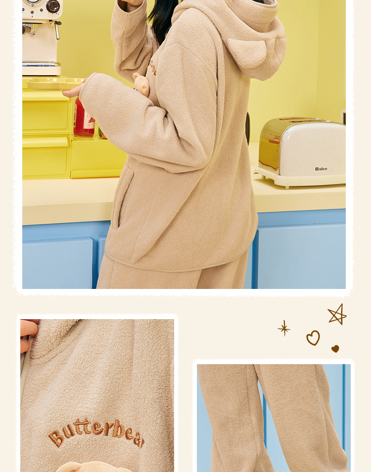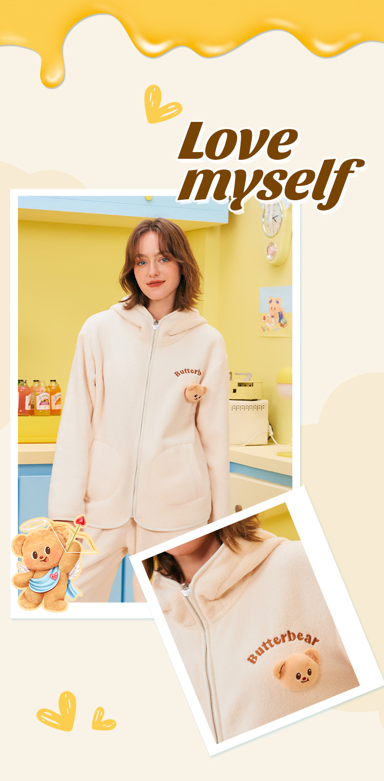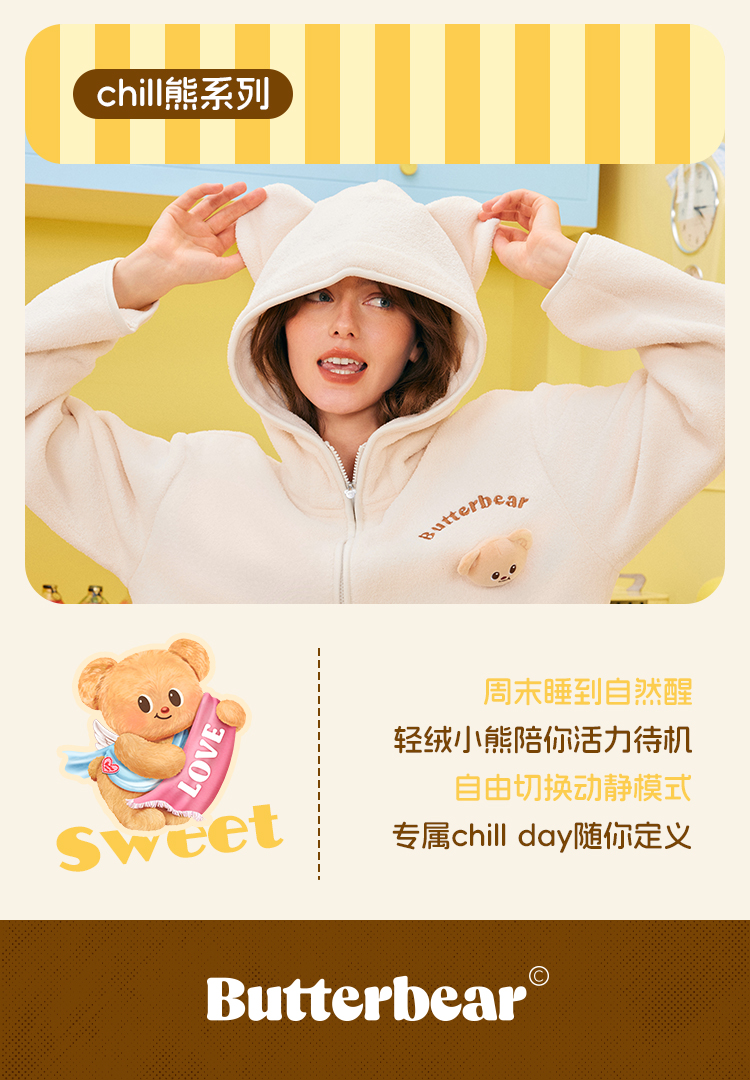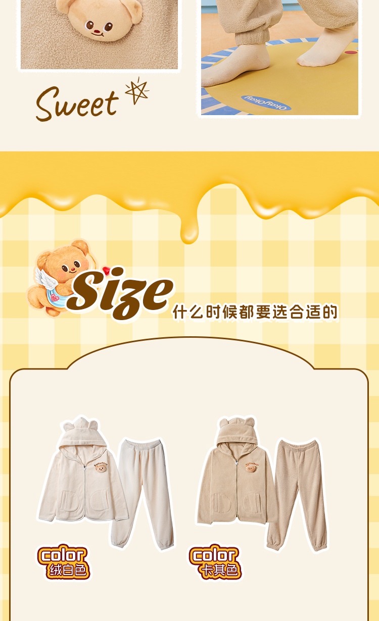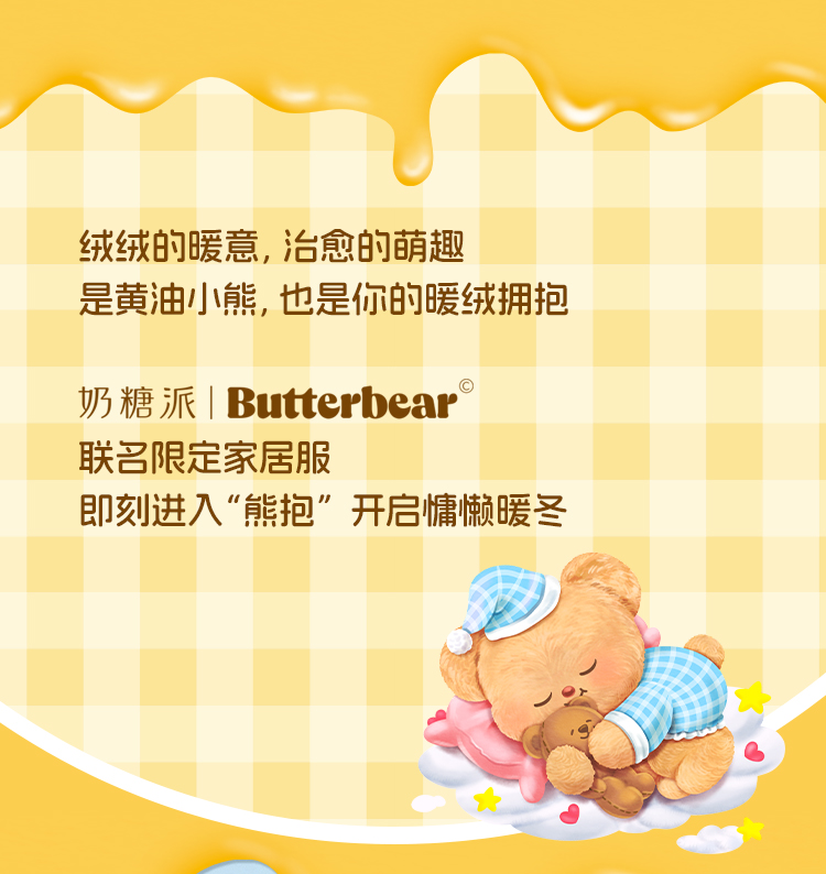 奶糖派chill熊保暖睡衣套装秋冬抗静电黄油小熊联名家居服可外穿