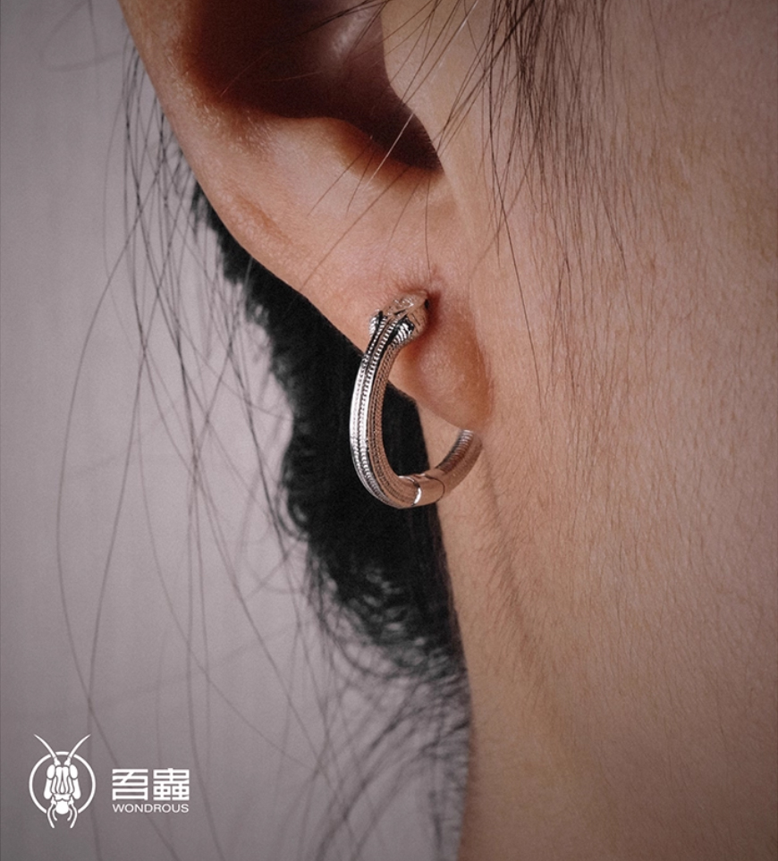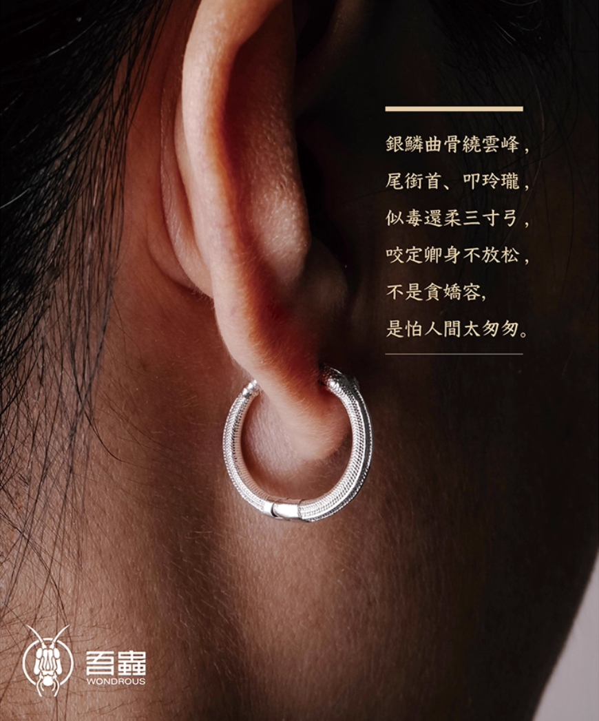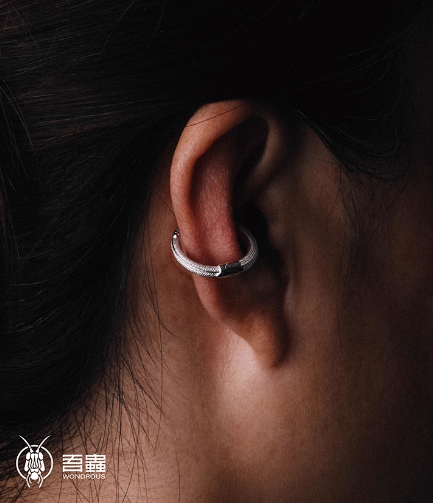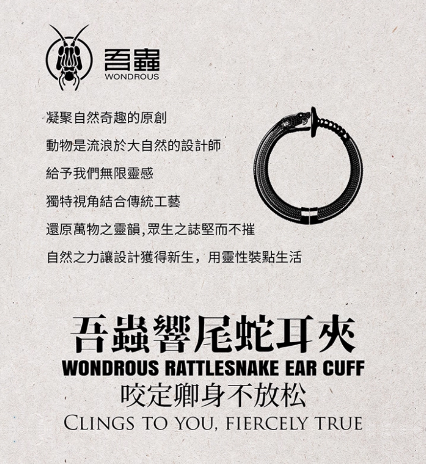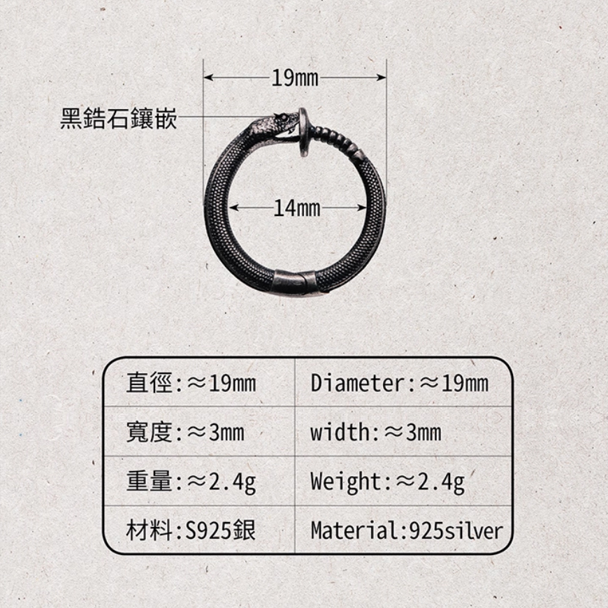 吾蟲-响尾蛇 银耳夹 黑锆石镶嵌 S925银配饰 蛇主题耳饰耳环 个性礼品【官方授权 48小时发货】