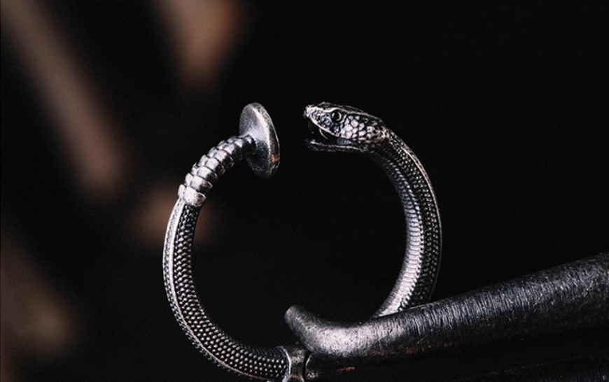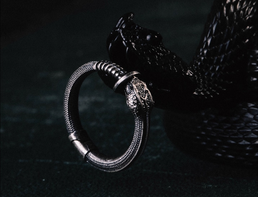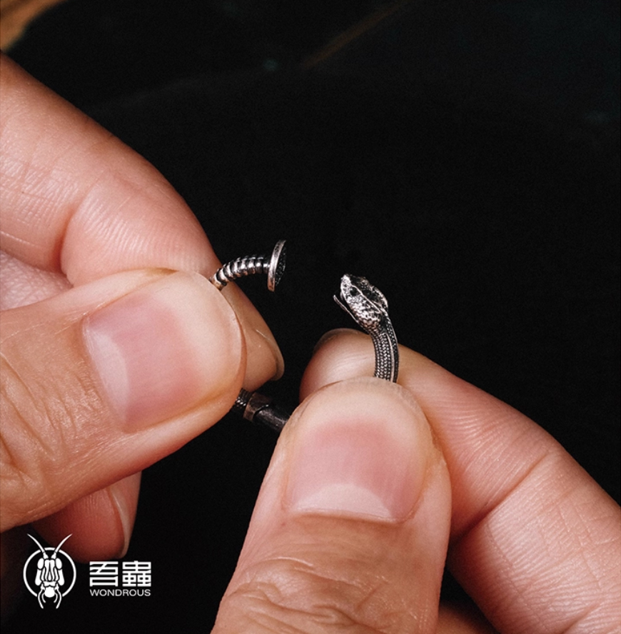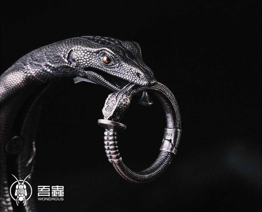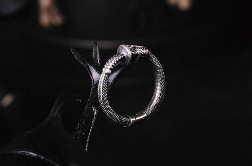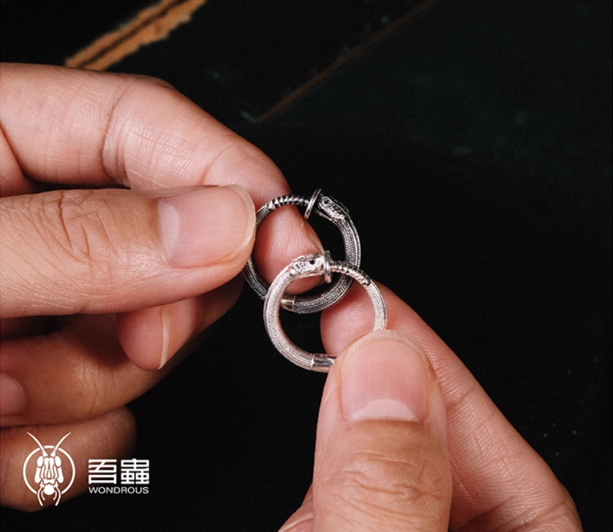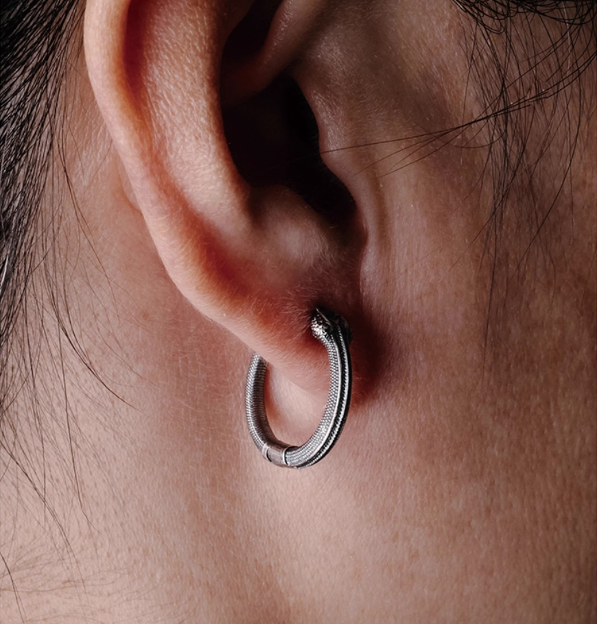 吾蟲-响尾蛇 银耳夹 黑锆石镶嵌 S925银配饰 蛇主题耳饰耳环 个性礼品【官方授权 48小时发货】