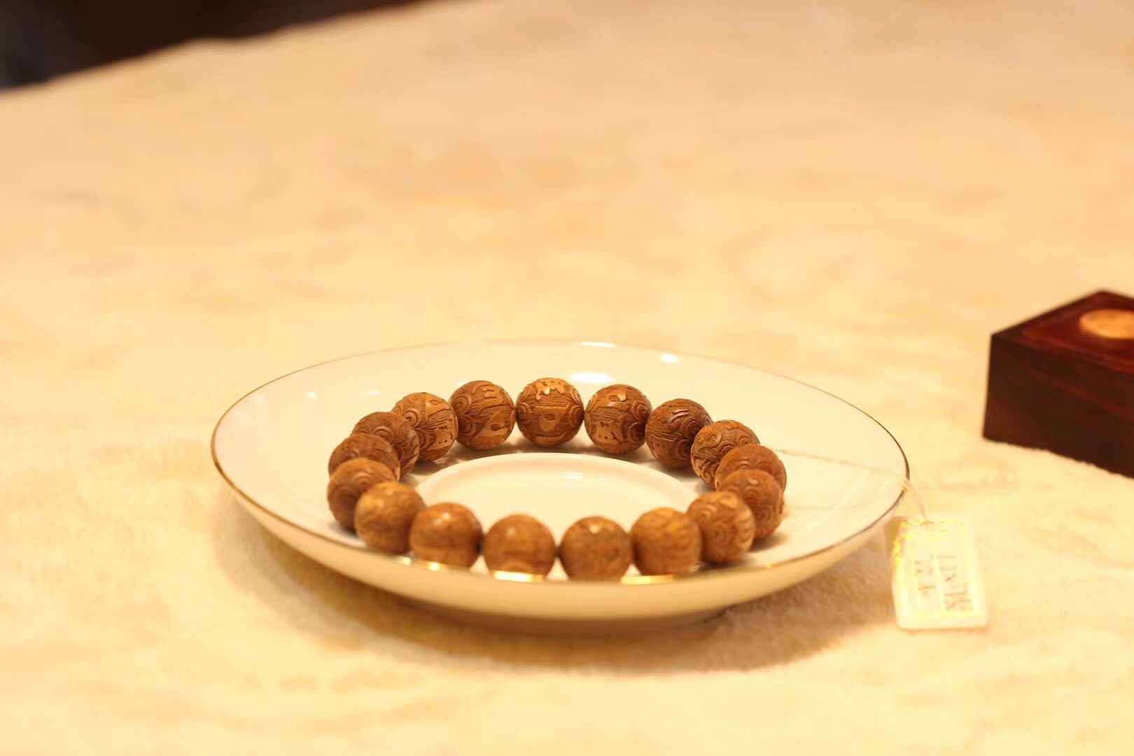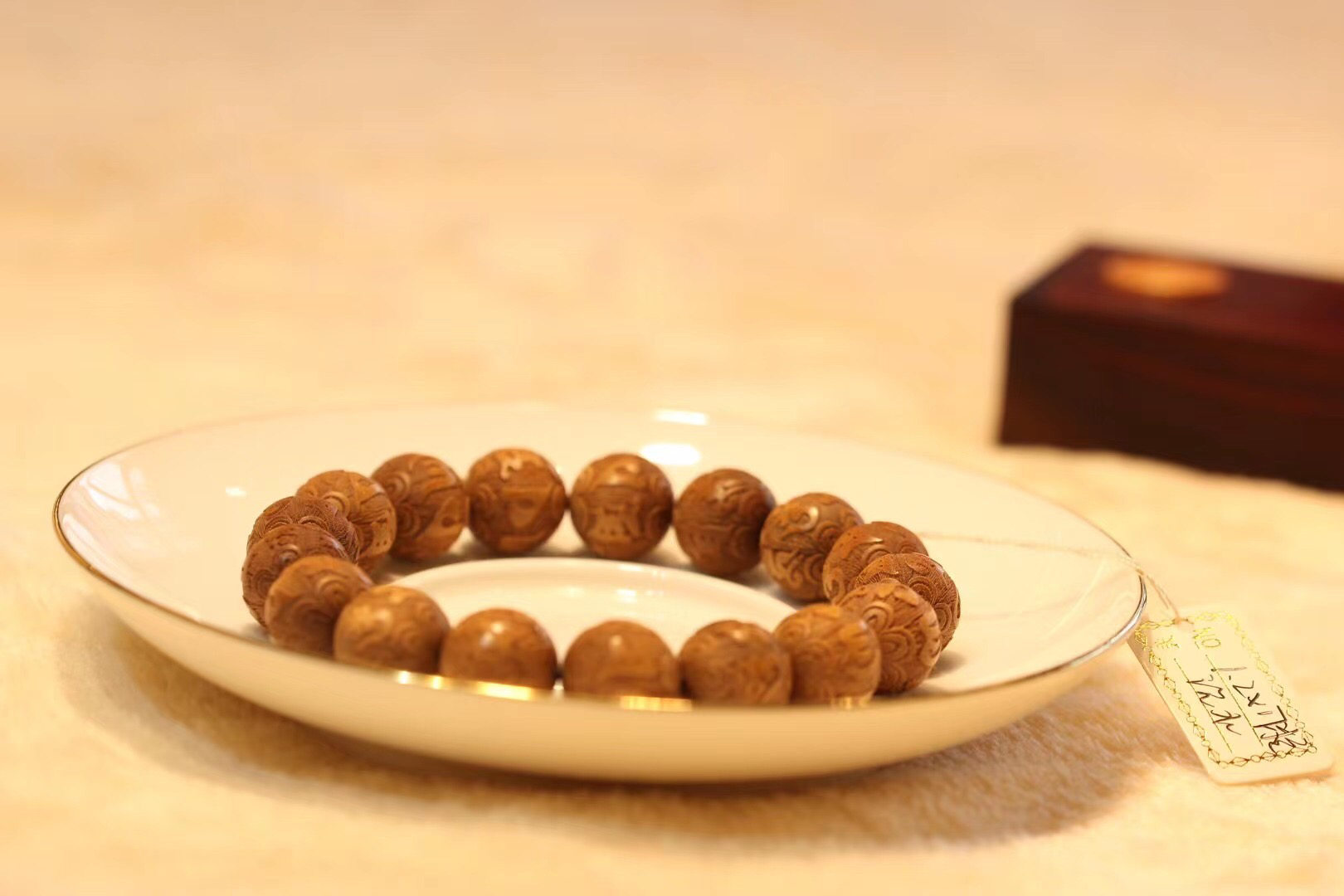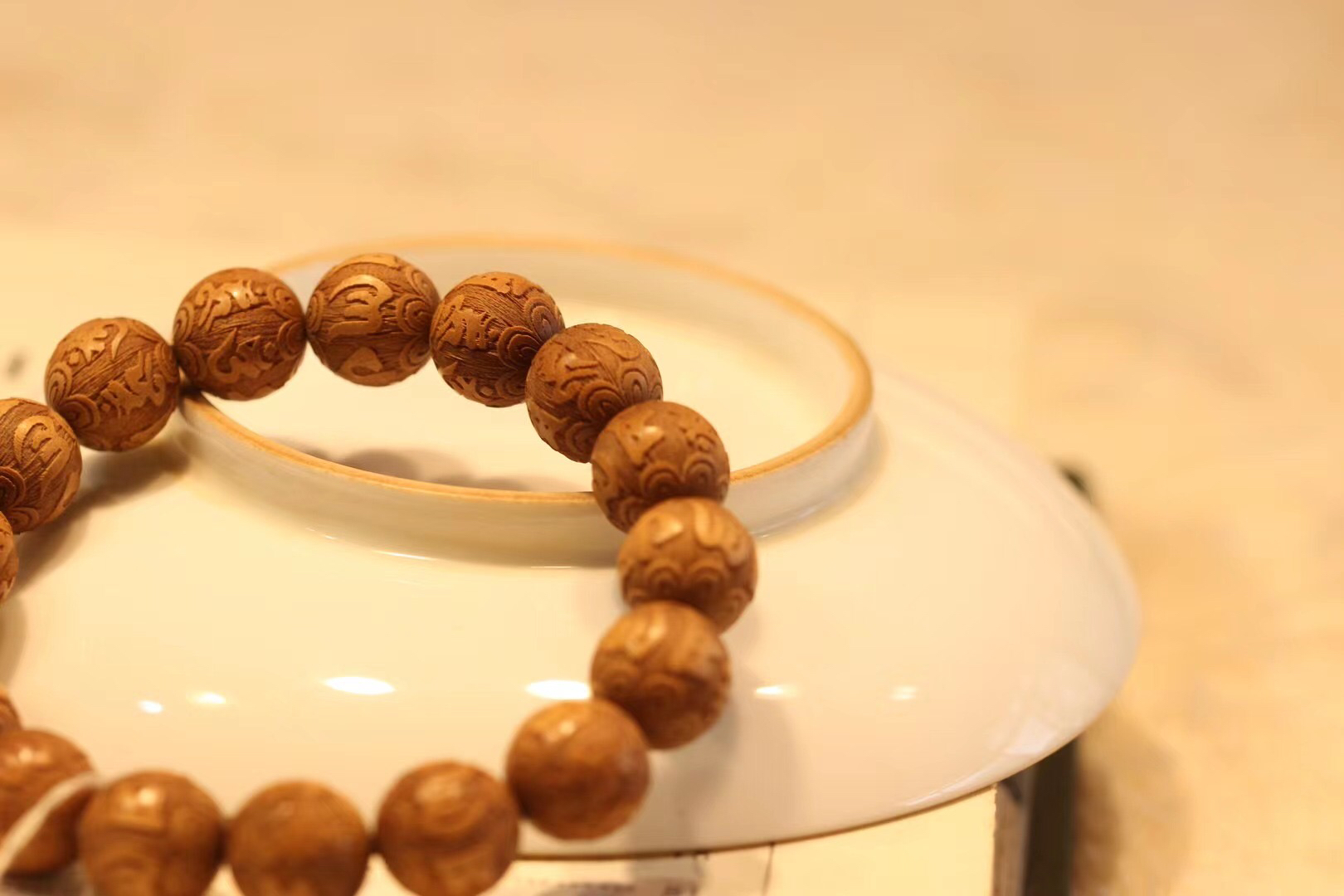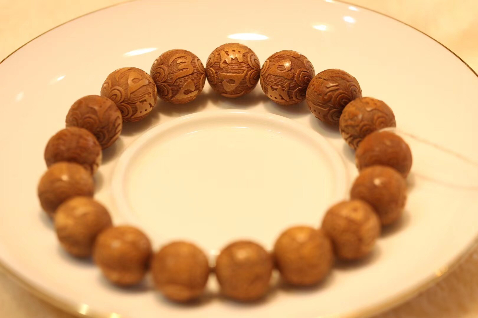 优质老山檀料,料质细腻,底色干净,纹理清晰,香气清新舒适,细腻自然。手串很规整,细腻大气,韵味十足。最近价格涨幅很大,这一个手串价格实惠,不要错过哦!