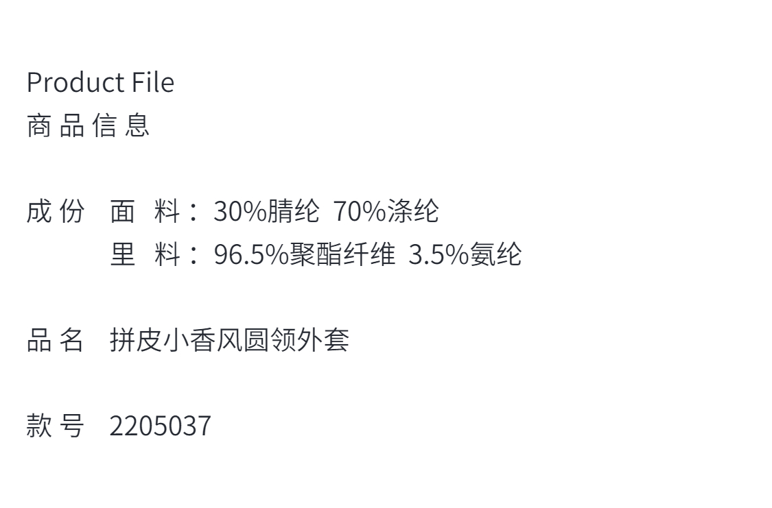 法式名媛拼皮花呢气质小香风外套、时尚春秋长袖简约风 2205037