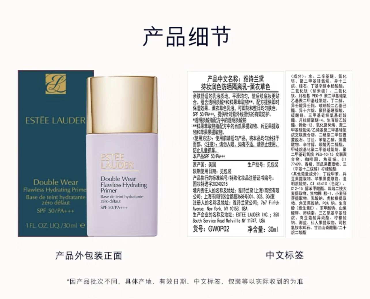 【爆】 【双11】1楼雅诗兰黛持妆润色防晒隔离30ml+白金粉霜30ml