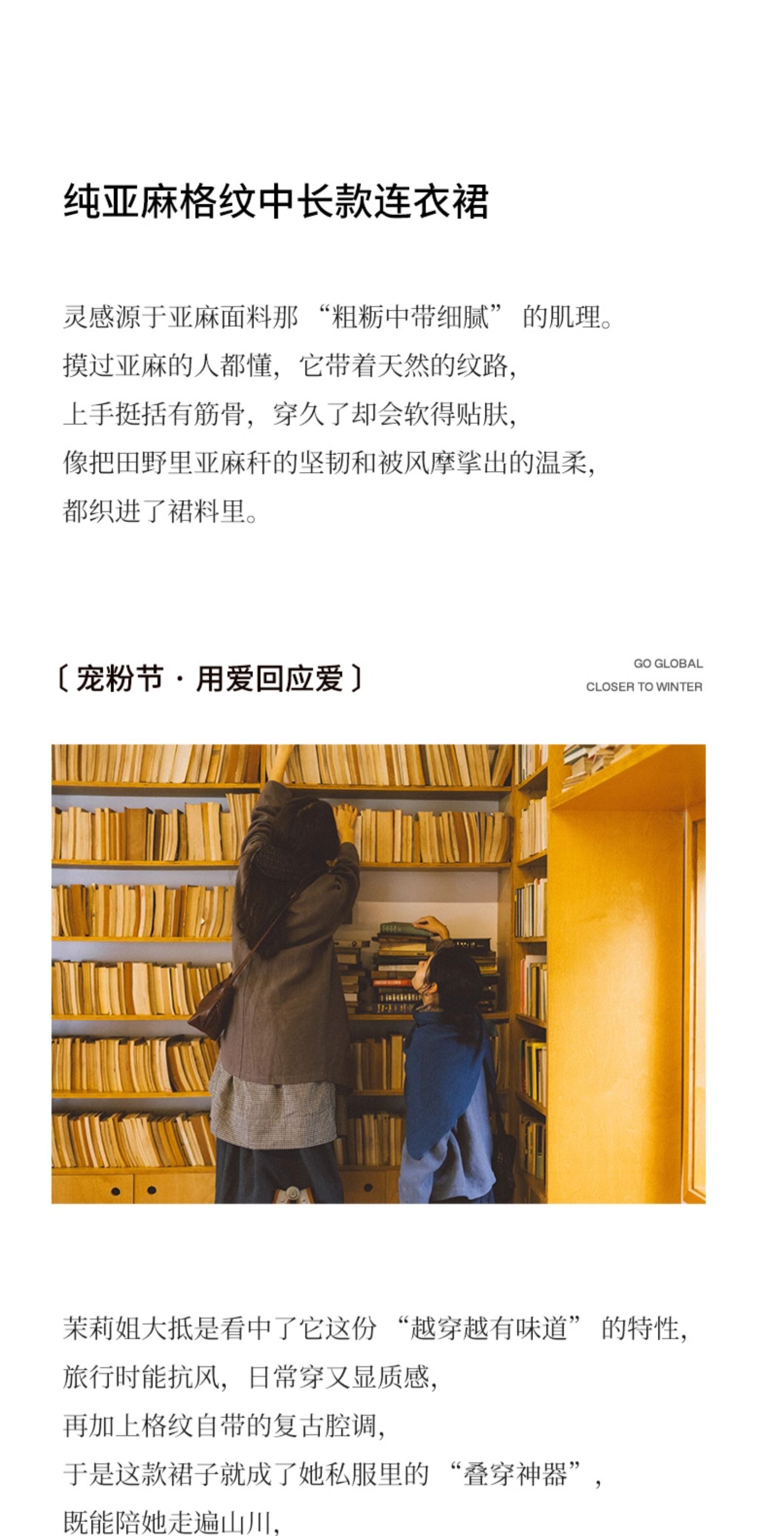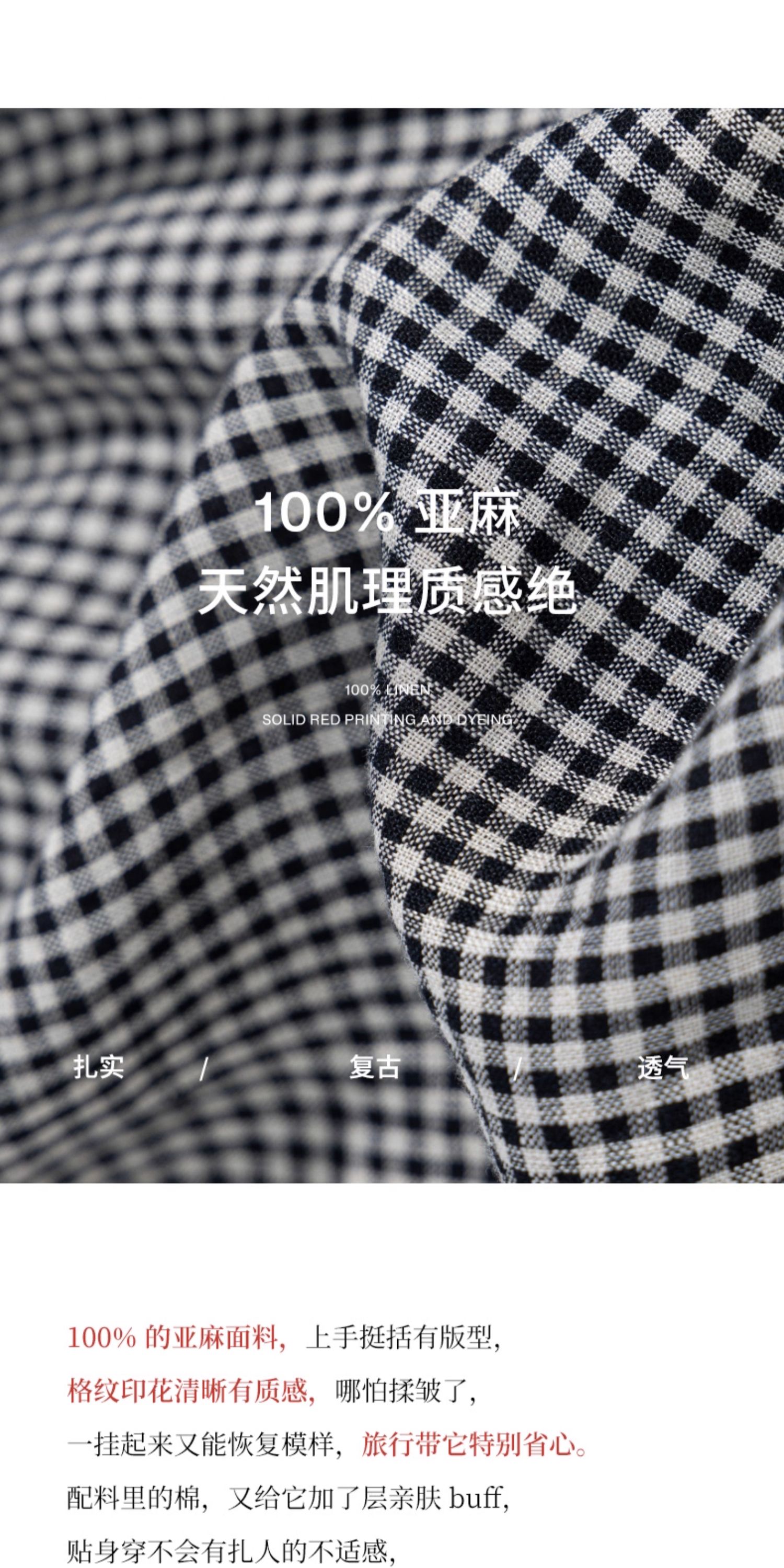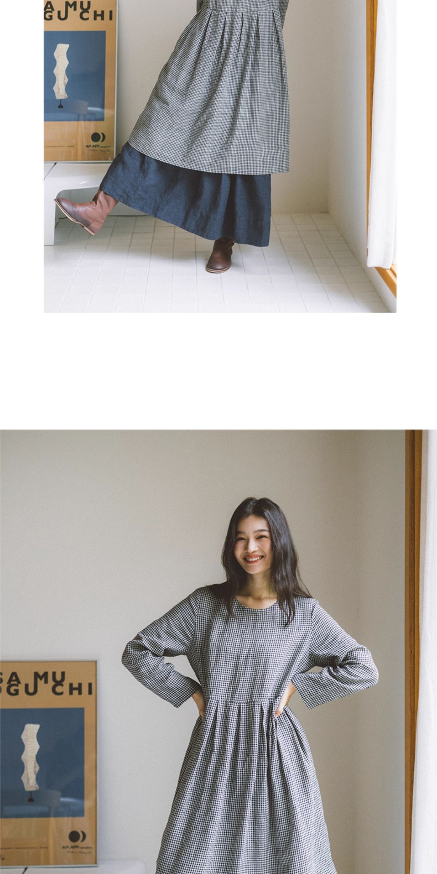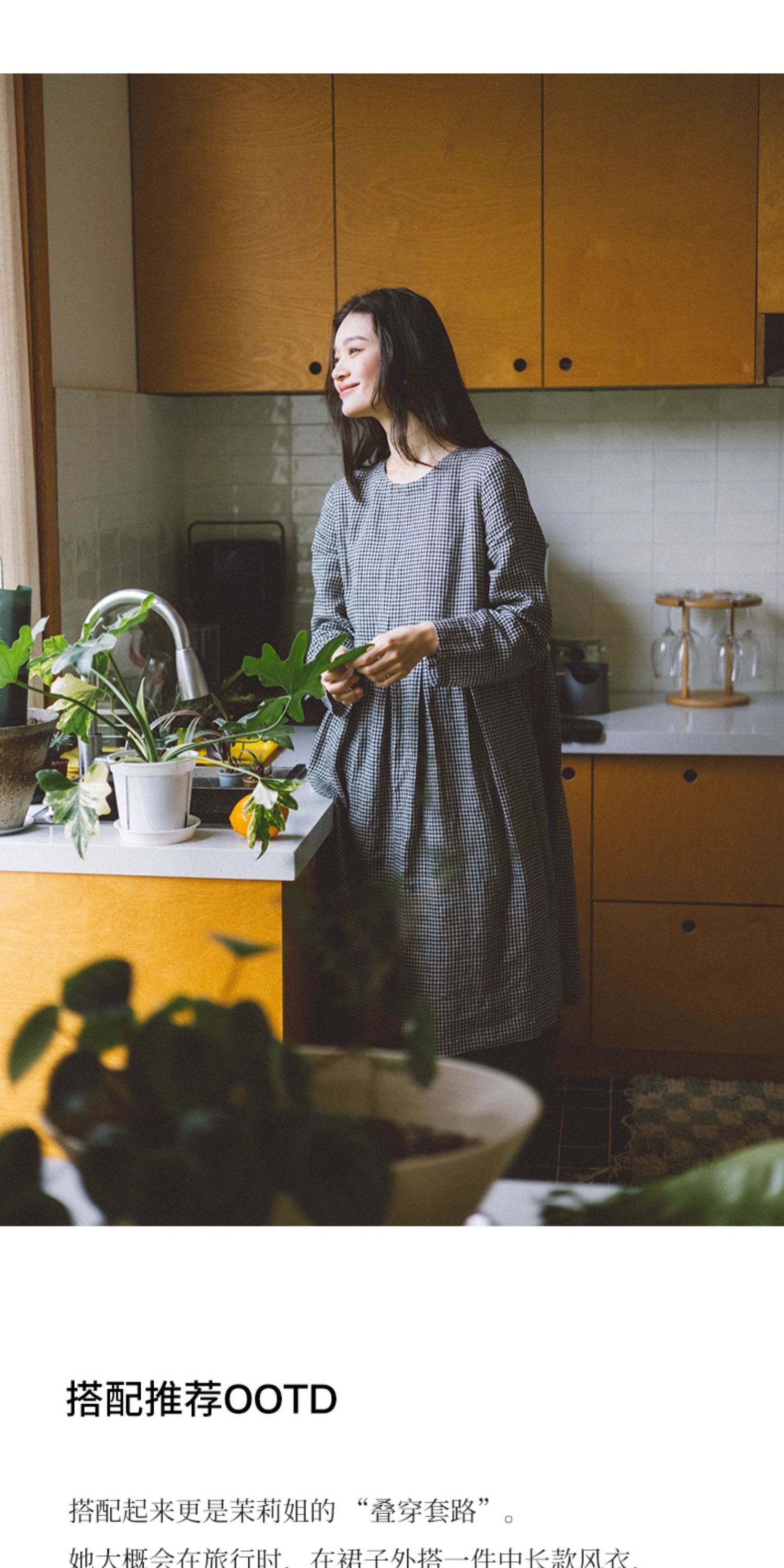 绽放794朵/叠搭神器格子裙·纯亚麻格纹中长款长袖连衣裙2025新款