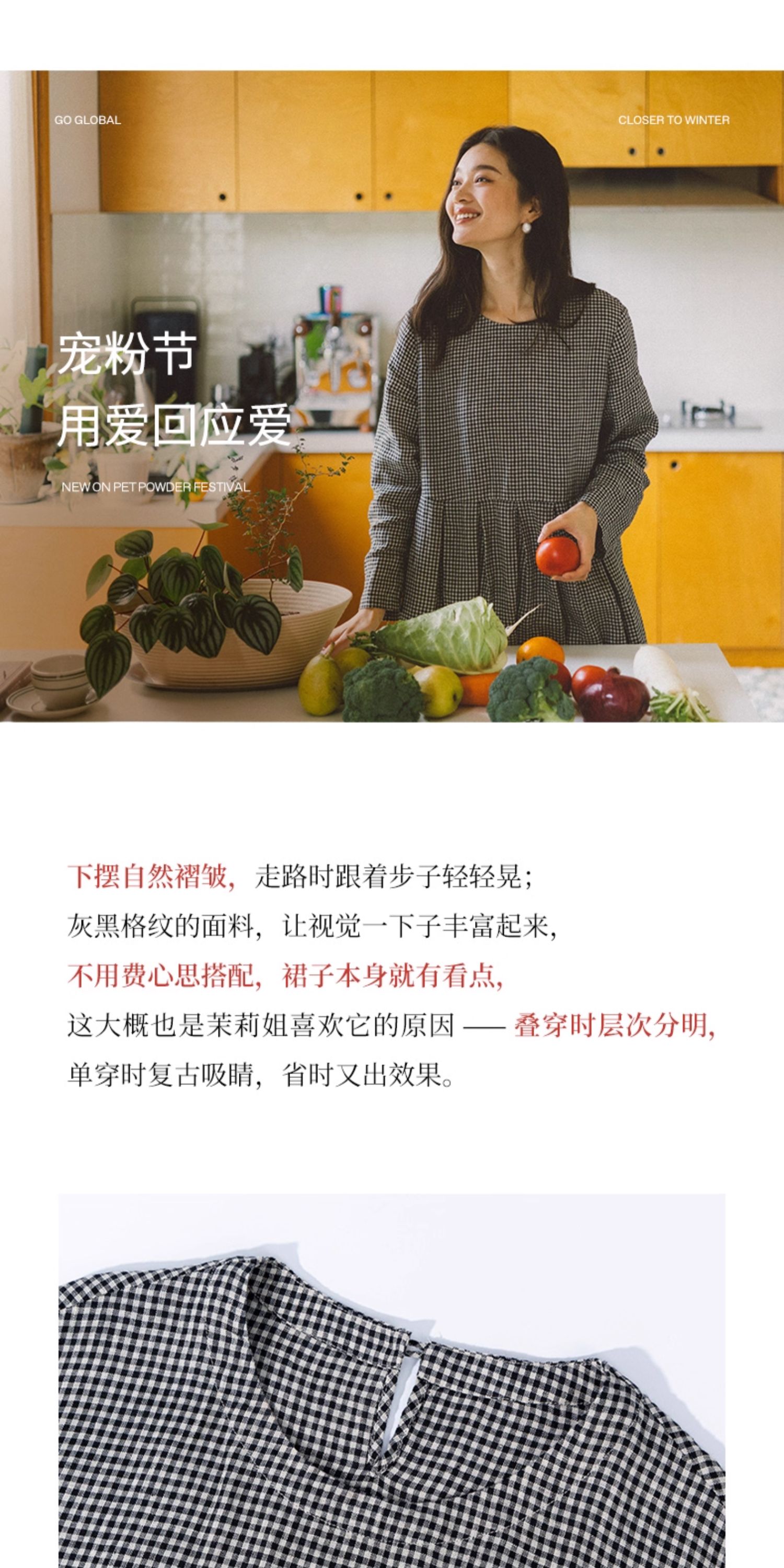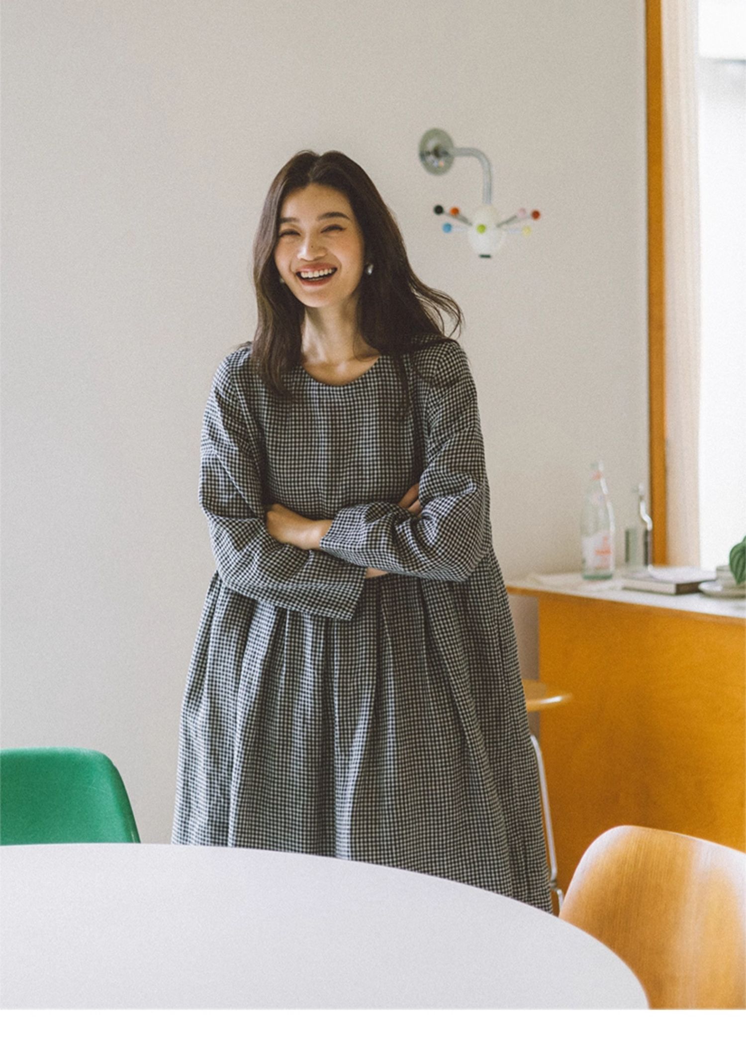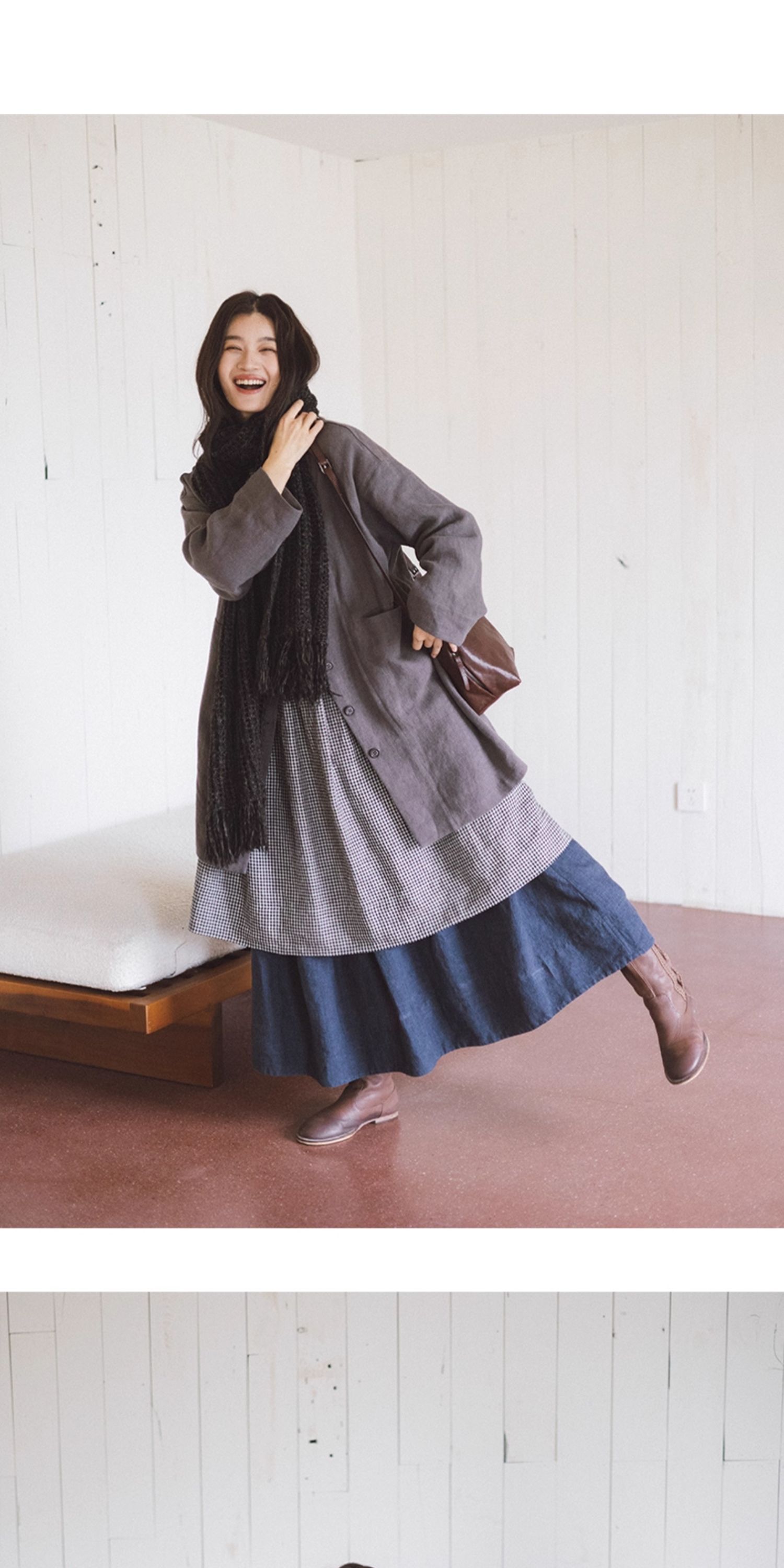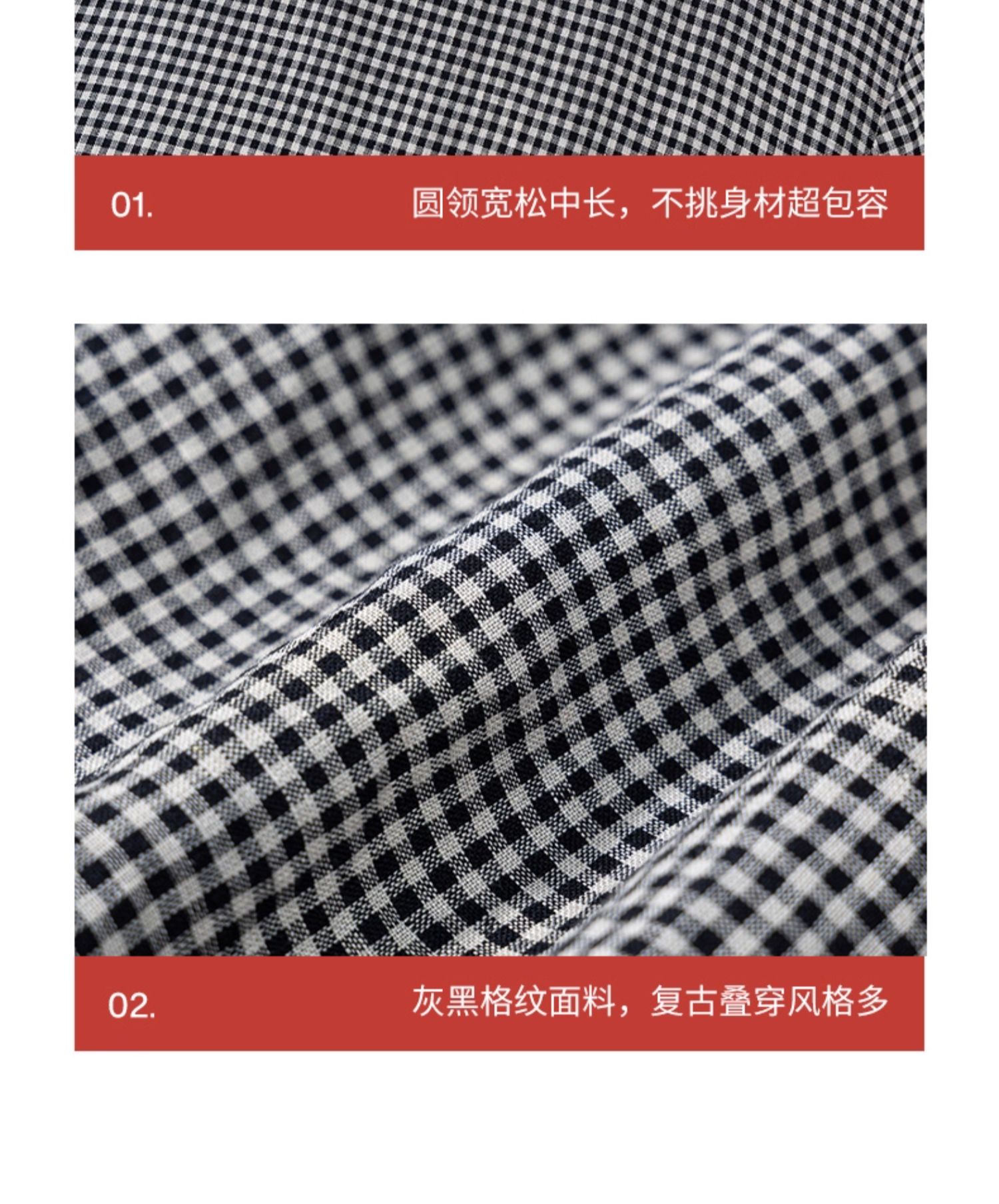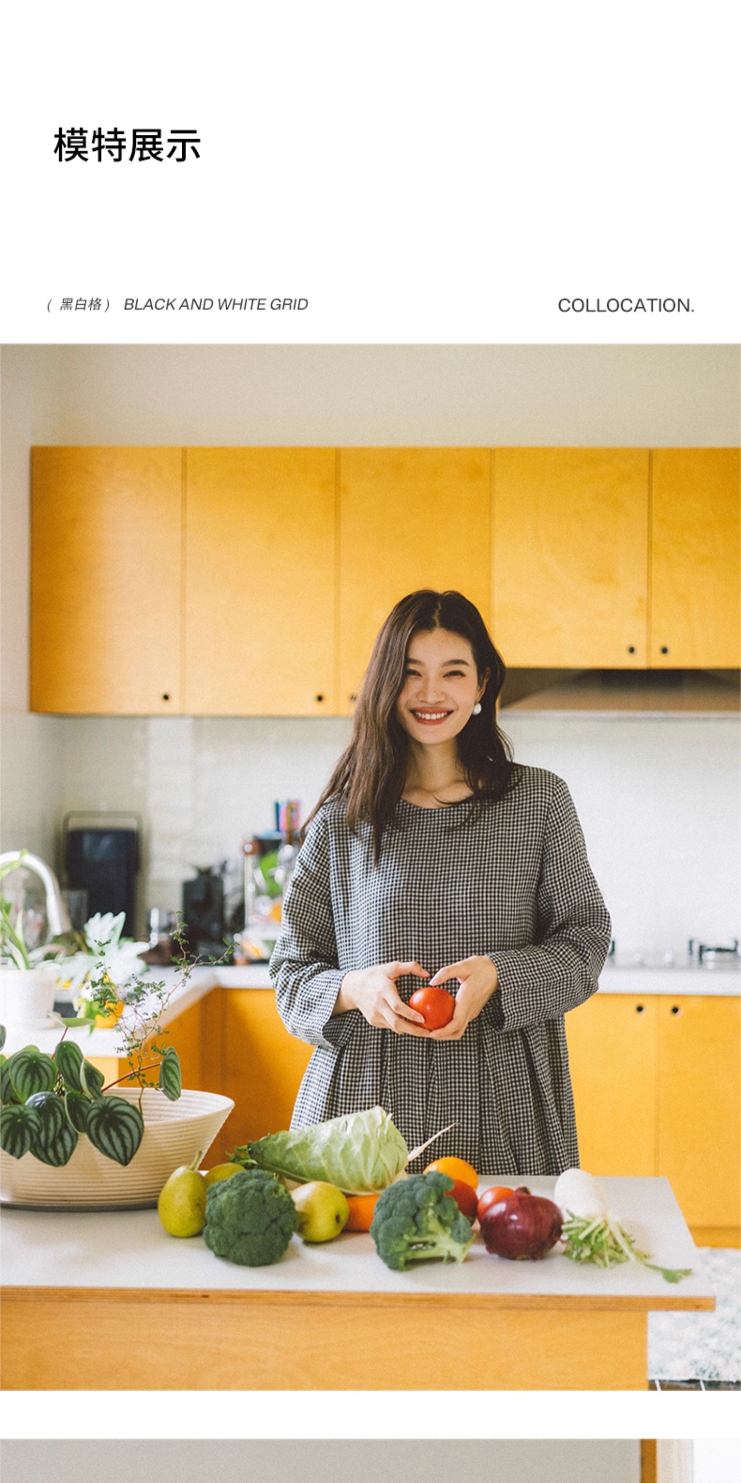 绽放794朵/叠搭神器格子裙·纯亚麻格纹中长款长袖连衣裙2025新款