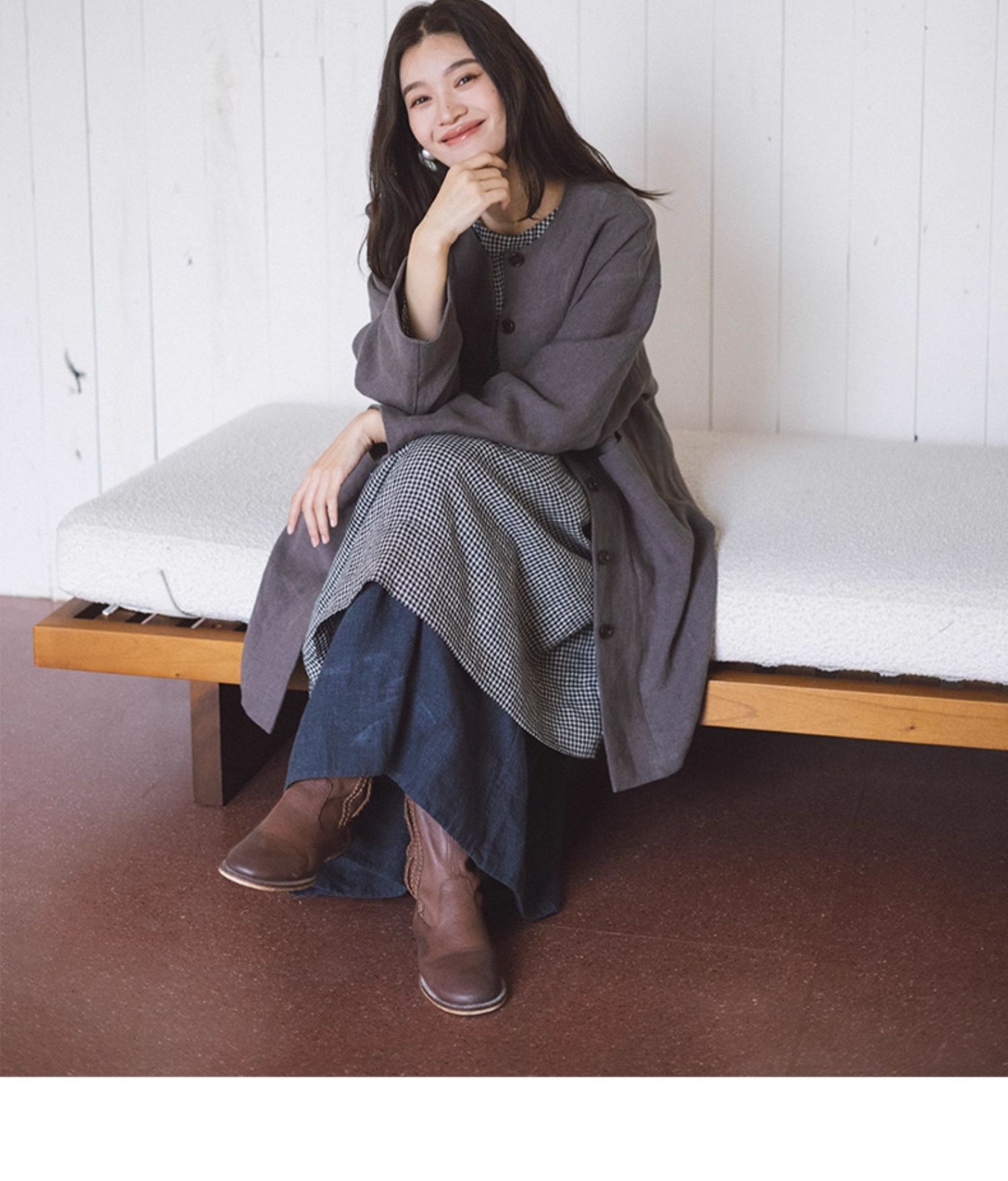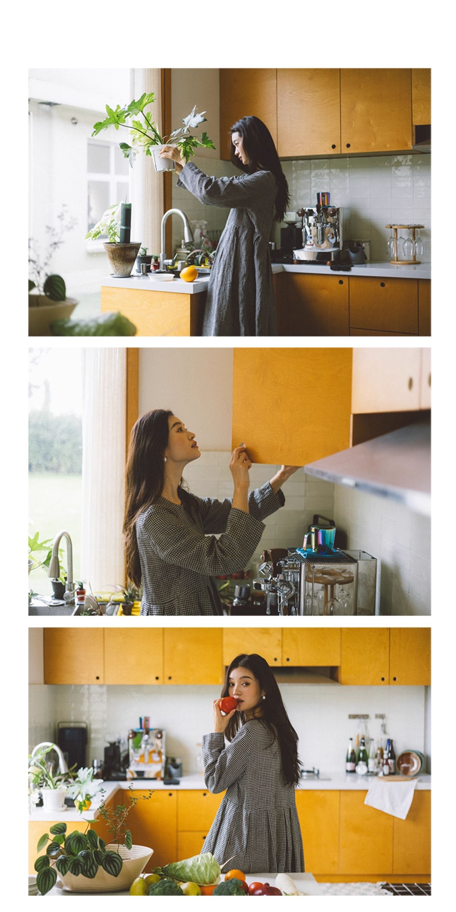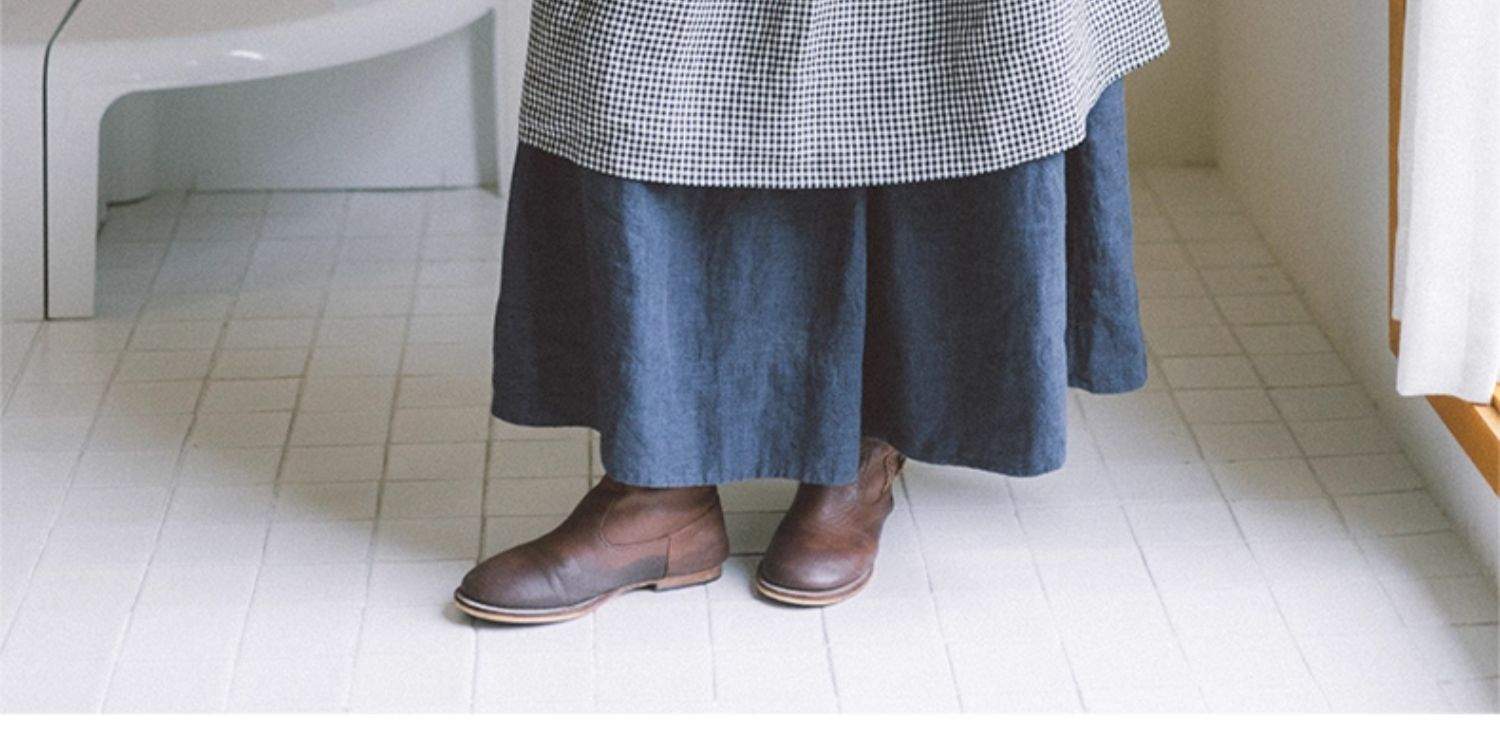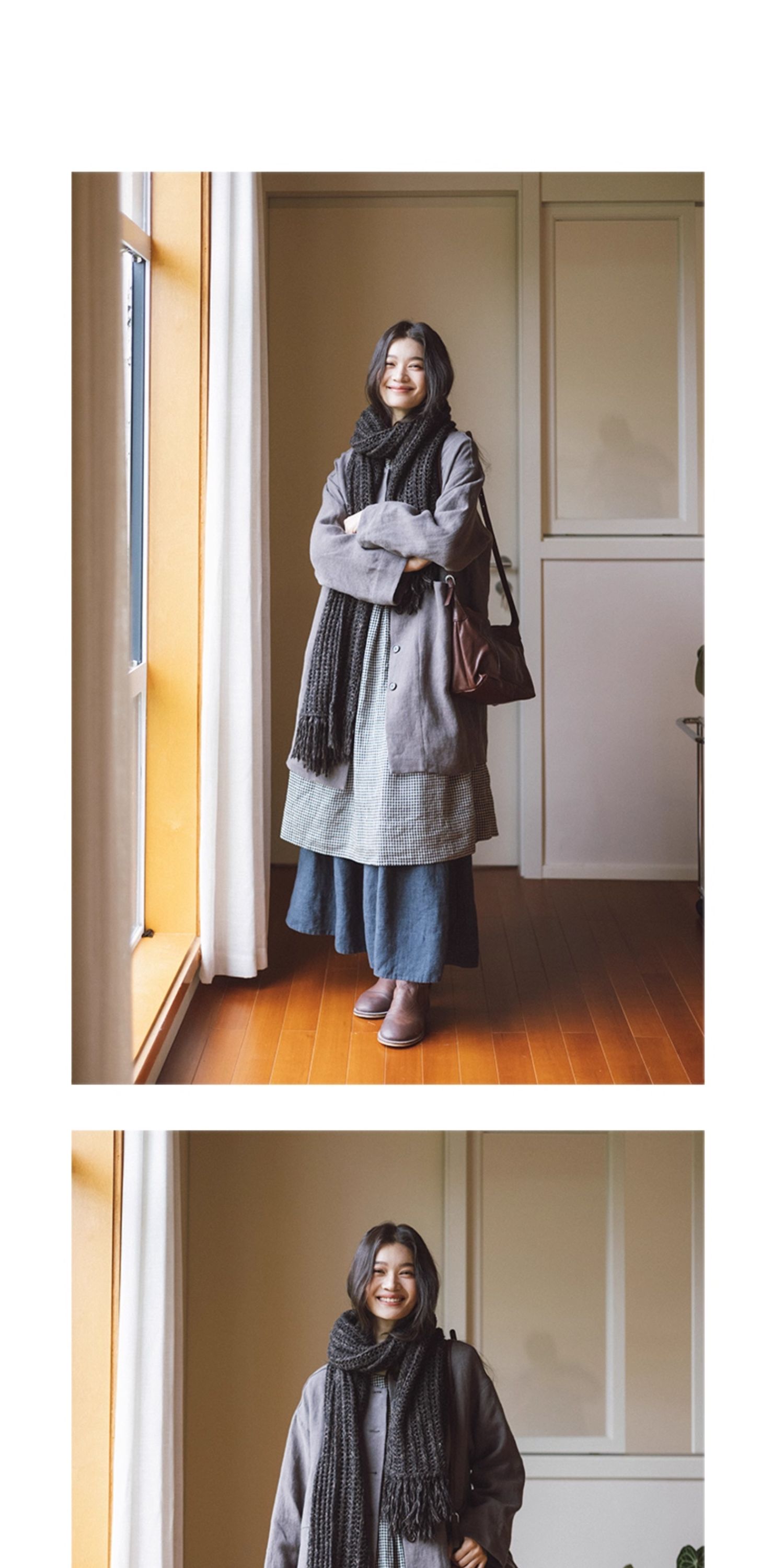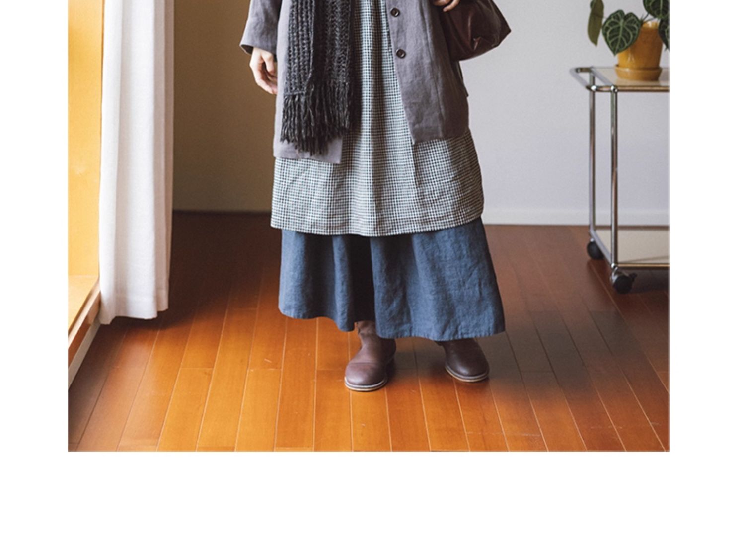 绽放794朵/叠搭神器格子裙·纯亚麻格纹中长款长袖连衣裙2025新款