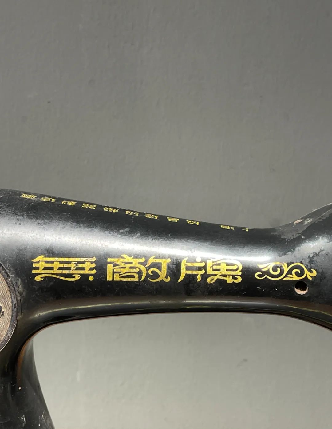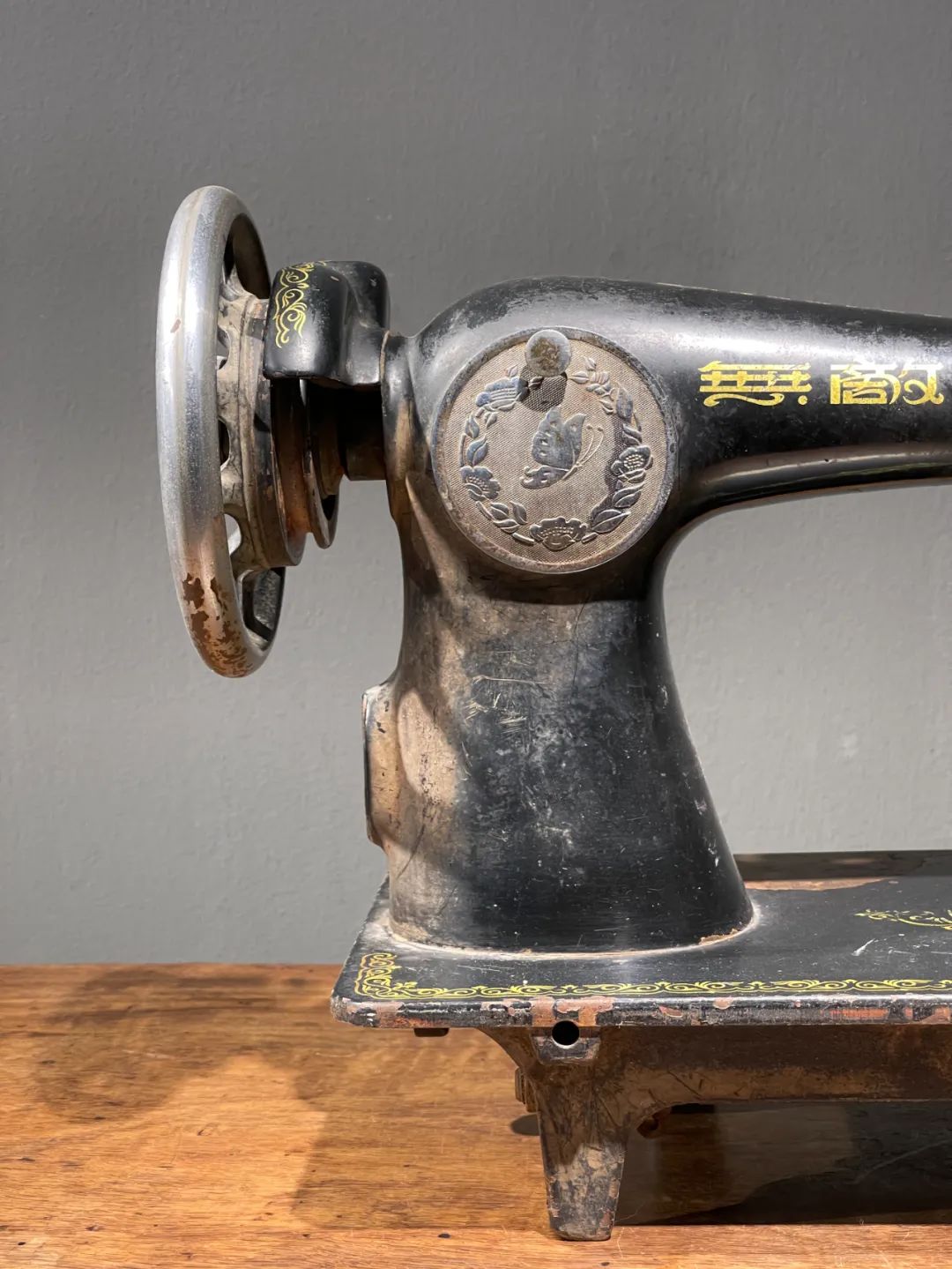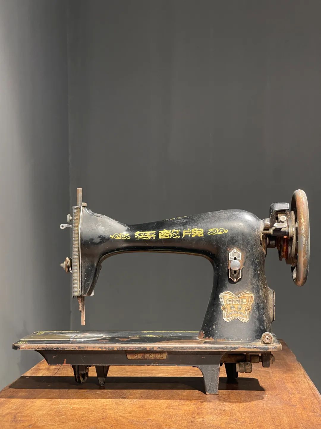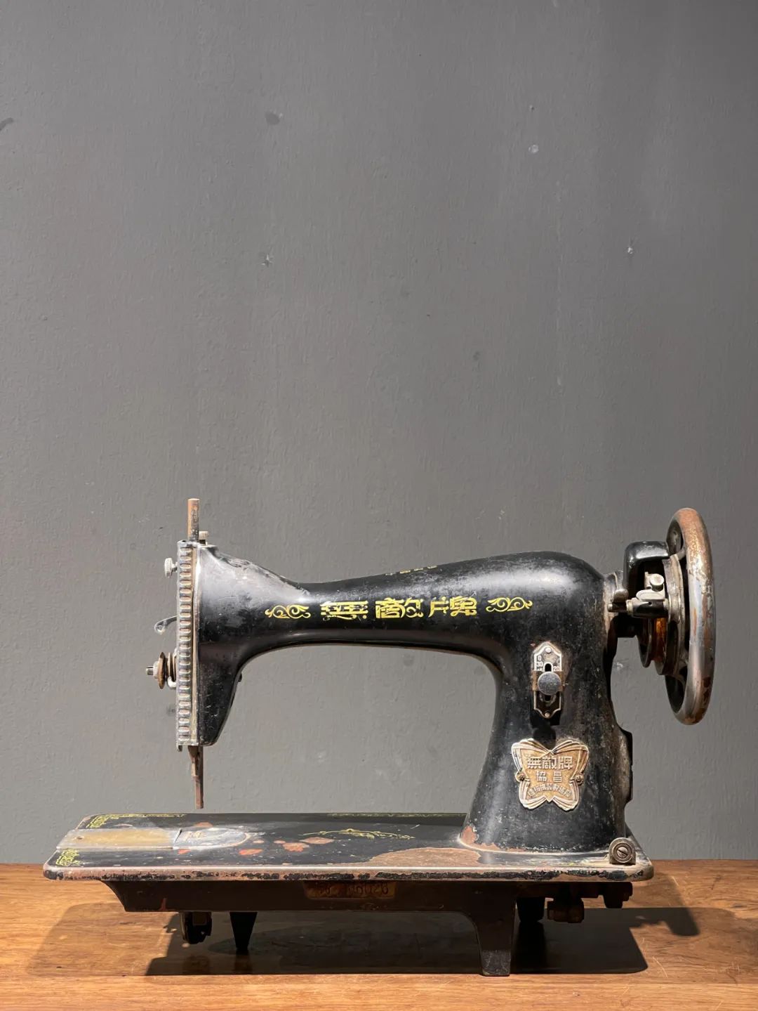 这是一件制作严谨的精密专业老缝纫机,是民国初年上海协昌缝纫机厂制造的“無敵牌”,制作于民国二十年(1931年),出厂编号是208026(民国20年8月生产的第26台),设计精巧,造型美观,绘画、书法与金属錾工裝饰华丽典雅,是一件非常难得的精密机械经典收藏级佳作。此手动式民国初年无敌牌缝纫机整体设计精巧,造型工业风格简约大气,手工绘商标纹饰与金属錾工缠枝花卉与蝴蝶图案,整体贵气华丽,历经近百年仍然保存完整,非常难得。此手动式1931年民国初年无敌牌缝纫机,制作严谨,具备早期工业产品之优雅高贵气质,近百年历史有如一件艺术品般的完美动人,是中国早期引进西方机械制造科技发展历程中的经典之作,如图所示,除正常使用痕迹与局部大漆剥落外,基本保持完整。是一件的收藏级老缝纫机。未经测试是否仍然可以正常使用。尺寸:长:37.2厘米,宽:17.7厘米,高:29厘米,重量:11.2千克。