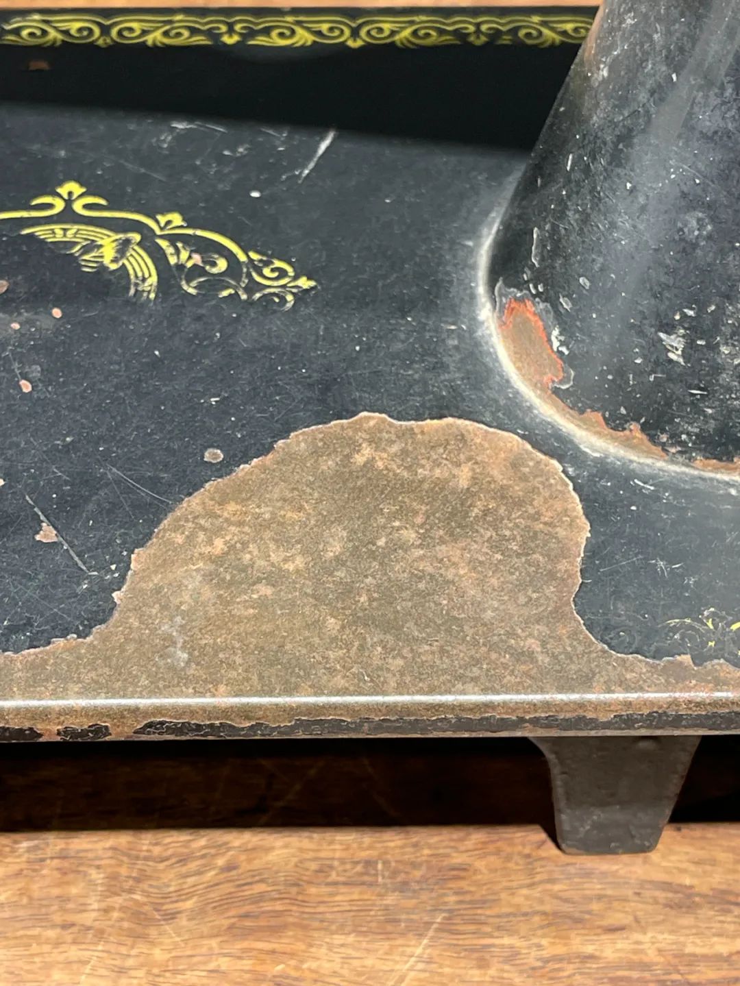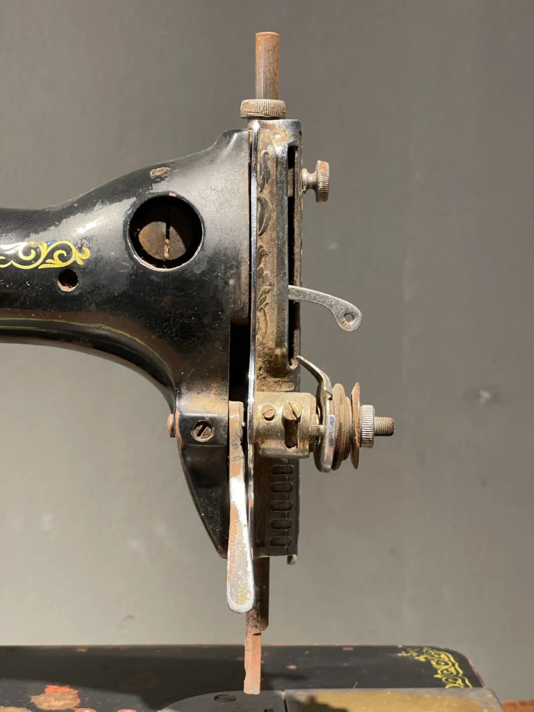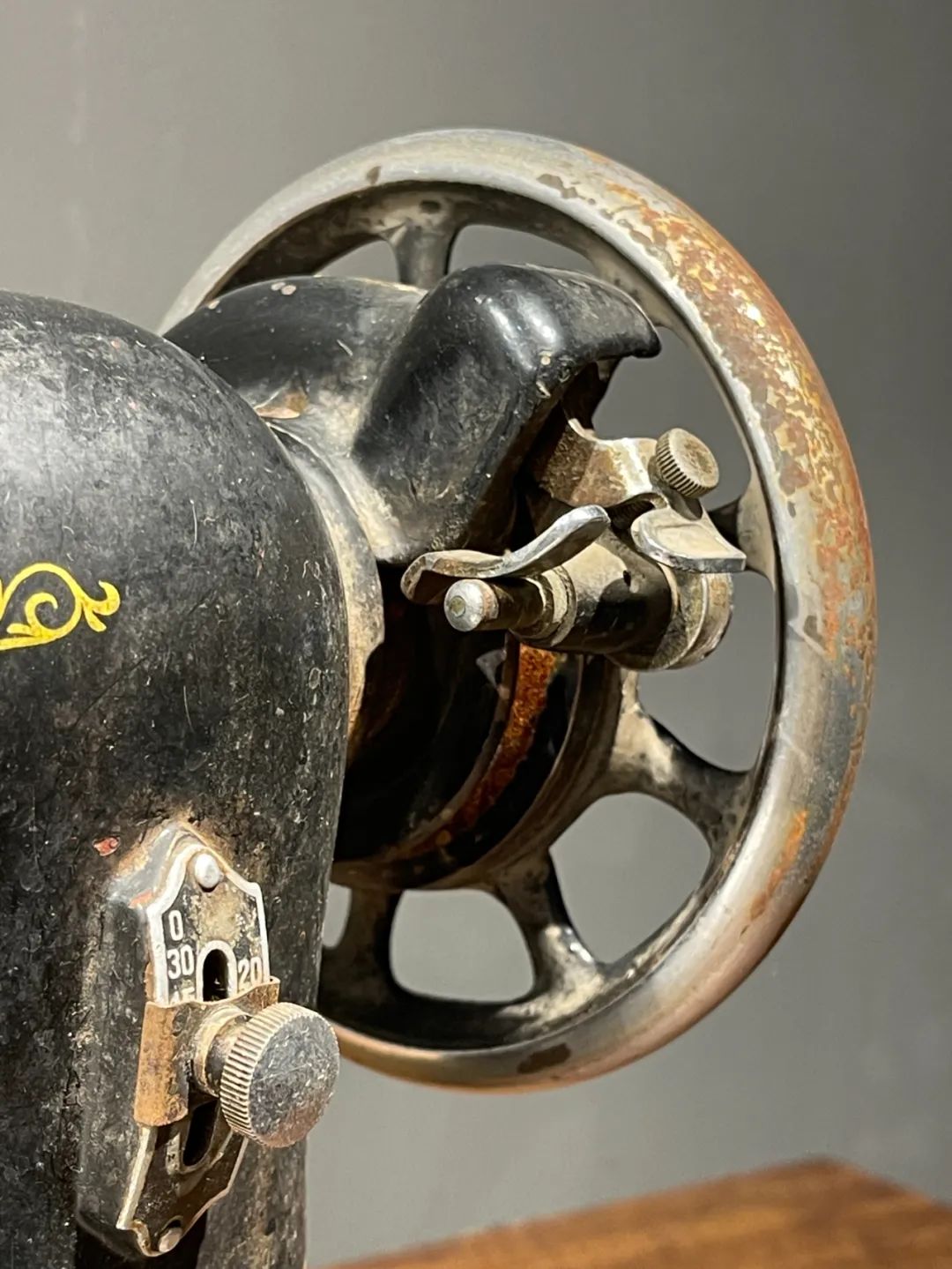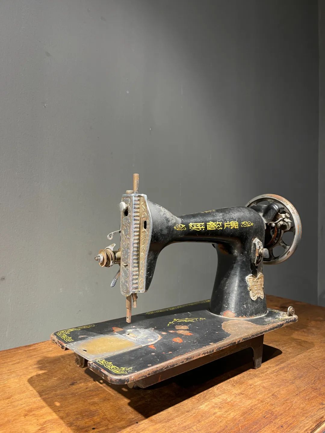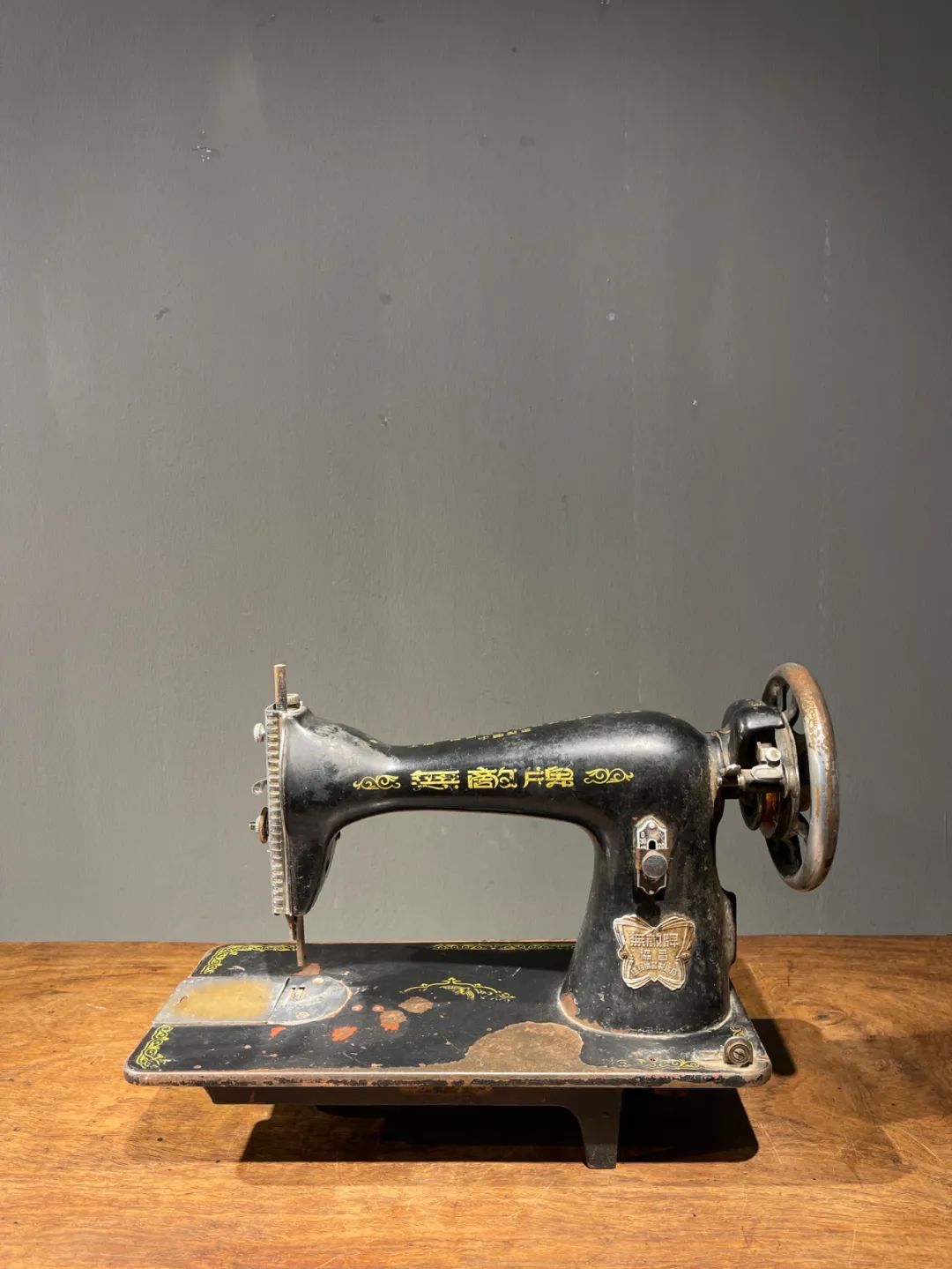 这是一件制作严谨的精密专业老缝纫机,是民国初年上海协昌缝纫机厂制造的“無敵牌”,制作于民国二十年(1931年),出厂编号是208026(民国20年8月生产的第26台),设计精巧,造型美观,绘画、书法与金属錾工裝饰华丽典雅,是一件非常难得的精密机械经典收藏级佳作。此手动式民国初年无敌牌缝纫机整体设计精巧,造型工业风格简约大气,手工绘商标纹饰与金属錾工缠枝花卉与蝴蝶图案,整体贵气华丽,历经近百年仍然保存完整,非常难得。此手动式1931年民国初年无敌牌缝纫机,制作严谨,具备早期工业产品之优雅高贵气质,近百年历史有如一件艺术品般的完美动人,是中国早期引进西方机械制造科技发展历程中的经典之作,如图所示,除正常使用痕迹与局部大漆剥落外,基本保持完整。是一件的收藏级老缝纫机。未经测试是否仍然可以正常使用。尺寸:长:37.2厘米,宽:17.7厘米,高:29厘米,重量:11.2千克。
