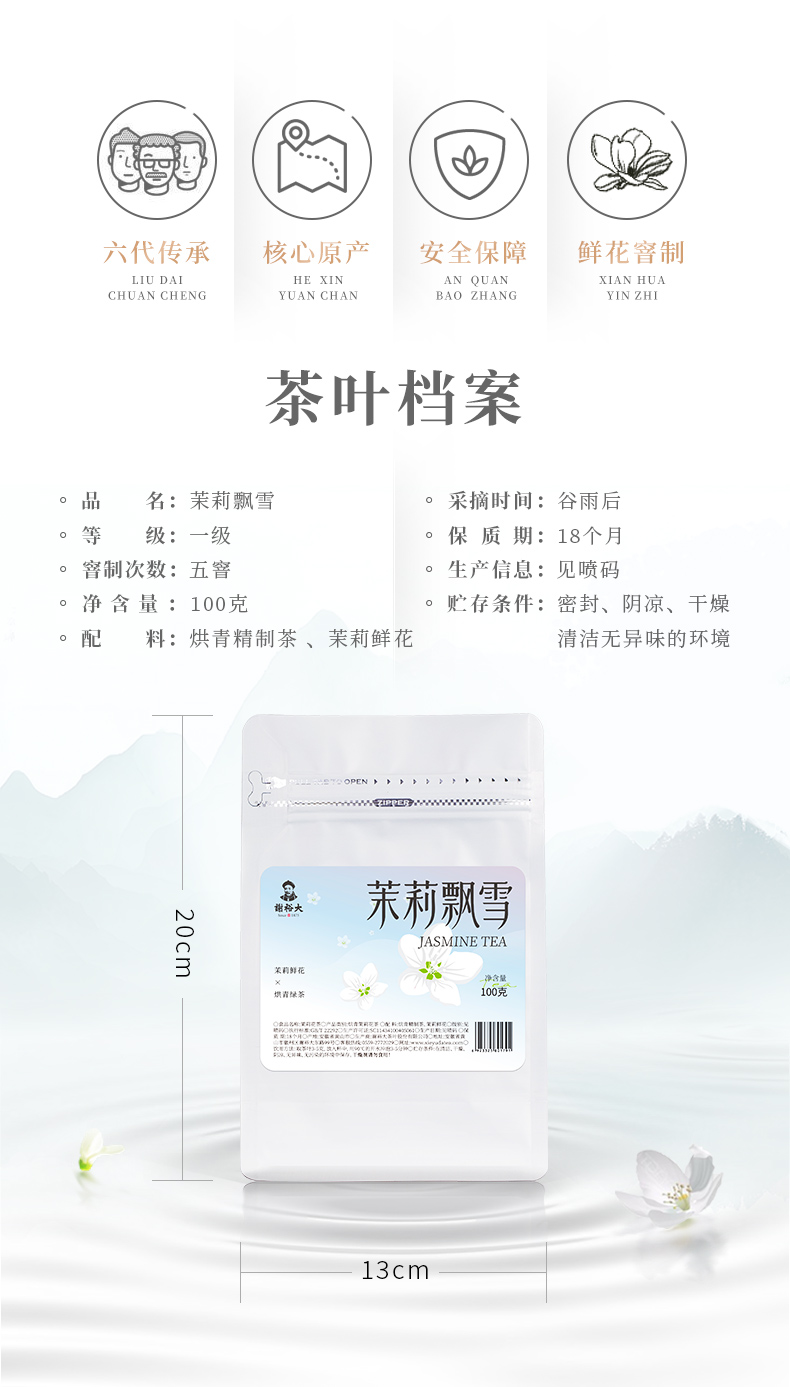 谢裕大茉莉飘雪茉莉花茶100g茶叶袋装浓香花草茶茶叶口粮推荐