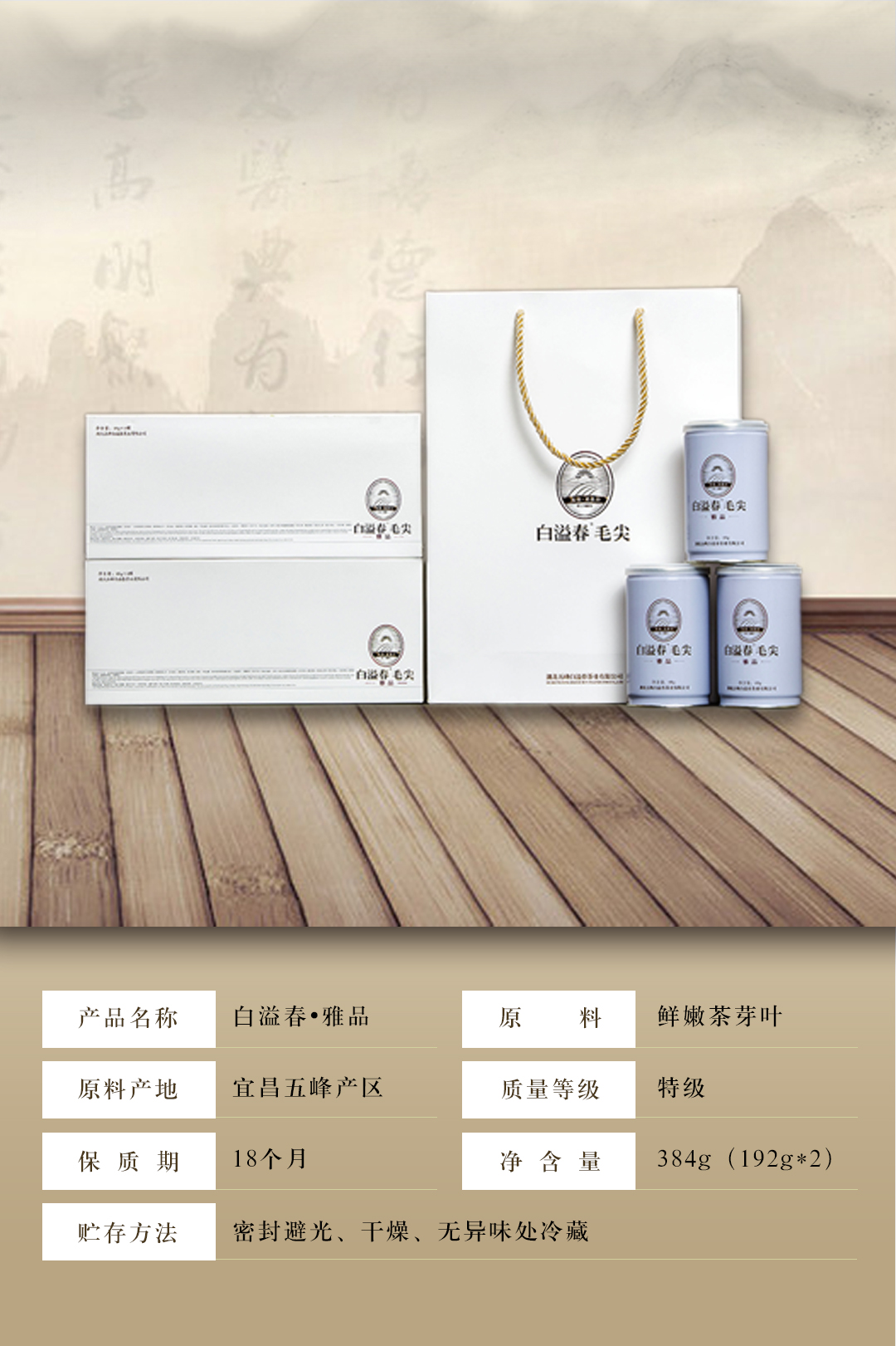【宜昌助农馆】五峰白溢春 雅品贡芽 384g 48克*4罐*2条/提