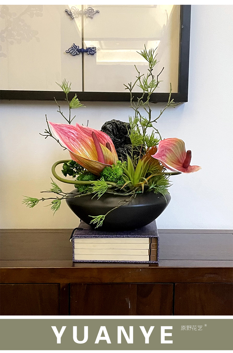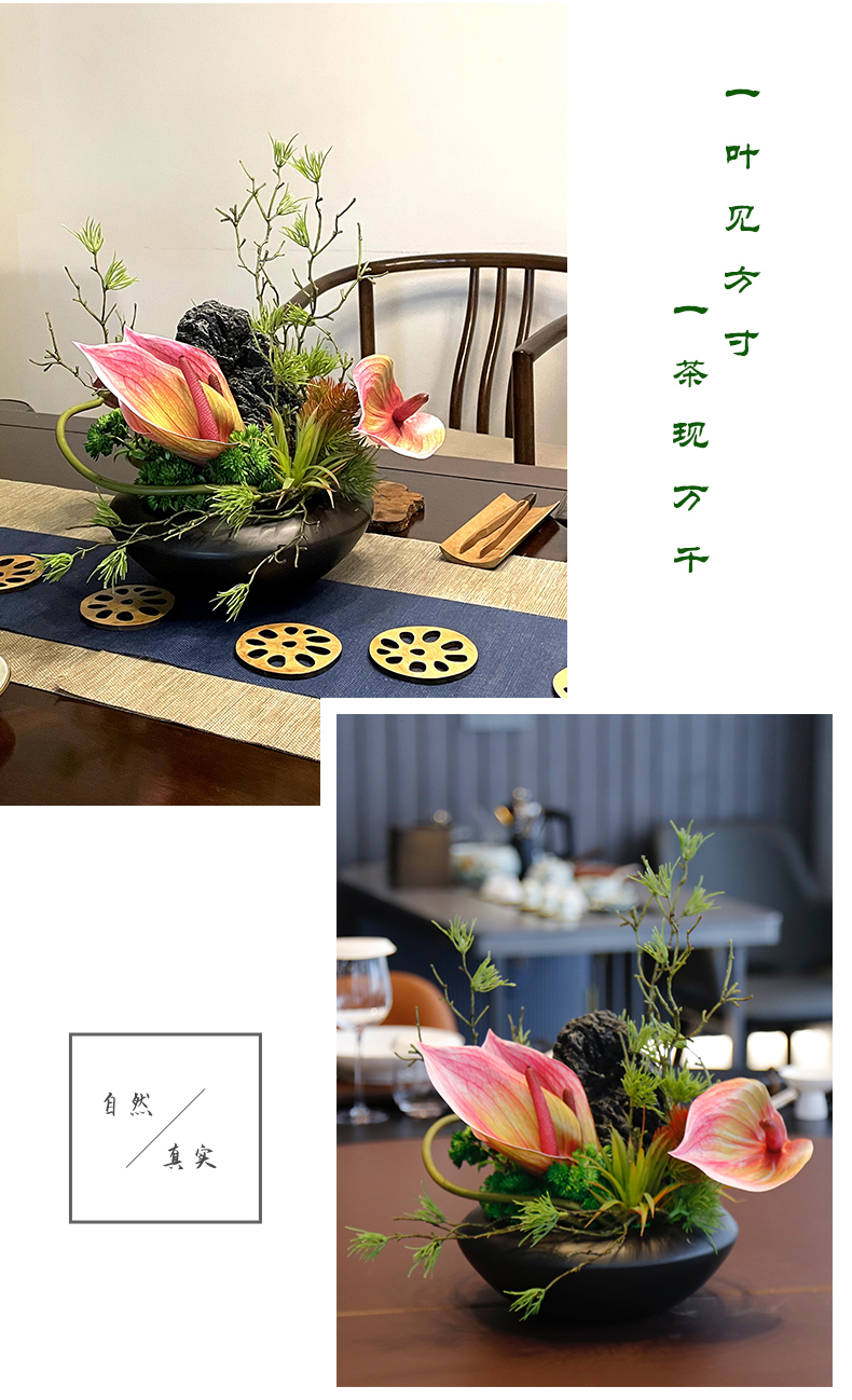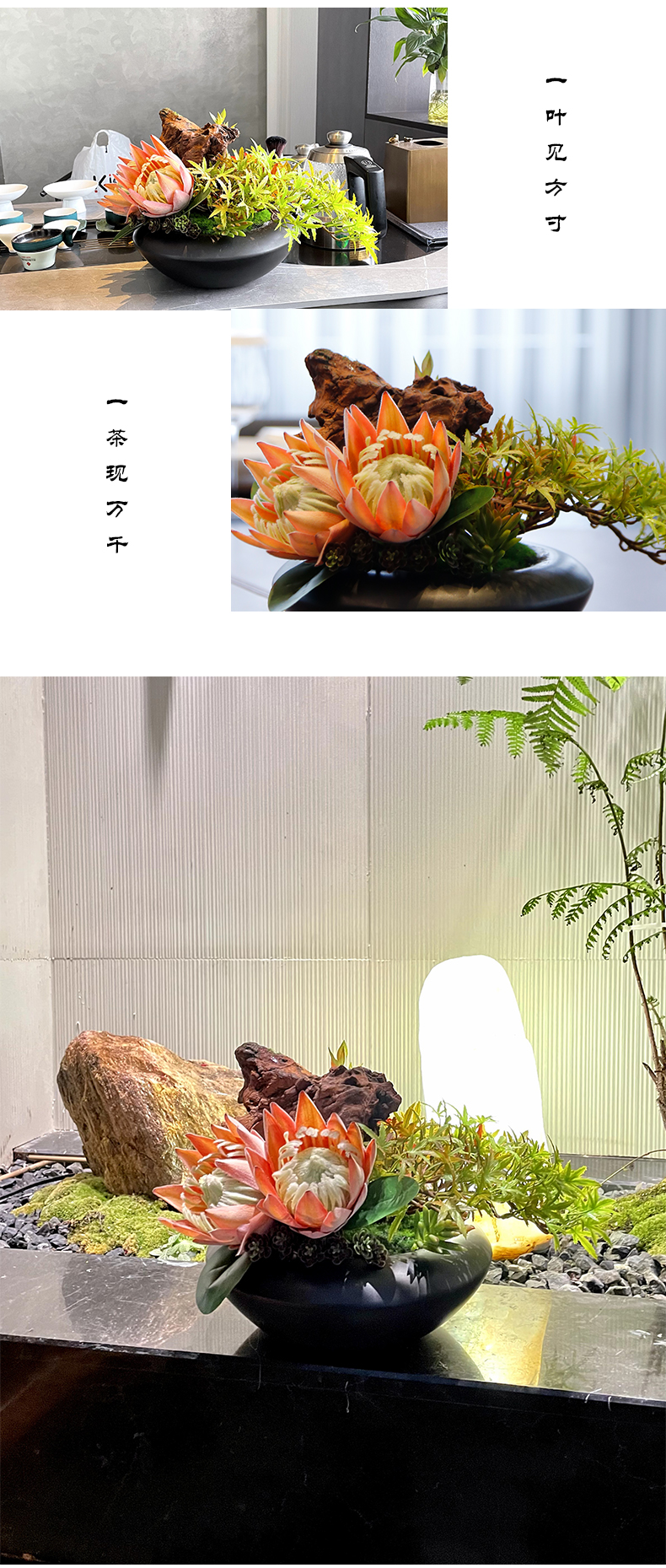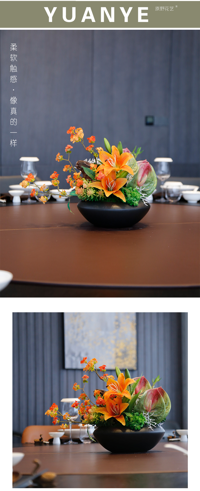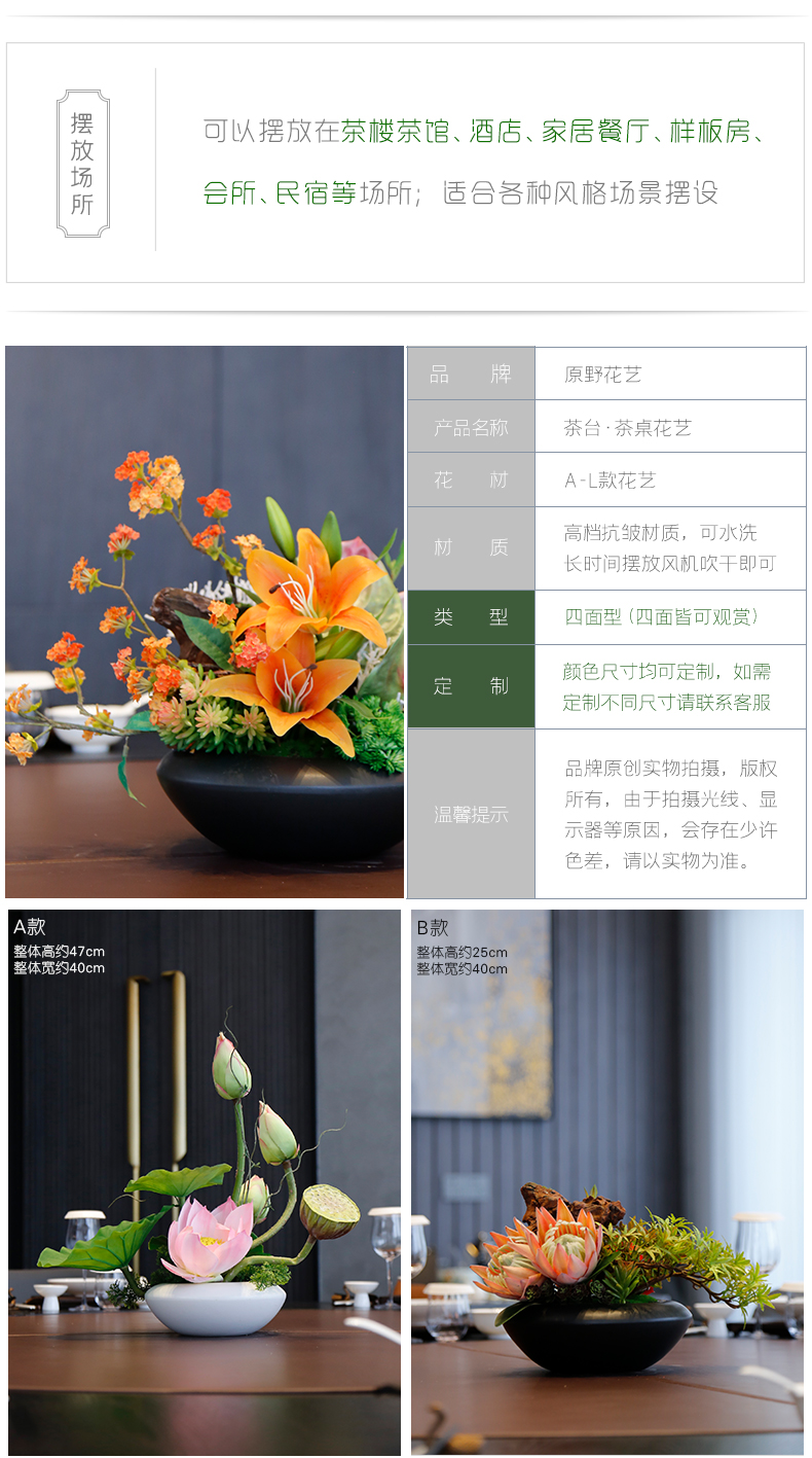 中式仿真花餐桌花摆花酒店茶室茶桌玄关假花摆设高端餐厅装饰摆件
