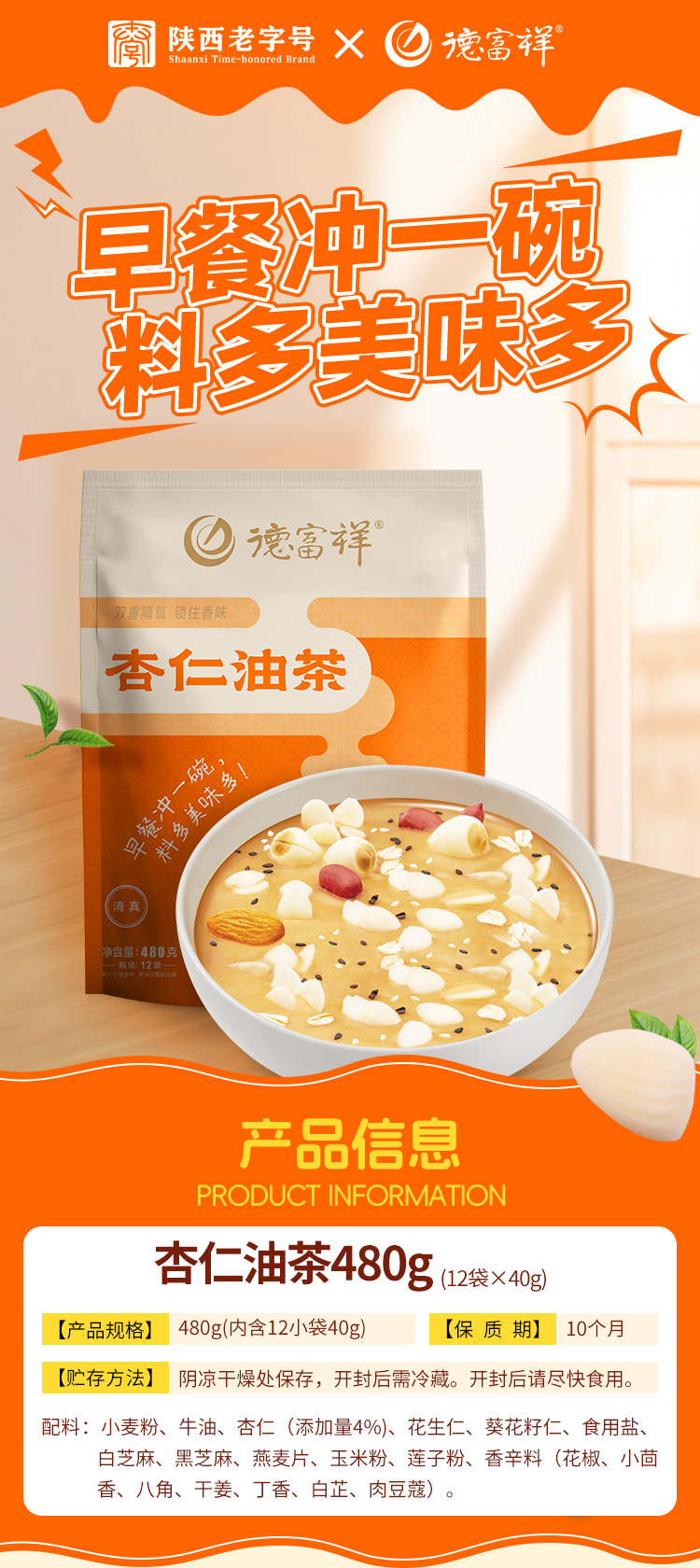【经典杏仁咸】德富祥清真美食陕西特产480g杏仁油茶*2袋